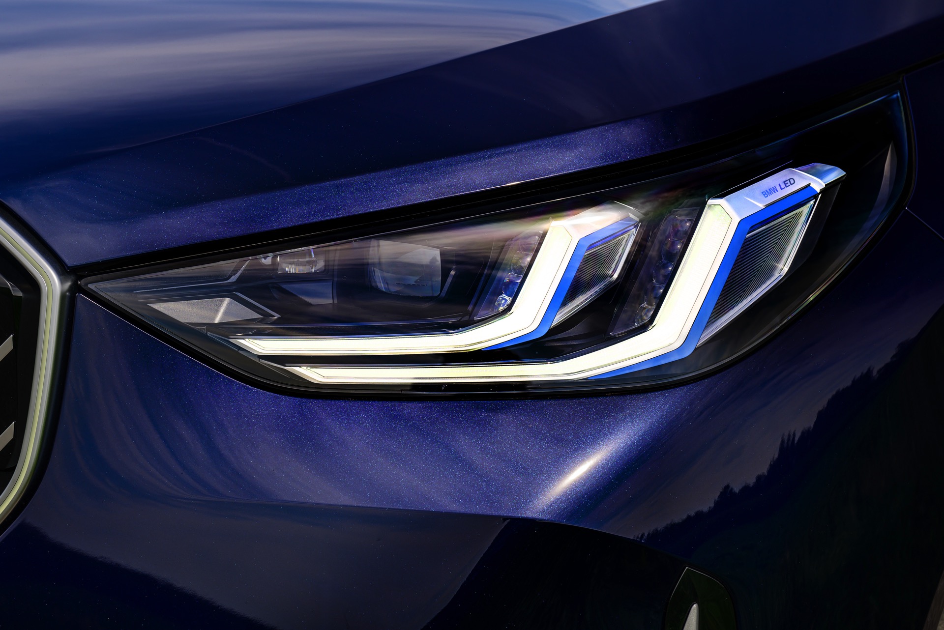 Ein Teil dieser technischen Herausforderungen ist ganz klar die Reduzierung von CO2-Emissionen über das gesamte Modellangebot hinweg. Dabei spielt beim neuen BMW X3 (G45) das Thema Aerodynamik eine zentrale Rolle: Maßnahmen vom bekannten „Air Curtain“ an den Vorderrädern über flächenbündige Türgriffe bis hin zu einem markanten „Aero-Blade“ an der C-Säule senken den cw-Wert auf 0,27. Das Design der auf Wunsch erstmals mit unterbrechungsfrei umlaufendem BMW Iconic Glow konturbeleuchteten Doppelniere leistet ebenfalls einen Beitrag. Im unteren Bereich kümmern sich Luftklappen bei Bedarf automatisch um die Kühlung des Antriebs, der Rest der Niere ist geschlossen – und integriert elegant die Radareinheit der Fahrerassistenzsysteme.