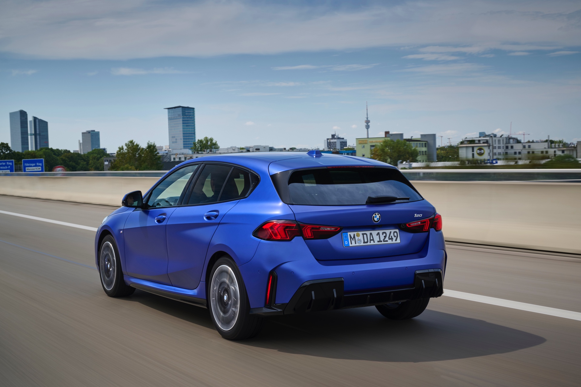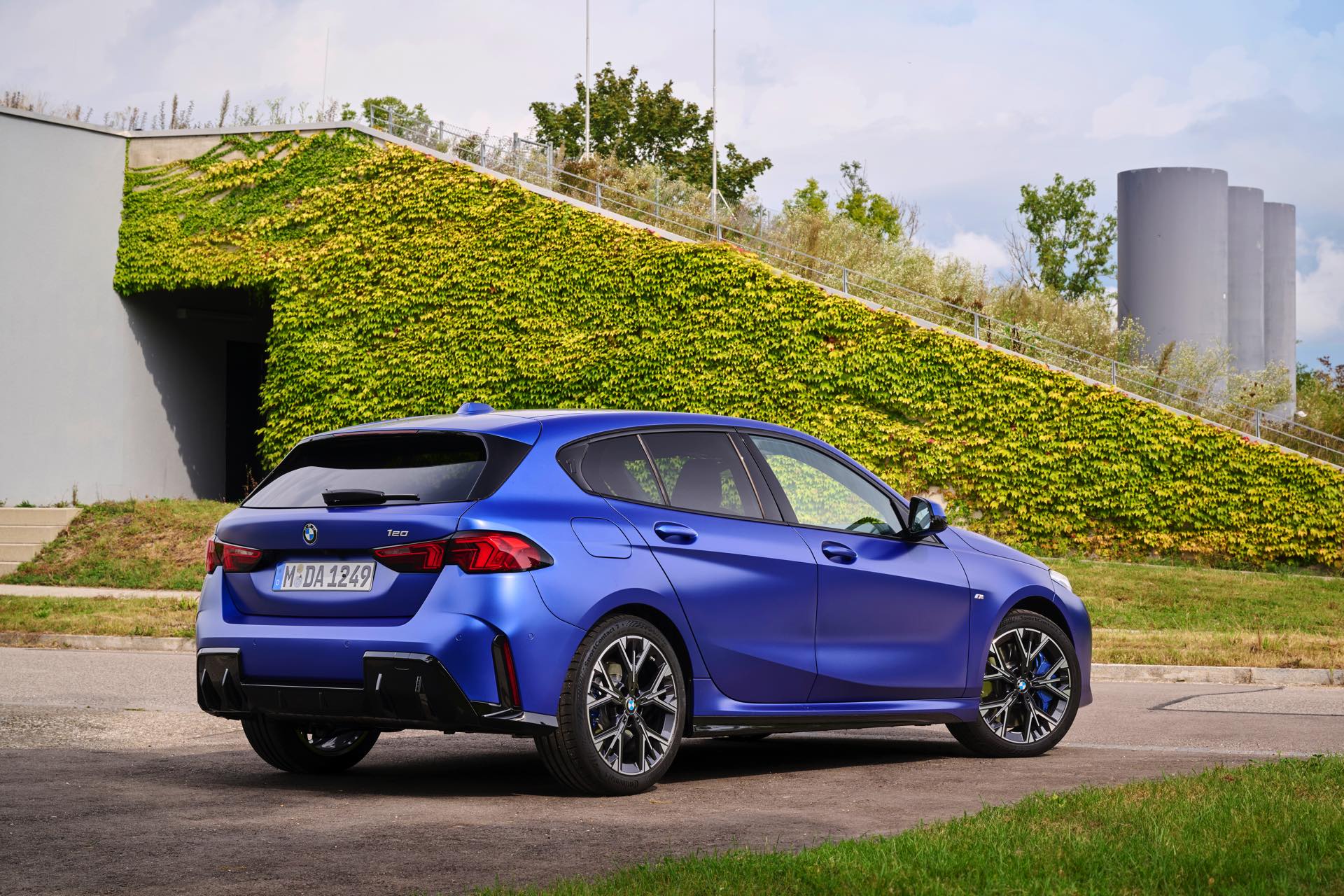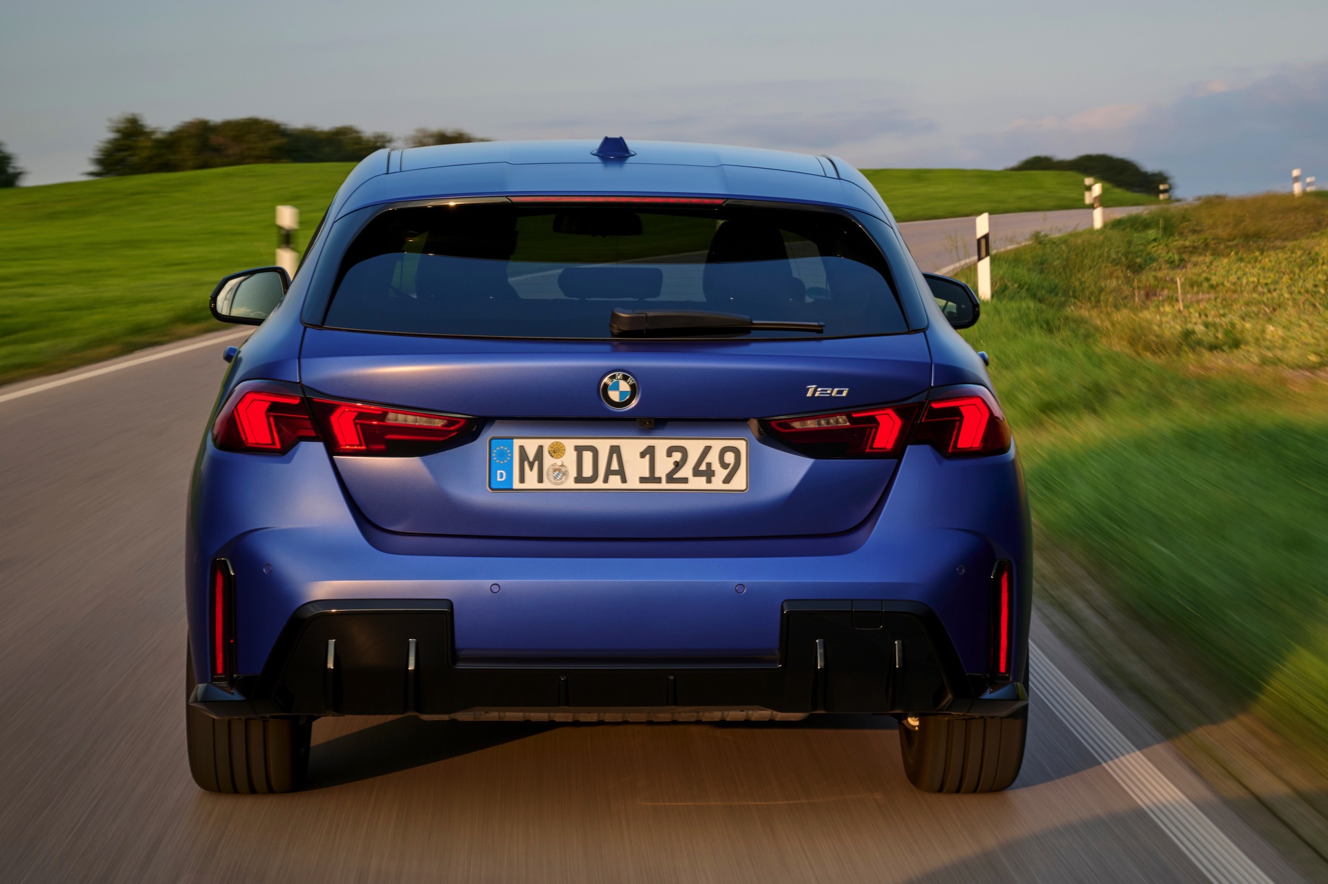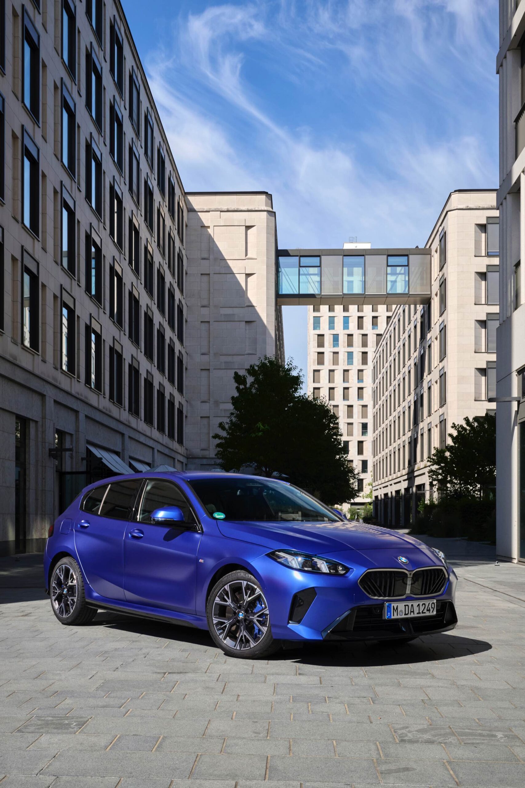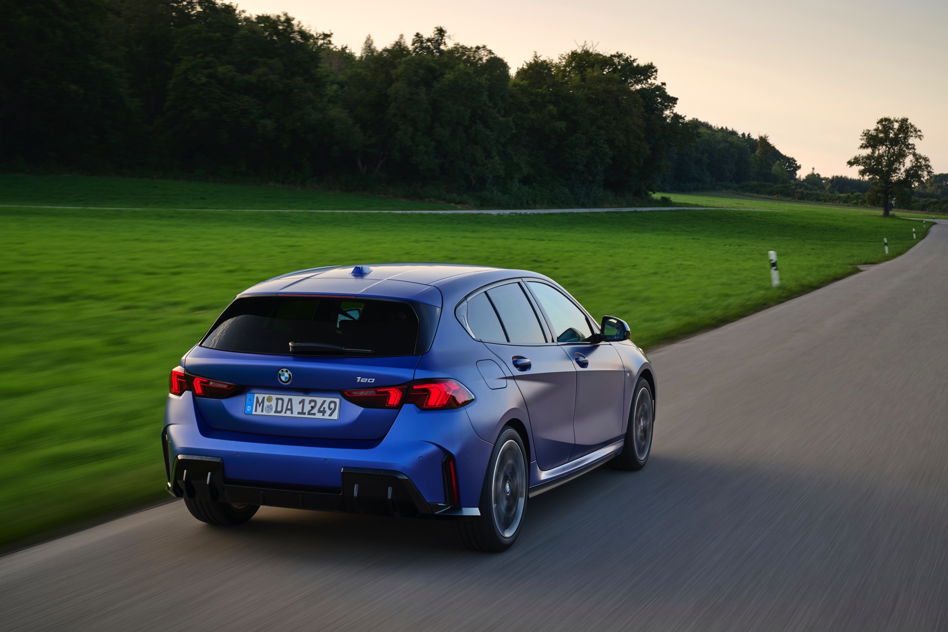 Zu diesem Eindruck tragen – neben dem matten BMW Individual-Lack Frozen Portimao Blue – auch die kleinere, steiler stehende Doppelniere und der weit nach vorn gezogene Frontsplitter des M Sportpakets bei. Selbiges beschert der Heckpartie einen stark ausgeprägten Diffusoreinsatz in Hochglanzschwarz. Sichtbare Endrohre bleiben jedoch grundsätzlich dem BMW M135 xDrive vorbehalten – der bekommt dafür gleich vier Stück.