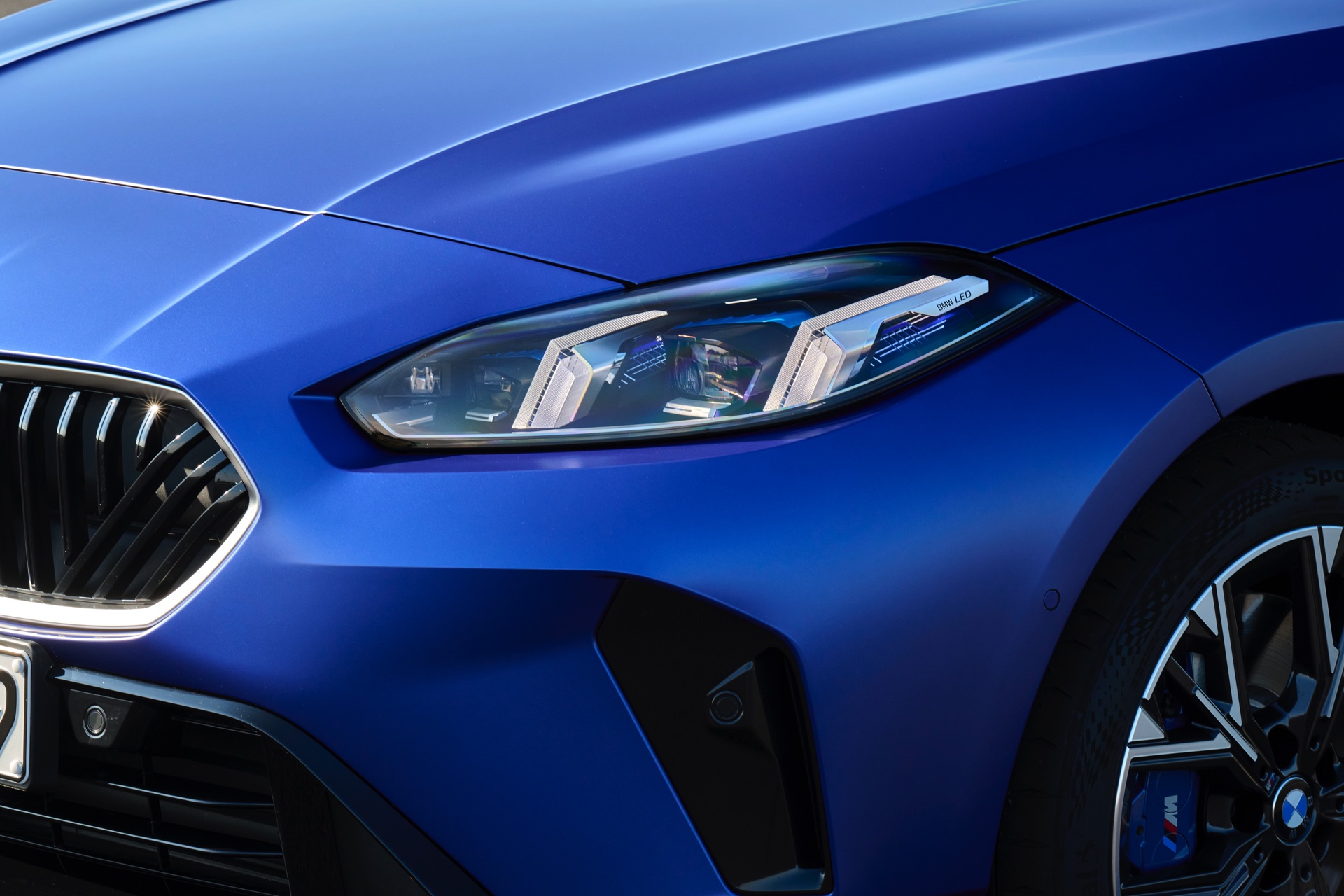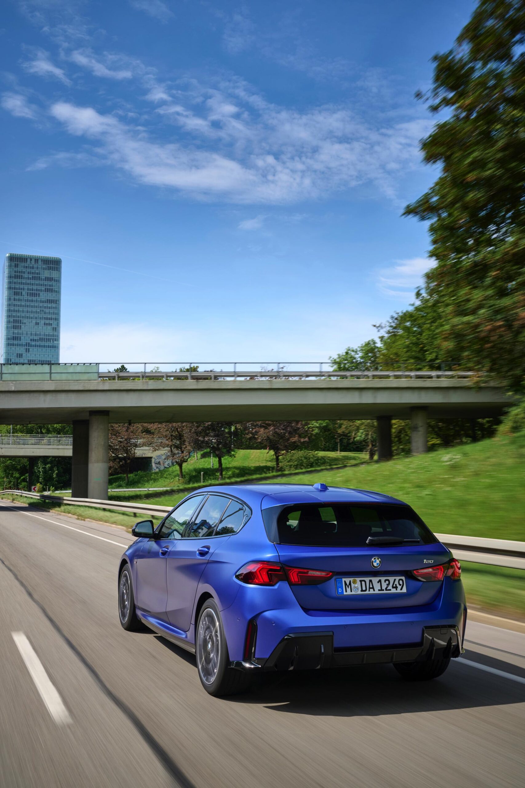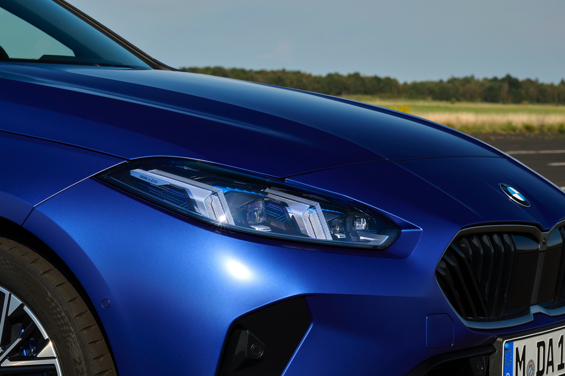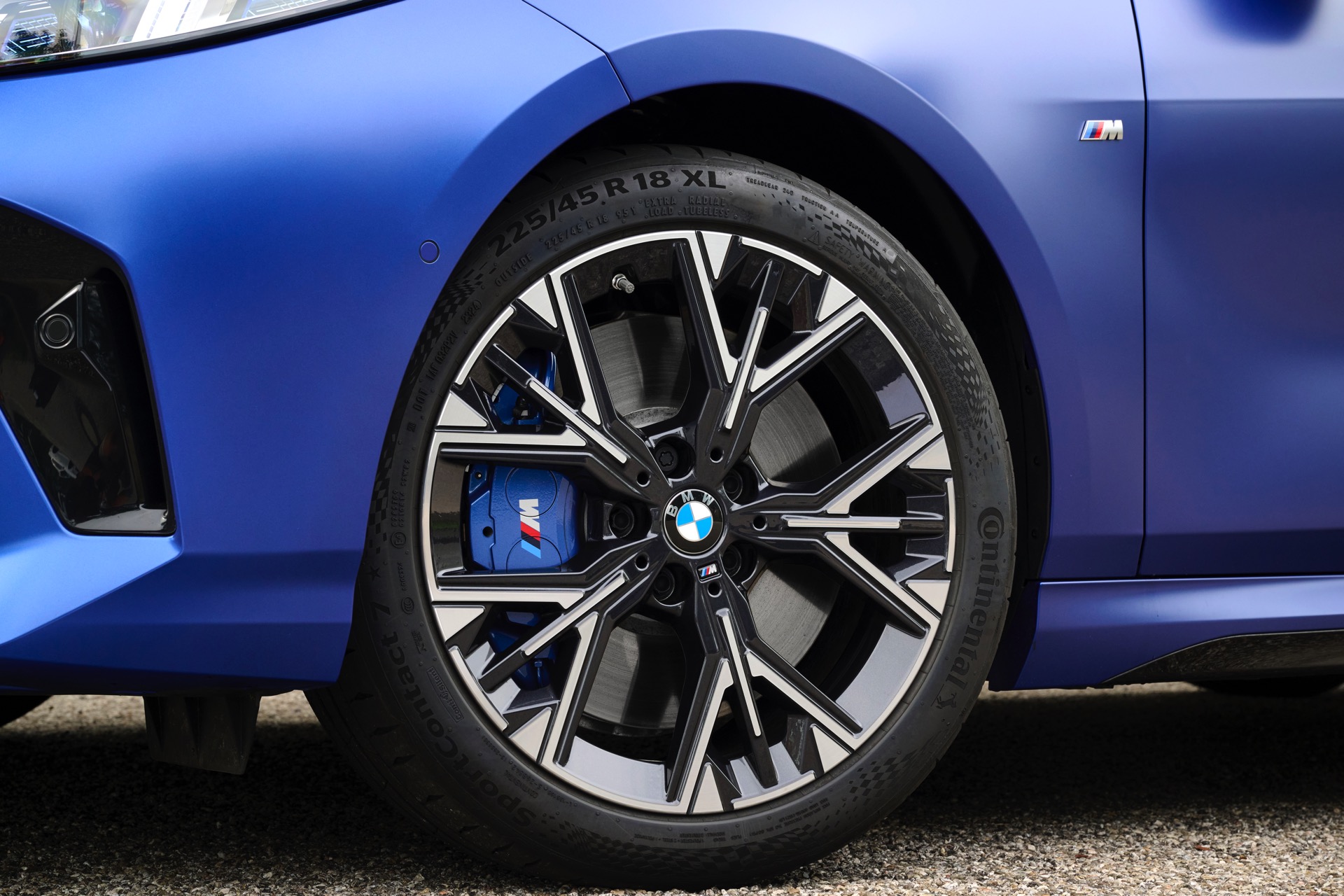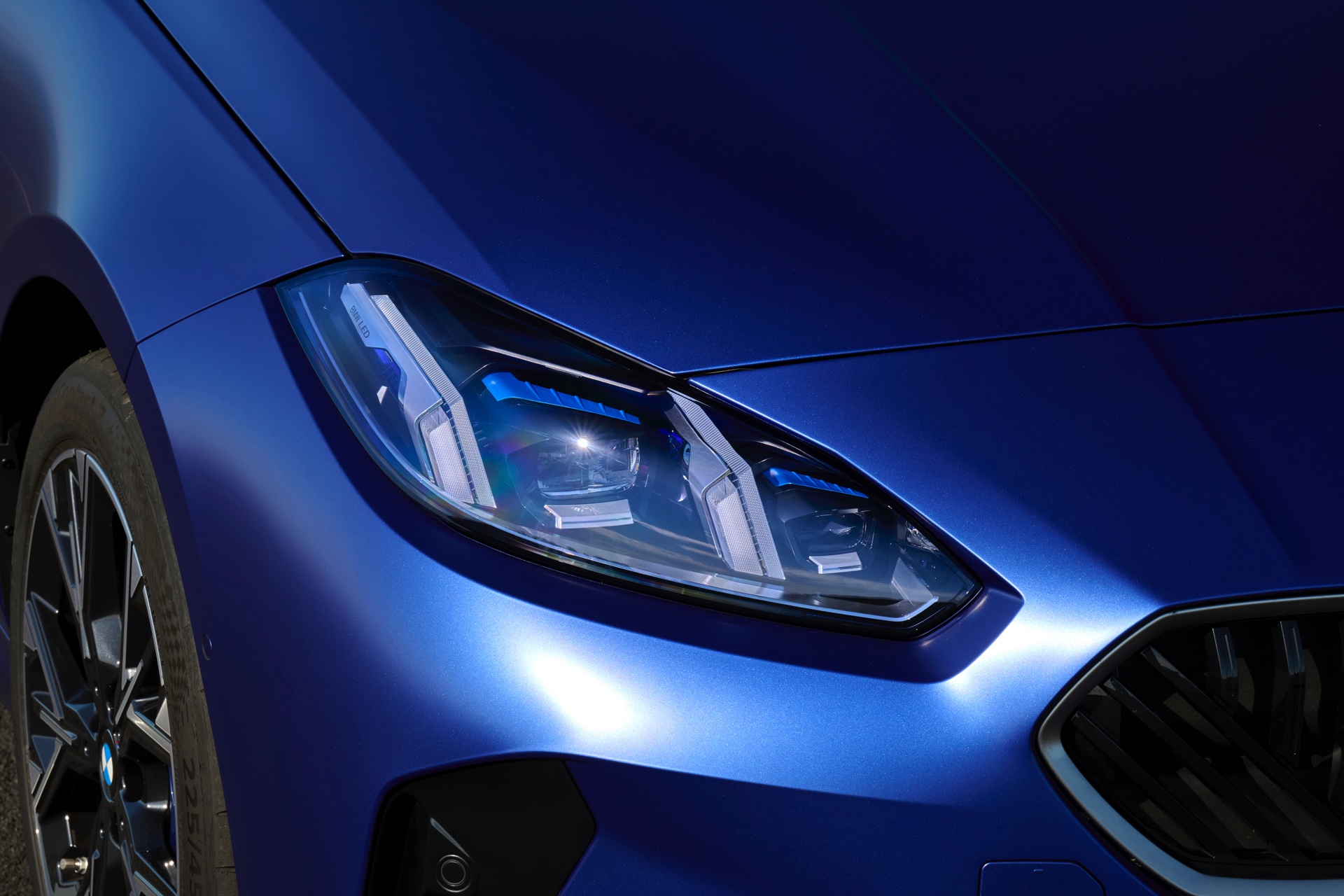 Zu diesem Eindruck tragen – neben dem matten BMW Individual-Lack Frozen Portimao Blue – auch die kleinere, steiler stehende Doppelniere und der weit nach vorn gezogene Frontsplitter des M Sportpakets bei. Selbiges beschert der Heckpartie einen stark ausgeprägten Diffusoreinsatz in Hochglanzschwarz. Sichtbare Endrohre bleiben jedoch grundsätzlich dem BMW M135 xDrive vorbehalten – der bekommt dafür gleich vier Stück.