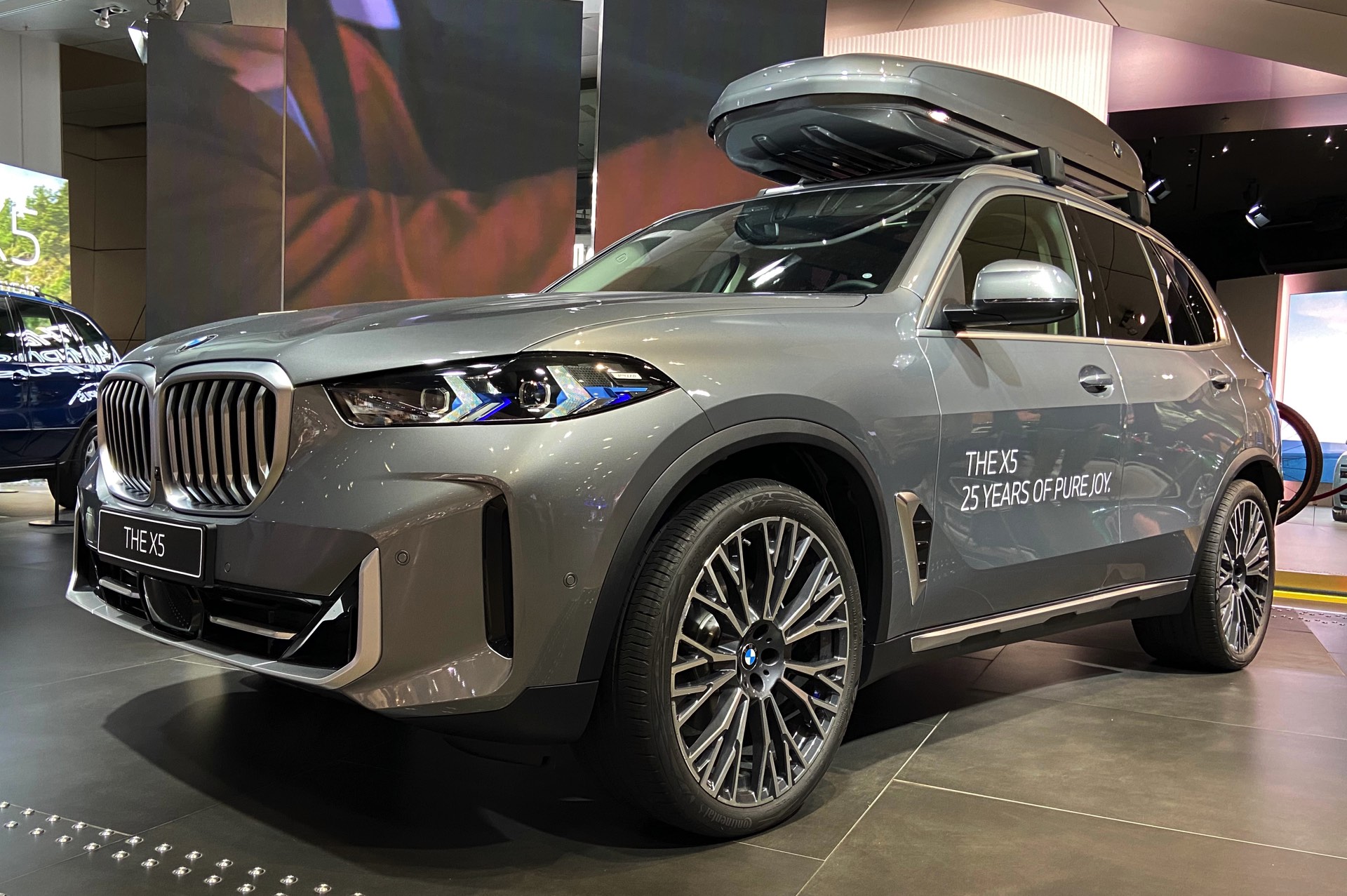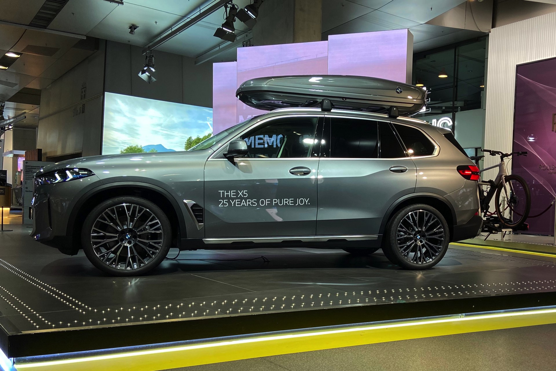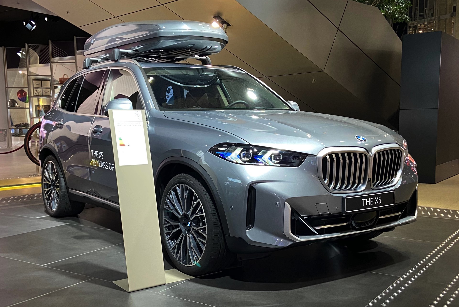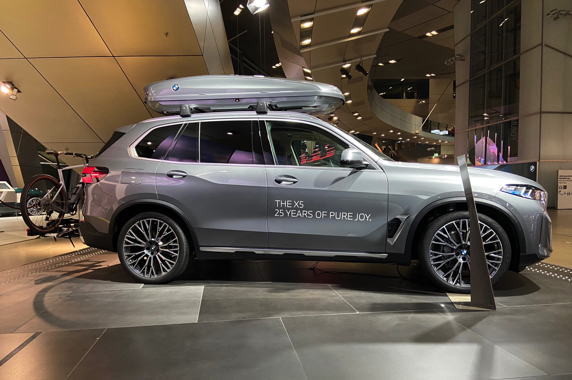 Wie sehr sich das Edel-SUV in den letzten 25 Jahren weiterentwickelt hat, zeigt ein Blick auf die aktuelle Generation: Das BMW X5 Facelift (G05 LCI) präsentiert sich in Skyscraper Grau sowie mit einigen praktischen Zubehör-Artikeln. Der aktuelle X5 hat zwar keinen V8 an Bord, aber der “nur” 3,0 Liter große Reihensechszylinder-Turbo unter der Haube des X5 xDrive40i ist mit 381 PS dennoch stärker als sämtliche Achtzylinder-Saugmotoren aus E53-Zeiten.