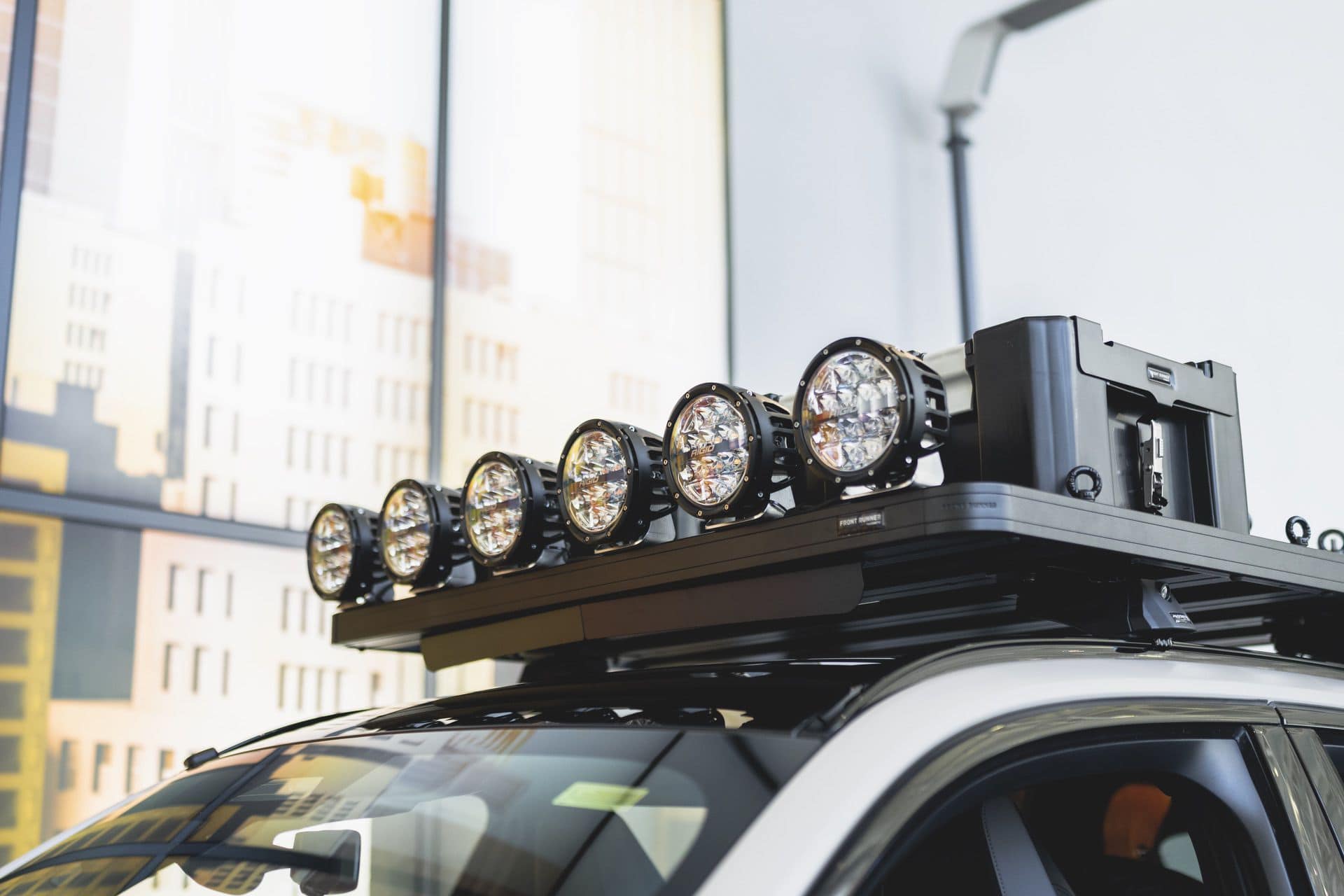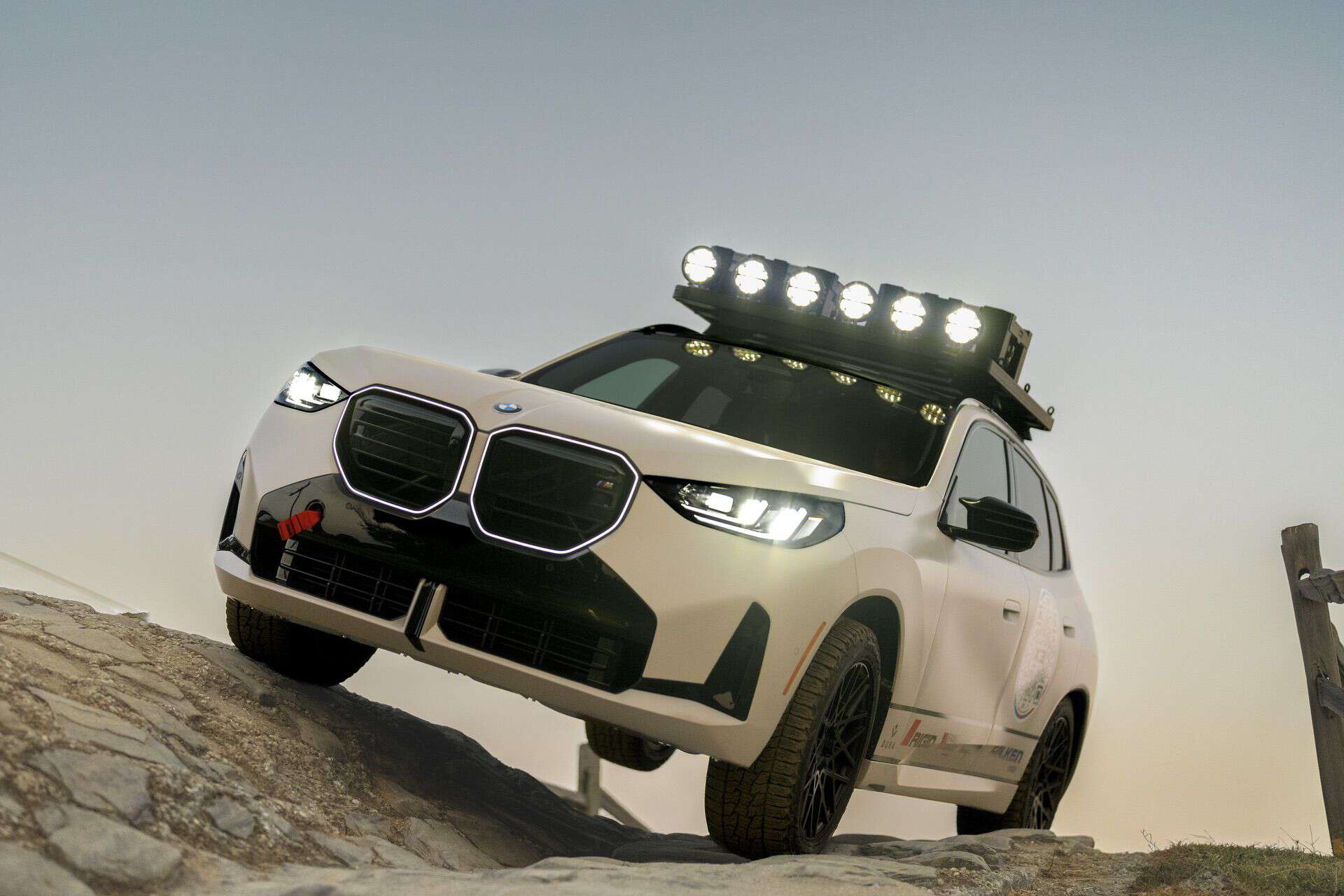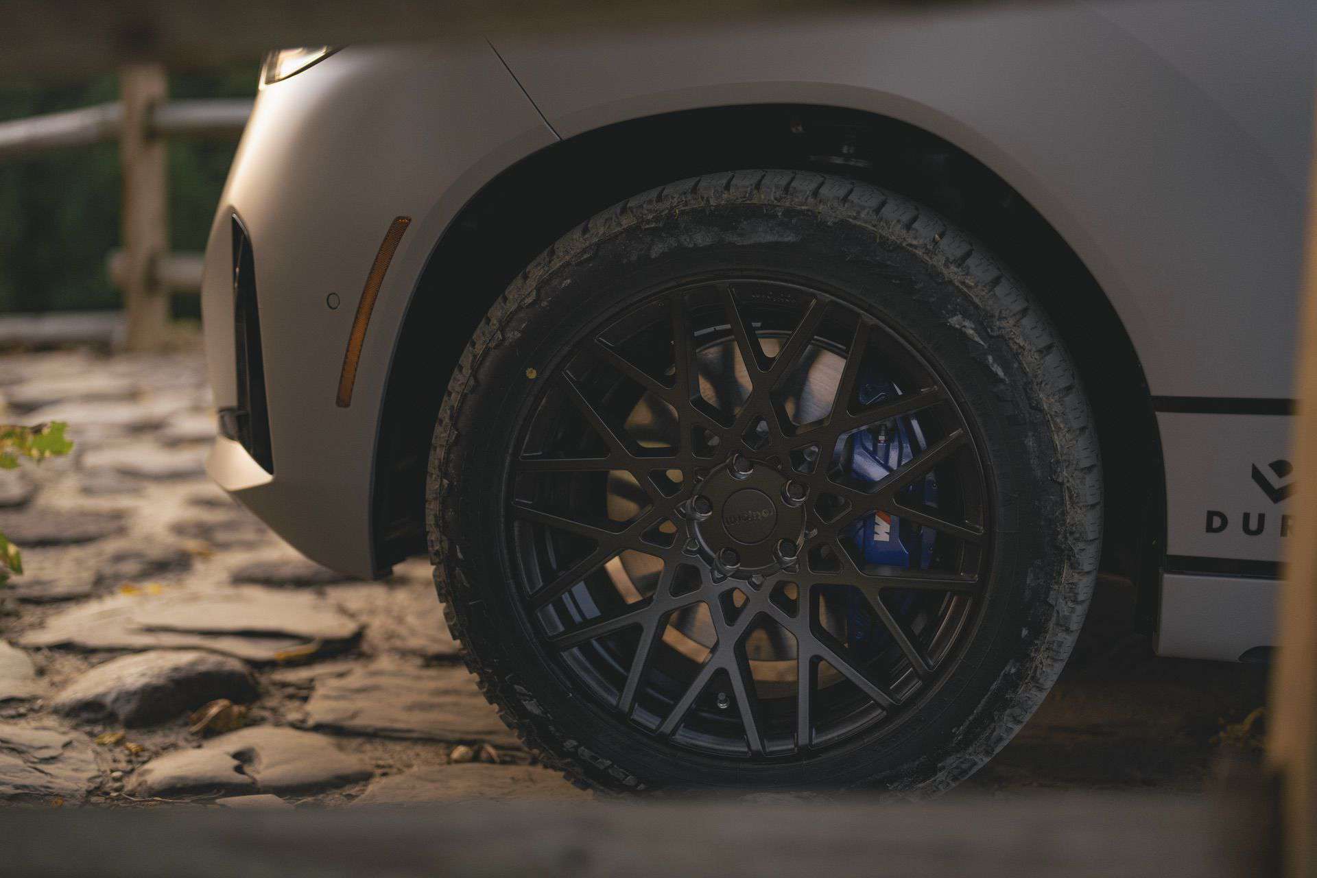 Das vielleicht markanteste Tuning-Teil für die Rebelle Rally trägt der neue BMW X3 auf dem Dach, denn oberhalb der Frontscheibe wurden sechs leistungsstarke Zusatzscheinwerfer installiert und versprechen auch bei Nacht beste Sicht. Das Offroad Lighting entstammt der 360-Series von Rigid Industries und wurde mit Hilfe spezieller Dachgepäckträger von Front Runner befestigt. Für mehr Widerstandsfähigkeit und Traktion im Gelände wurde der X3 auch auf neue Räder gestellt: In den Radhäusern sehen wir Rotiform-Felgen vom Typ BLQ-C mit Finish in mattem Schwarz, darauf kommen mit den Falken Wildpeak A/T Trail echte Offroad-Reifen zum Einsatz.