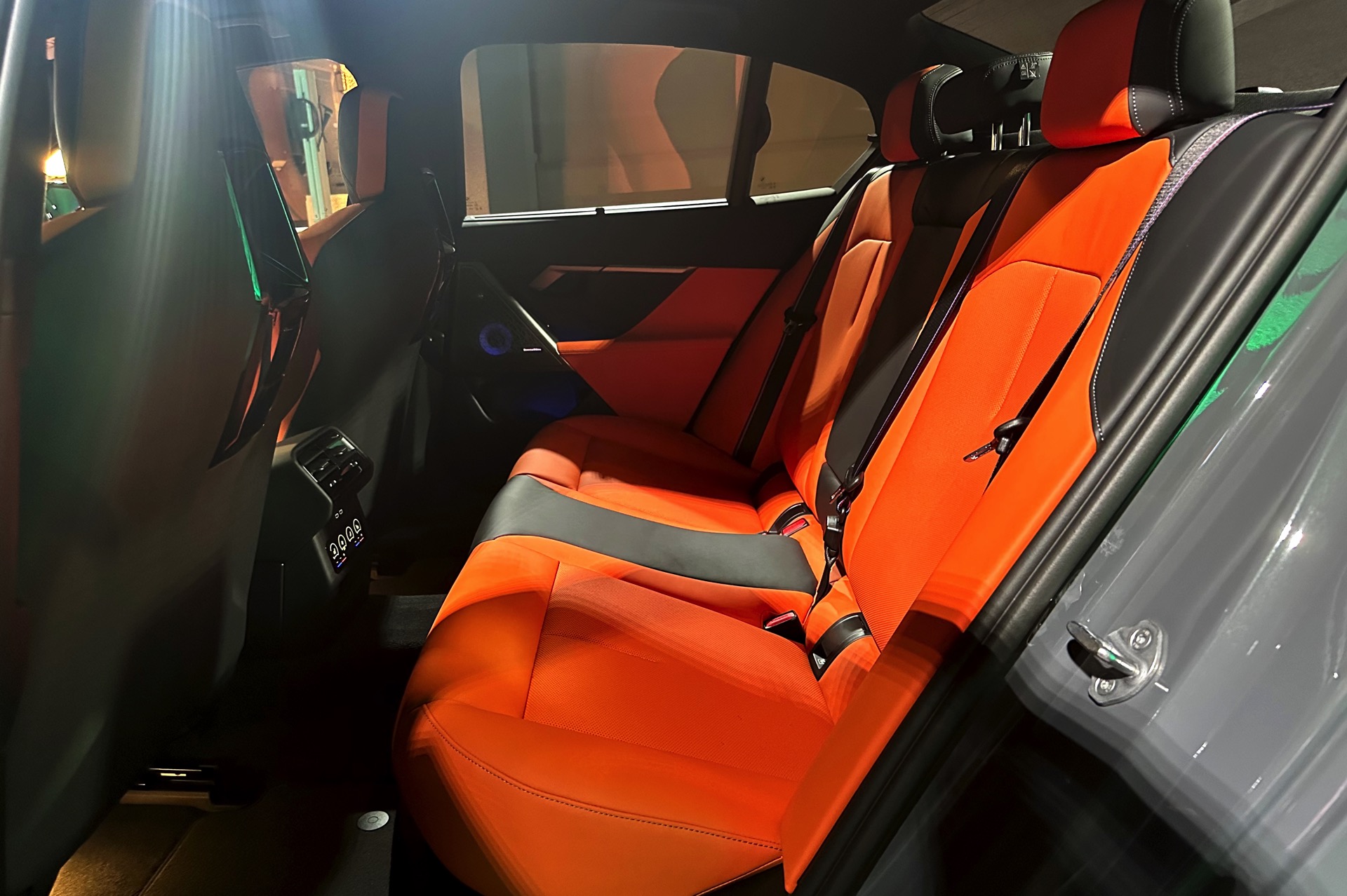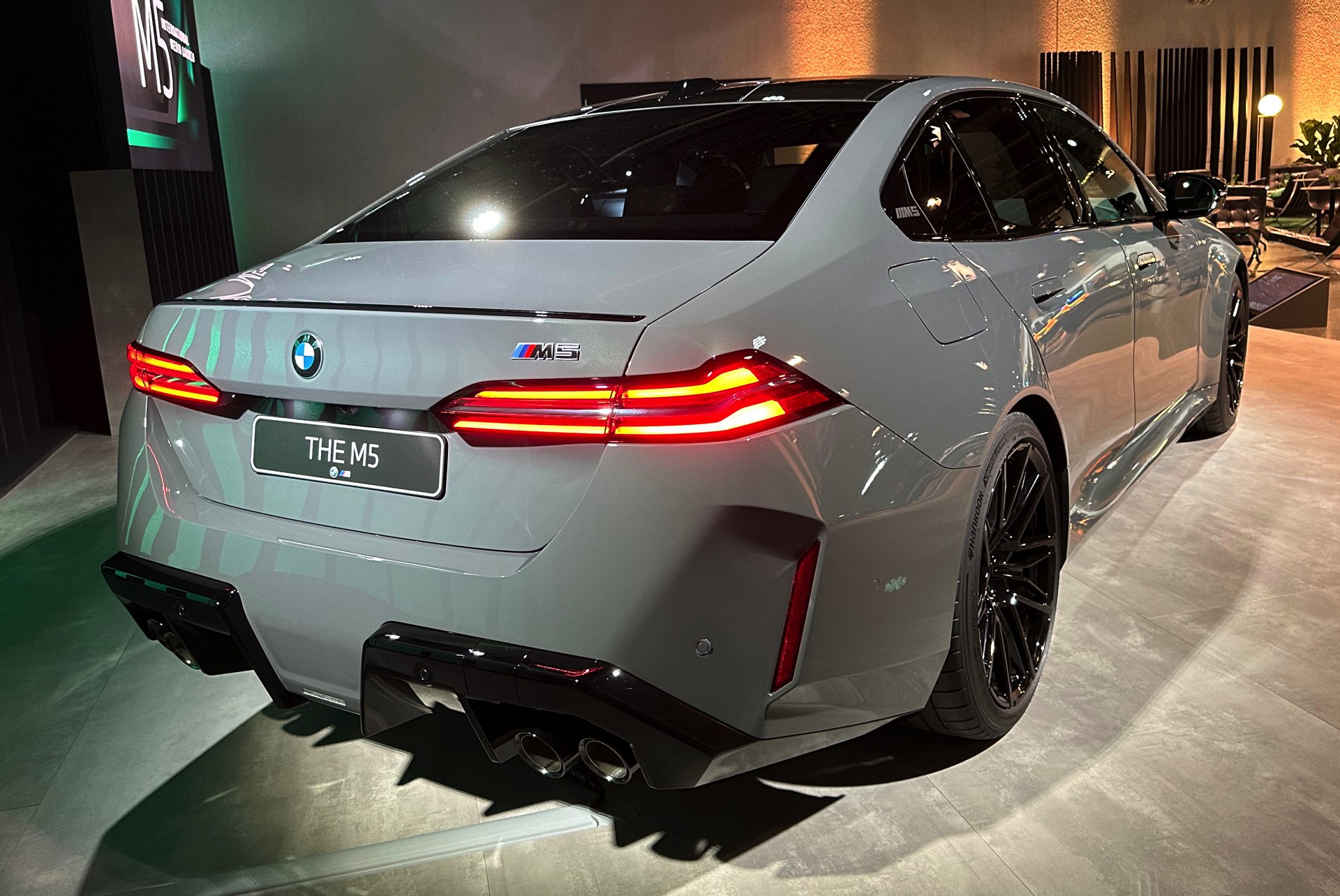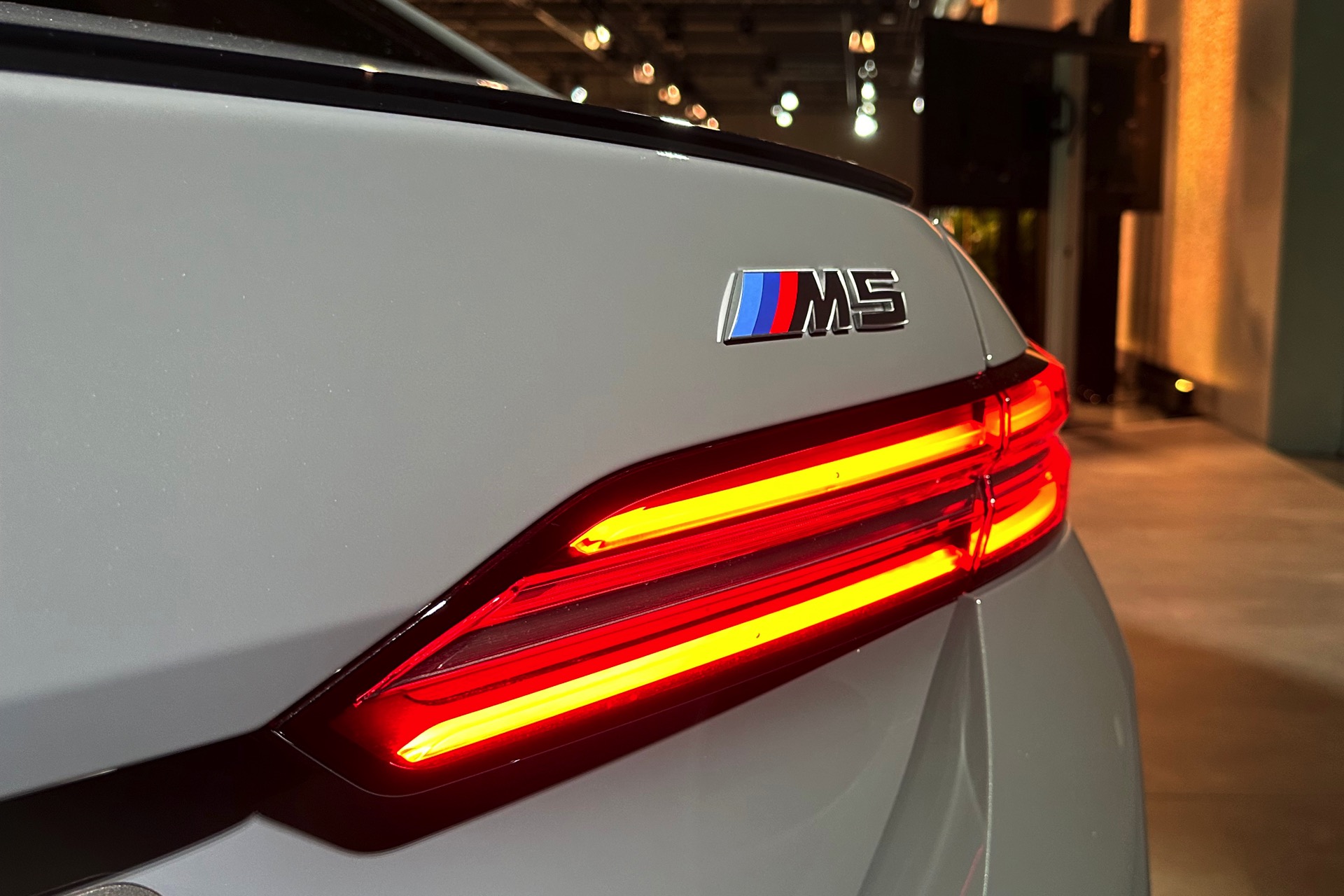An der Front dominiert der zentrale Lufteinlass unterhalb der von beleuchteten Iconic Glow-Einfassungen zusätzlich betonten Nieren die Optik, aber auch das exklusiv M5 und i5 M60 vorbehaltene Nieren-Innenleben mit horizontalen Streben trägt zur Breitenwirkung bei. Dass die Niere im oberen Teil auch beim M5 mit seinem doppelt aufgeladenen Achtzylinder geschlossen ist, hängt übrigens mit der Sensorik für die Assistenzsysteme zusammen. Am Heck sind Missverständnisse erst Recht ausgeschlossen, denn neben den verbreiterten Kotflügeln sprechen hier auch der zweigeteilte Diffusor und die vier Endrohre eine unmissverständliche Sprache. "
