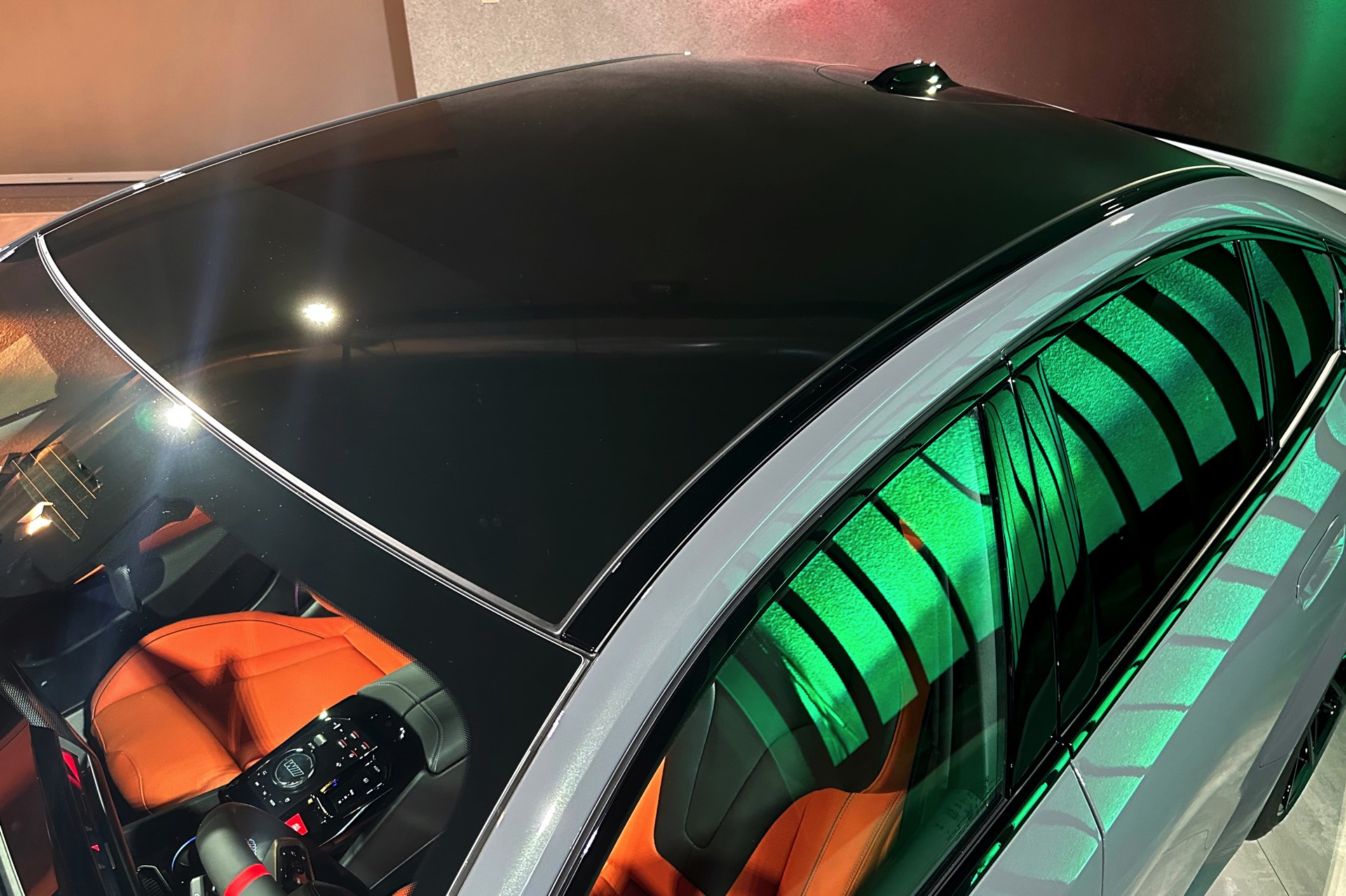 Zu den schwarzen Akzenten zählt auch das serienmäßige Dach, denn anders als beim Vorgänger handelt es sich hier nicht um Sicht-Carbon: Bei der neuen Generation ist im Grundpreis von 144.000 Euro “nur” ein Panorama-Glasdach enthalten, erst in Verbindung mit dem Carbon Exterieur-Paket wird stattdessen das leichtere Carbon-Dach verbaut.