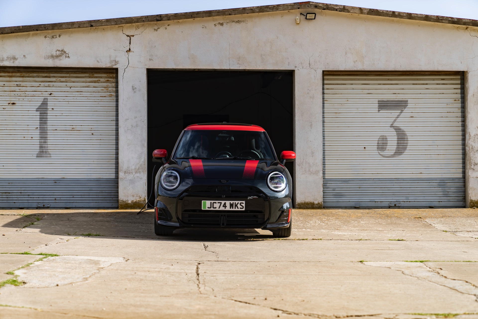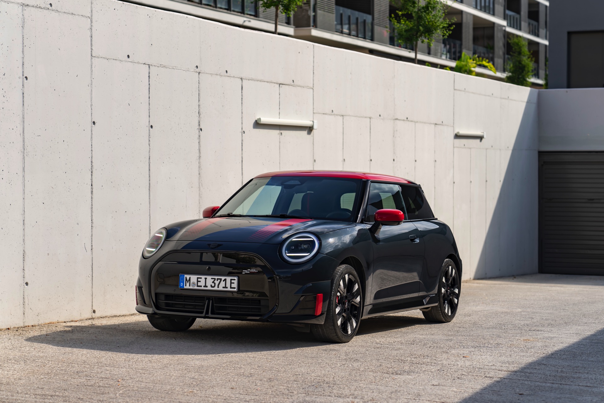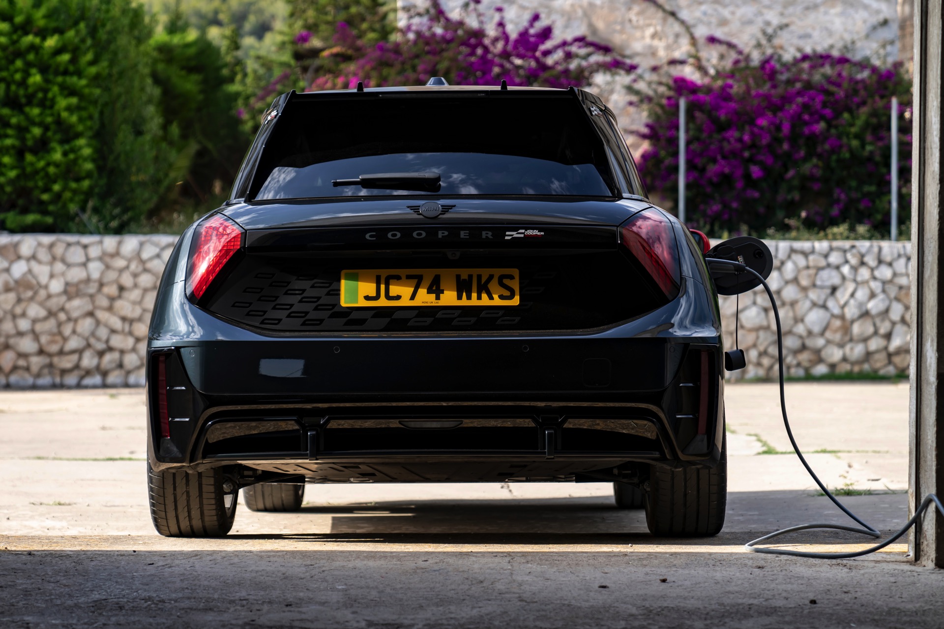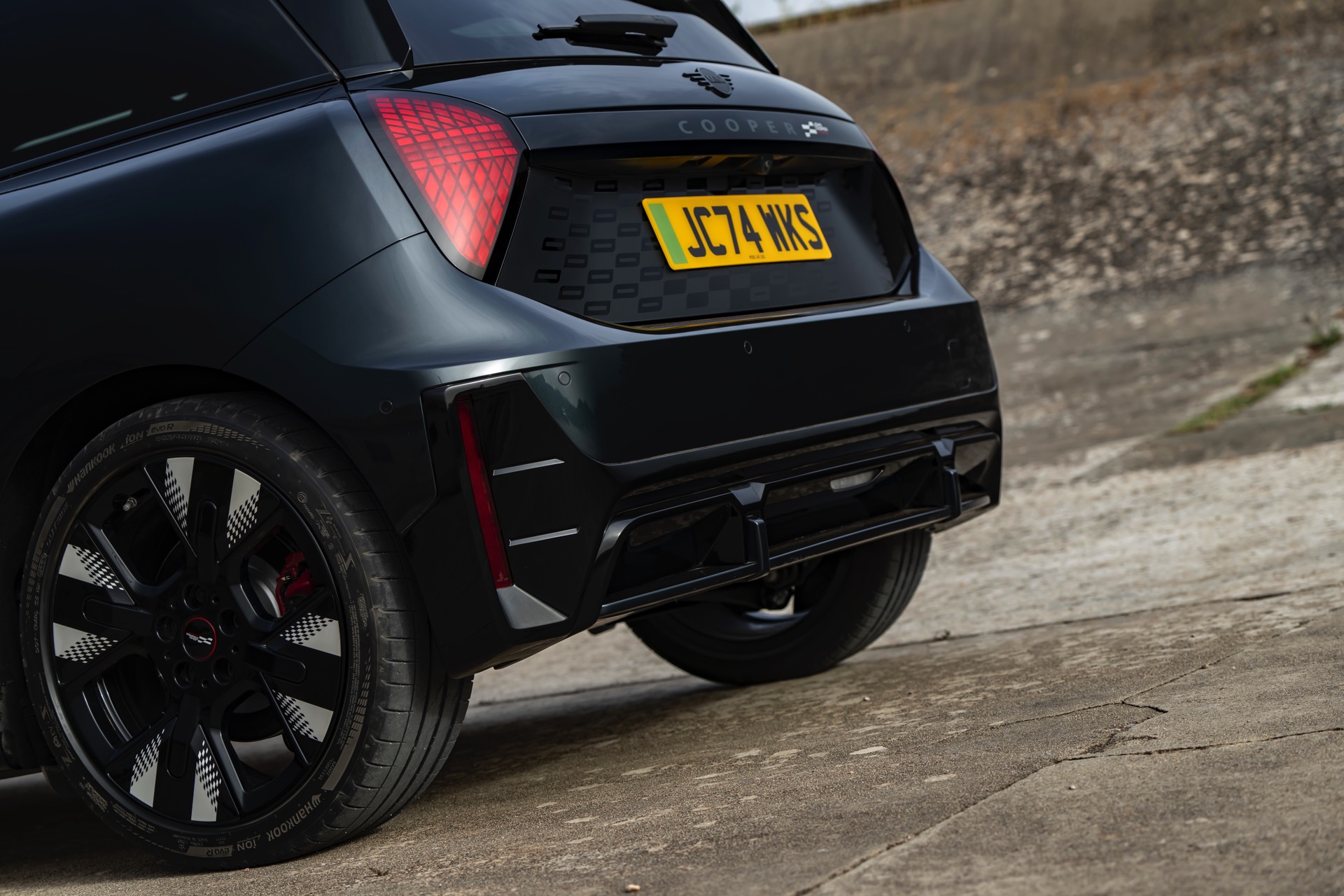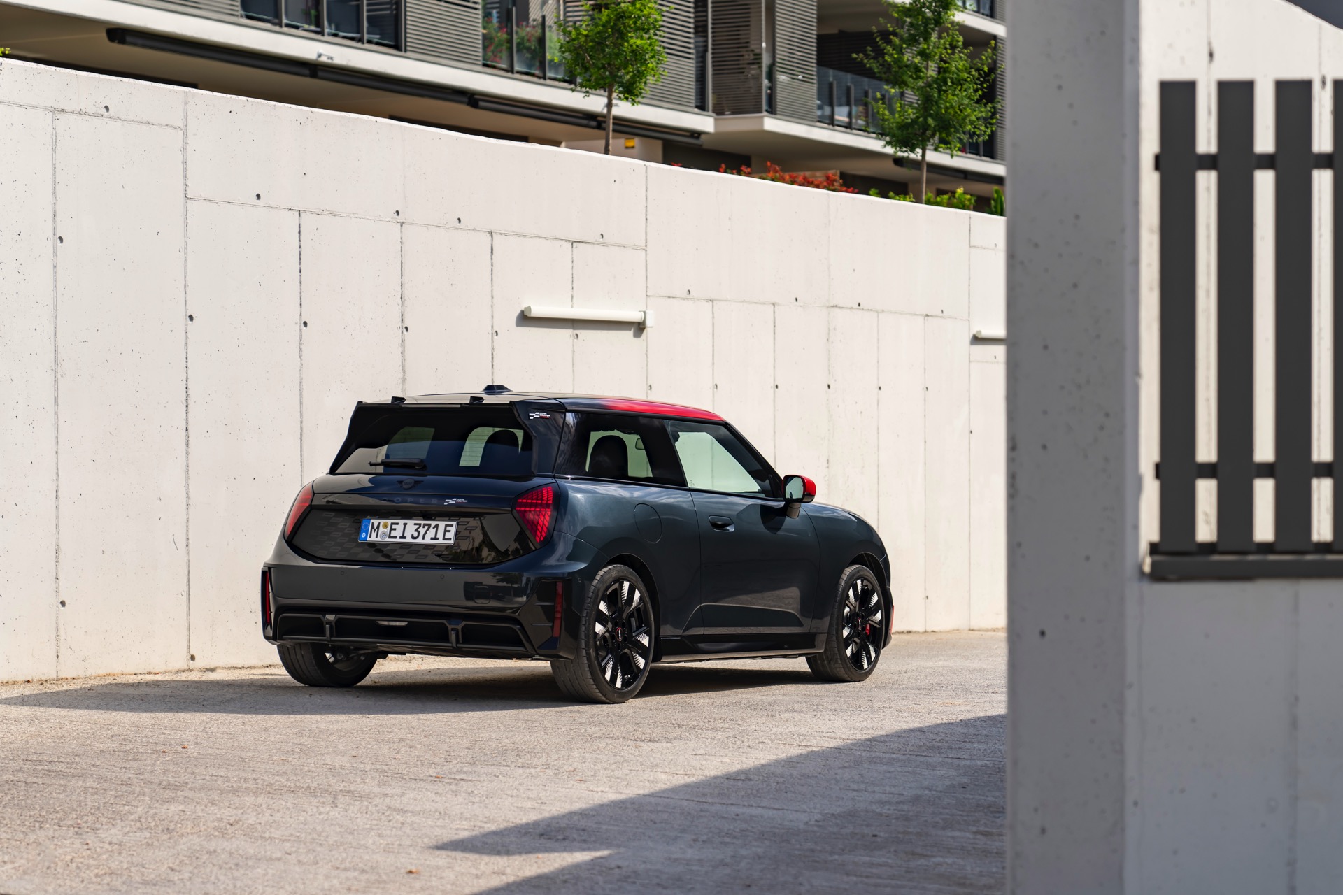Anders als alle bisherigen John Cooper Works-Modelle können sich die neuen Elektroautos nicht durch eine besonders markante Abgasanlage von den schwächeren Modellen abgrenzen. Ins Auge stoßen deshalb Aspekte wie der markante Heckspoiler und das Kontrastdach, das wahlweise komplett in Chili Red oder als Multitone-Roof mit Farbverlauf von Rot zu Schwarz lackiert wird. Ein Hinweis für Kenner ist die JCW-Signatur der Frontscheinwerfer, die mit horizontalen Balken auf sich aufmerksam machen können.