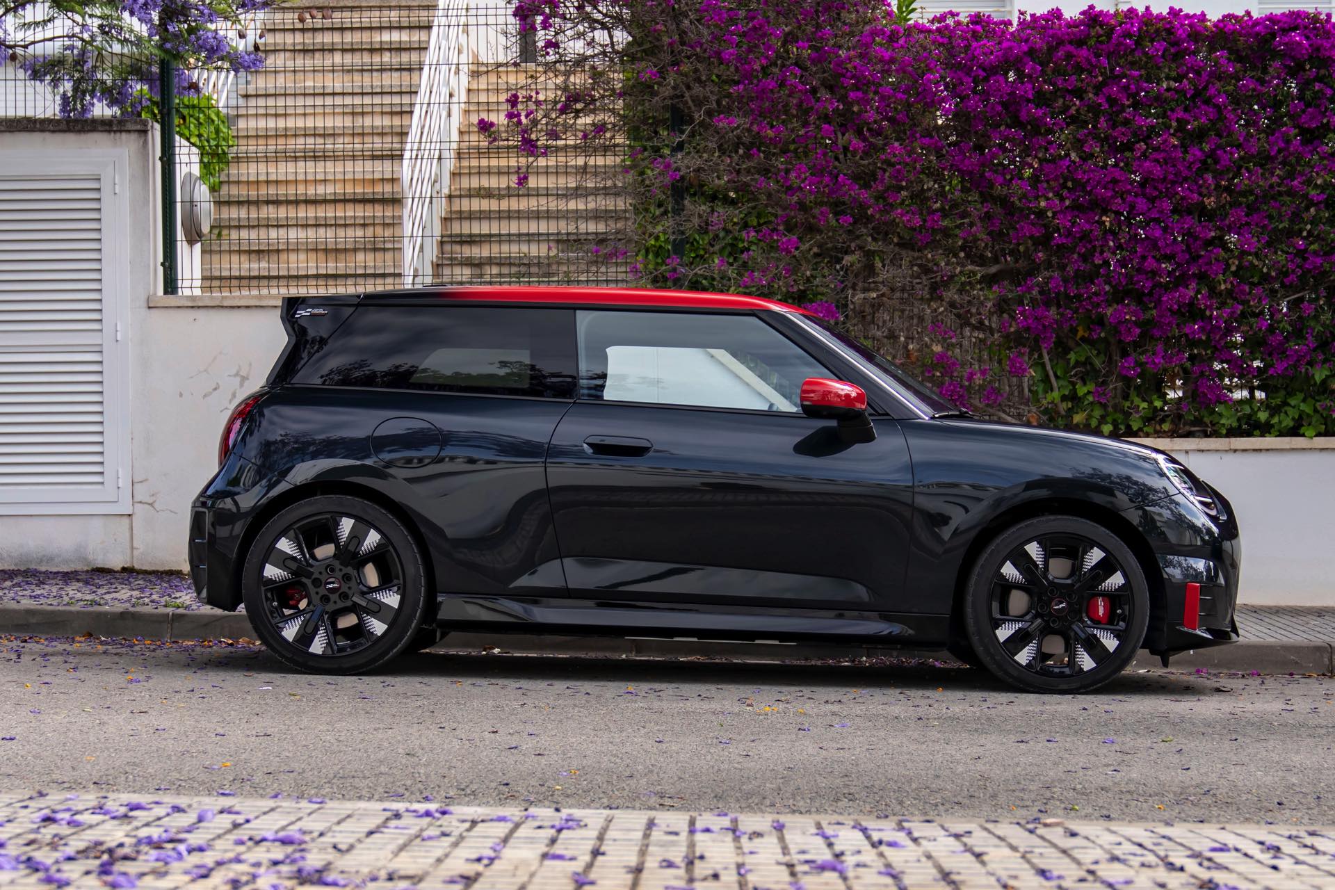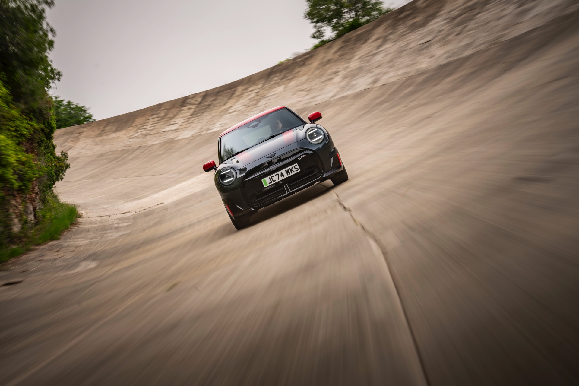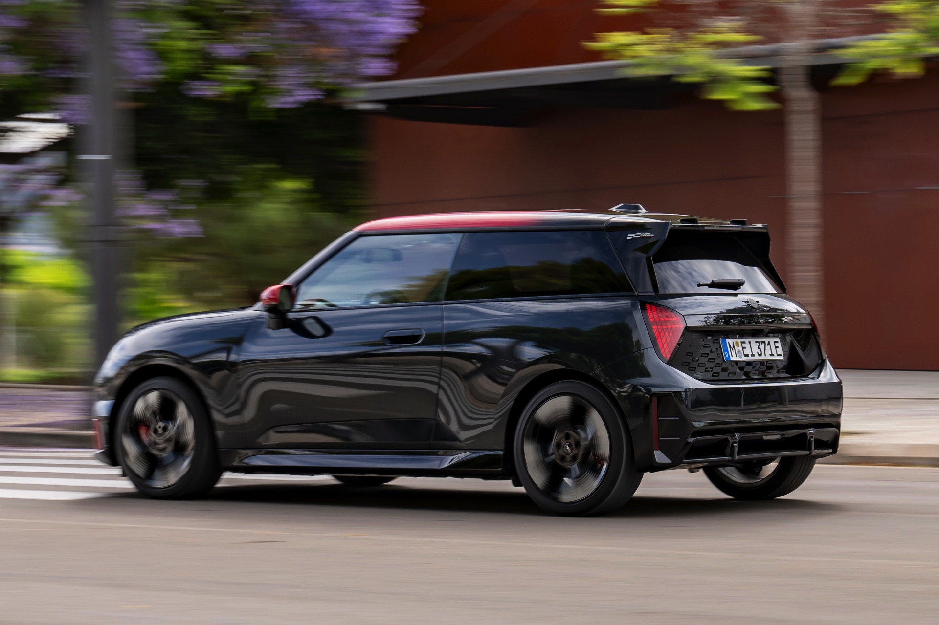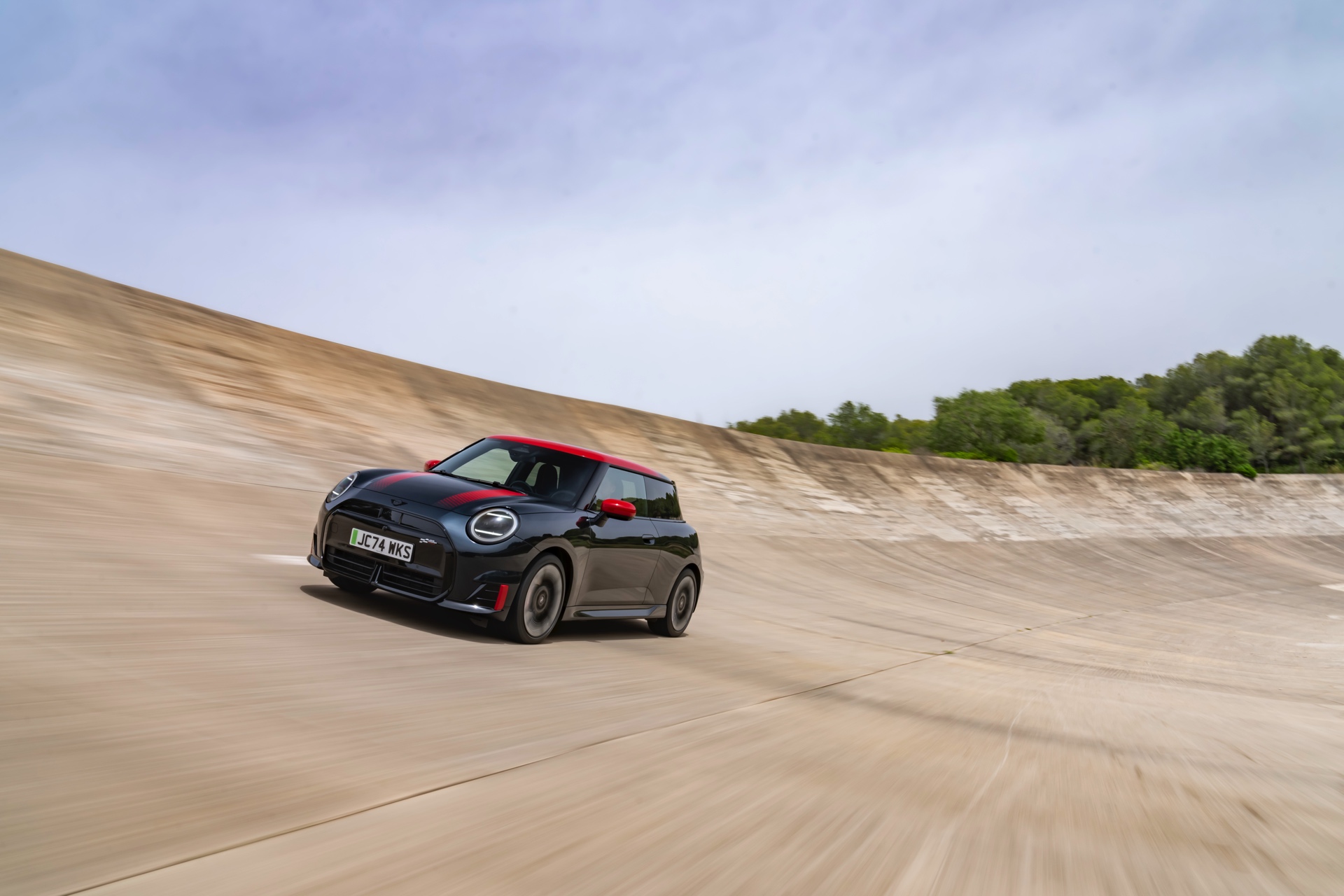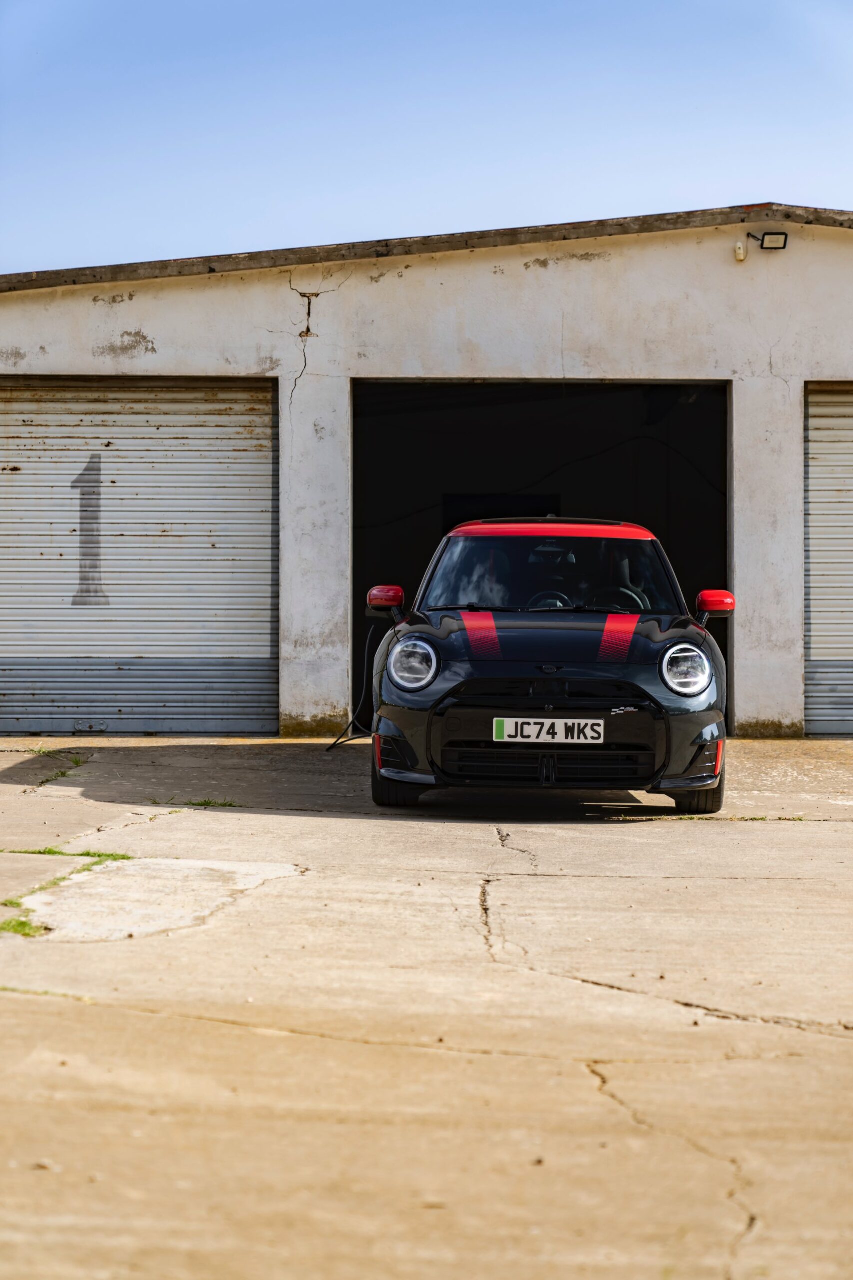 Anders als alle bisherigen John Cooper Works-Modelle können sich die neuen Elektroautos nicht durch eine besonders markante Abgasanlage von den schwächeren Modellen abgrenzen. Ins Auge stoßen deshalb Aspekte wie der markante Heckspoiler und das Kontrastdach, das wahlweise komplett in Chili Red oder als Multitone-Roof mit Farbverlauf von Rot zu Schwarz lackiert wird. Ein Hinweis für Kenner ist die JCW-Signatur der Frontscheinwerfer, die mit horizontalen Balken auf sich aufmerksam machen können.
