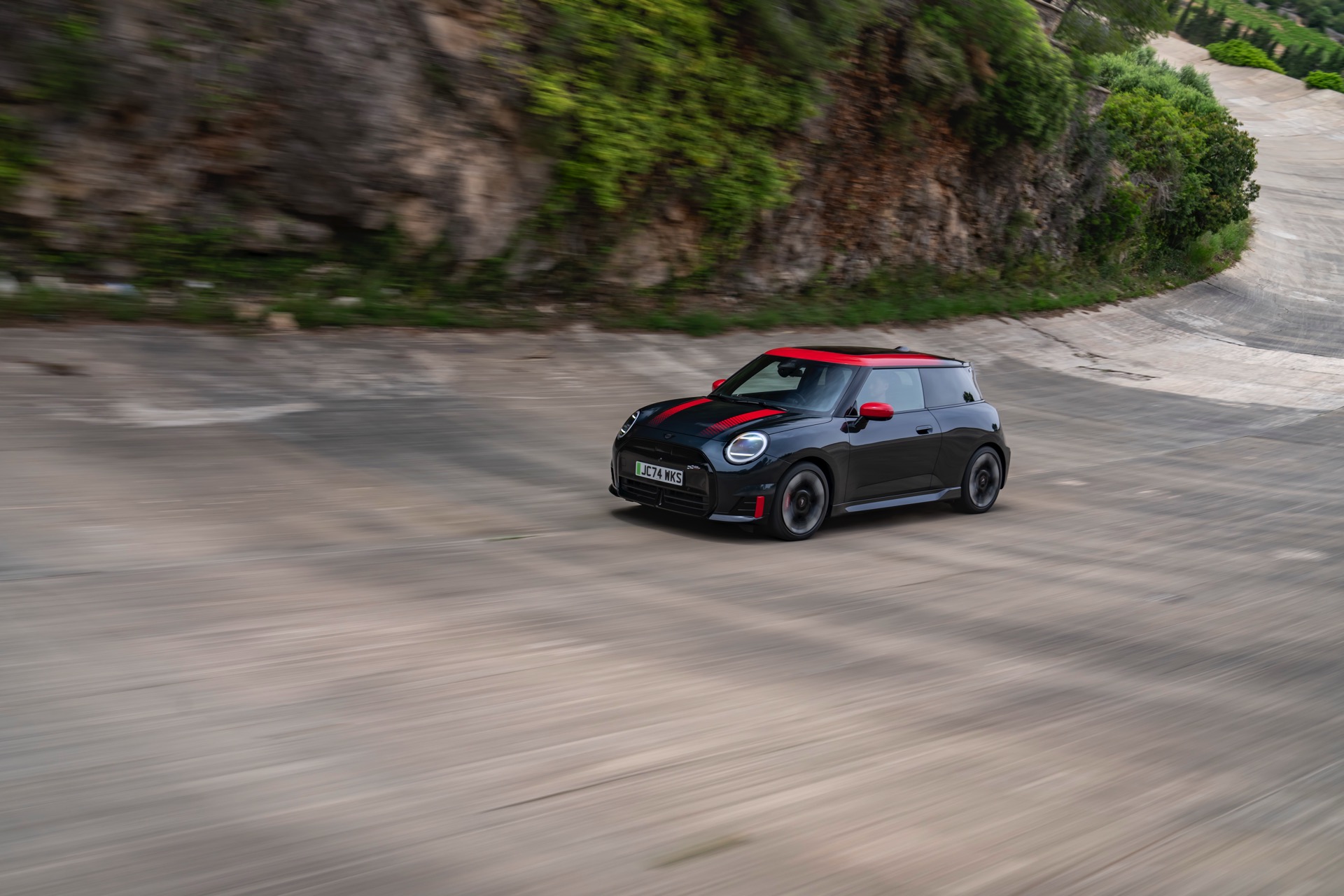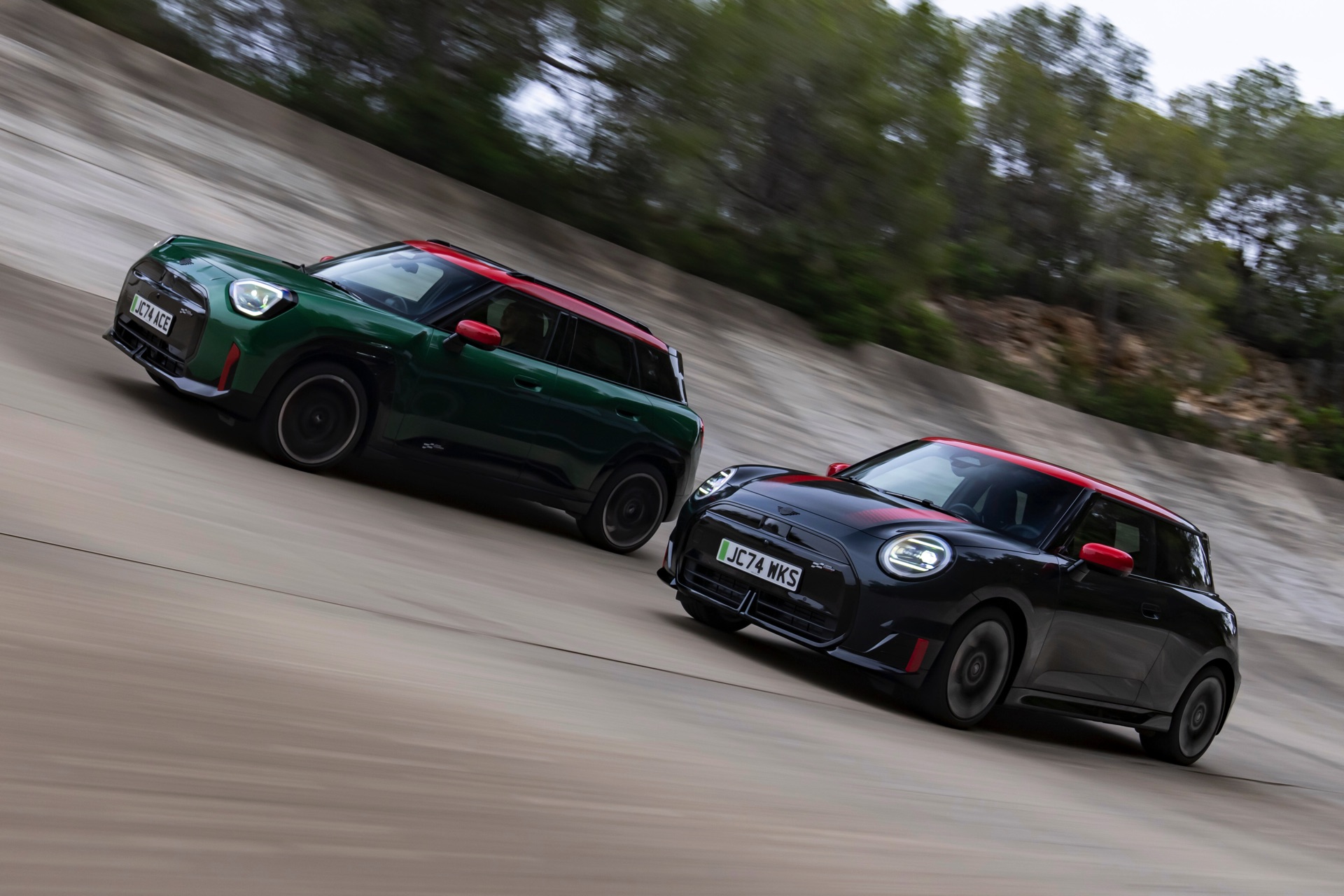 Für den Antrieb sorgt in beiden Fällen ein Elektromotor an der Vorderachse, der im regulären Betrieb mit 170 kW beziehungsweise 231 PS für Vortrieb sorgt. Das gilt aber nur, wenn der Fahrer keine besondere Eile signalisiert: Per Wippschalter am Lenkrad können jederzeit der GoKart-Modus und die Boost-Funktion aktiviert werden, wobei letztere vorübergehend 20kW zusätzlich freischaltet. Mit Boost steht die volle Kraft von 258 PS und 350 Newtonmeter zur Verfügung, was den Sprint von 0 auf 100 im Fall des dreitürigen MINI John Cooper Works Electric (J01) in 5,9 Sekunden ermöglicht. Der größere und daher auch schwerere MINI Aceman JCW benötigt mit 6,4 Sekunden etwas länger, bei der Höchstgeschwindigkeit von 200 km/h herrscht aber wieder Einigkeit. "