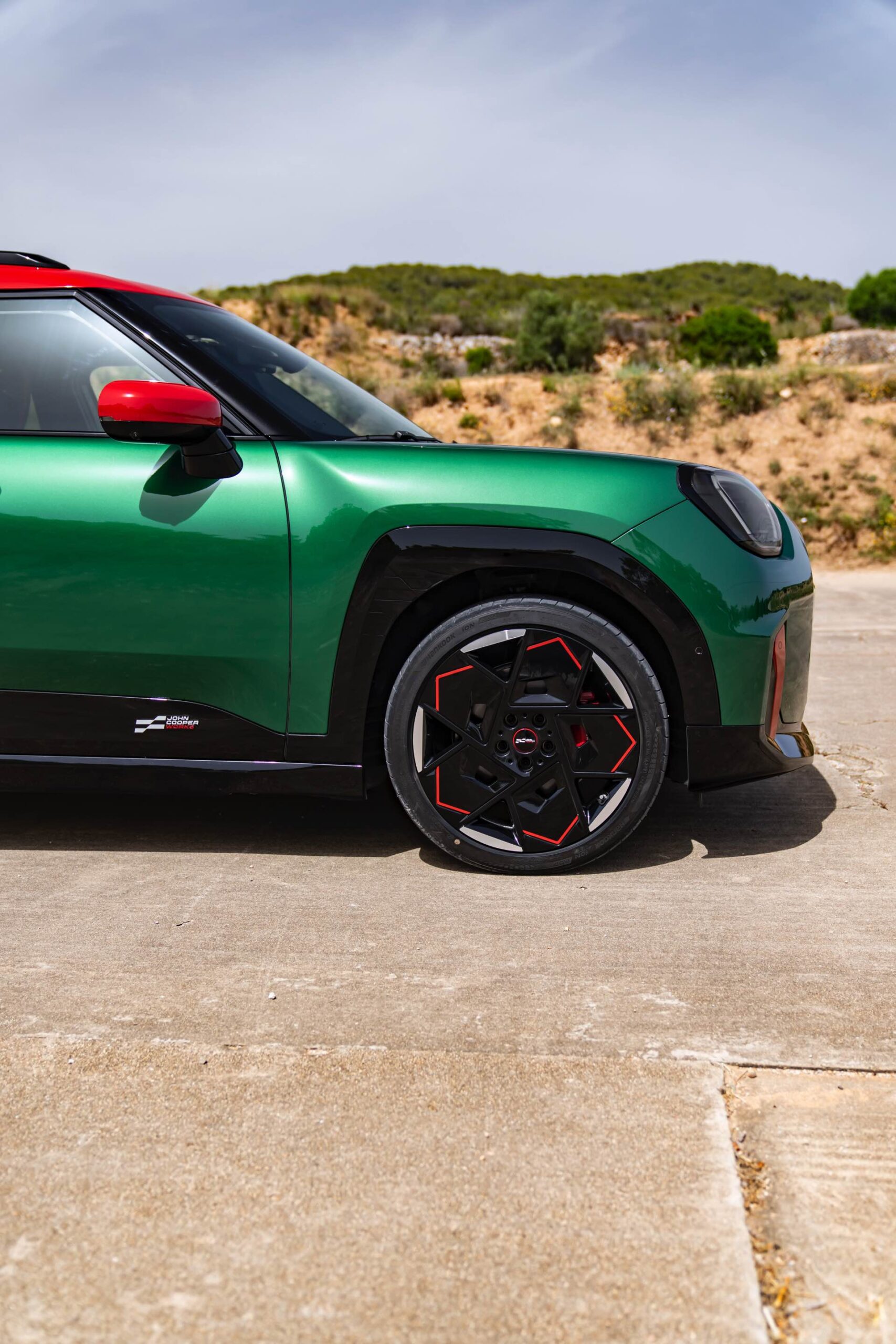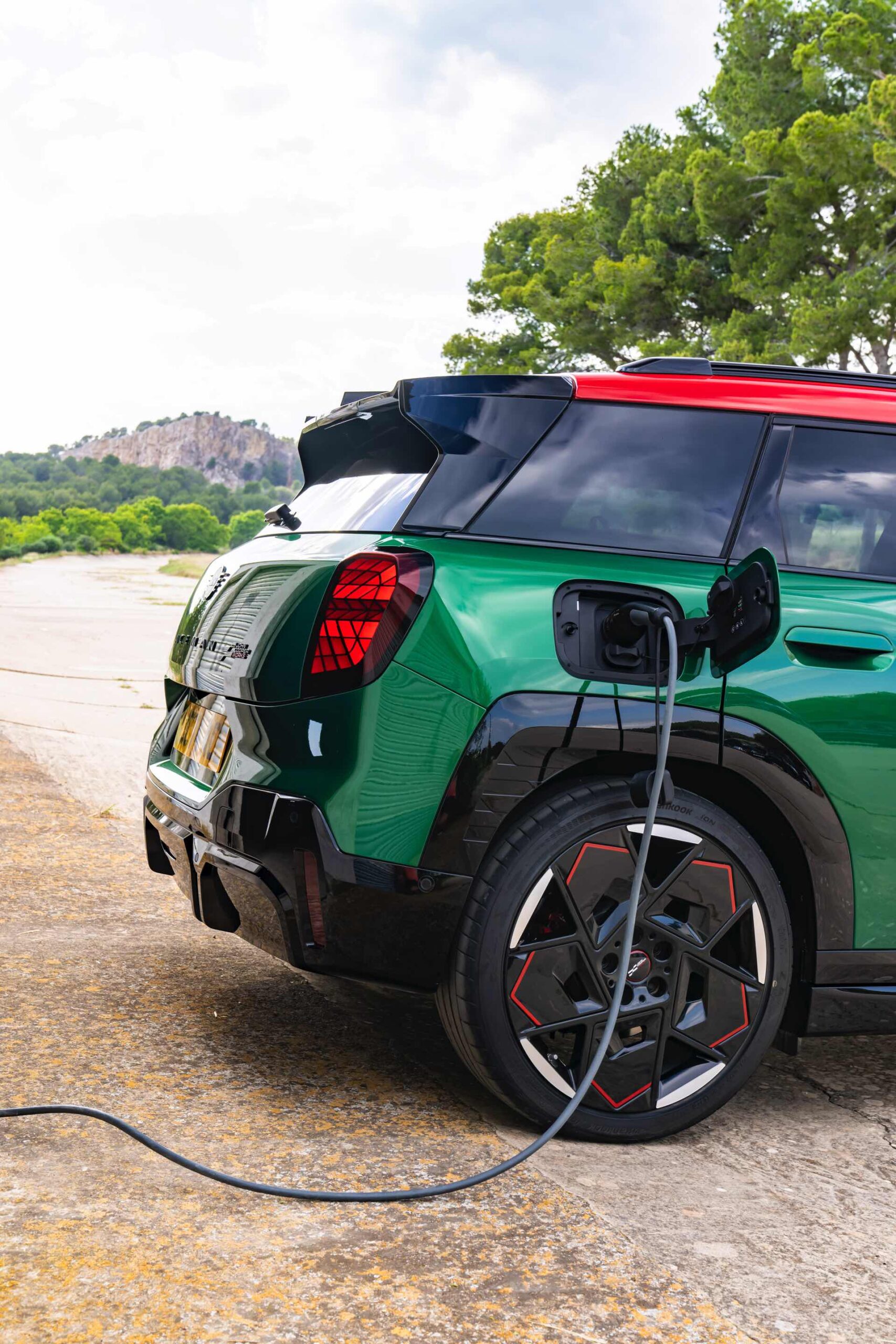 Keine Überraschungen gibt es bei Reichweite und Akku-Größe: Mit 54,2 kWh Brutto-Kapazität entspricht die Batterie dem bekannten Stand des MINI Aceman SE (J05), die Reichweite liegt mit 355 Kilometern gemäß WLTP leicht unterhalb des SE-Modells. Klar im Vorteil befindet sich der JCW bei der Höchstgeschwindigkeit: Mit 200 km/h übertrifft er die 170 km/h des SE so deutlich, dass es für den einen oder anderen Kunden durchaus eine Rolle spielen könnte.
