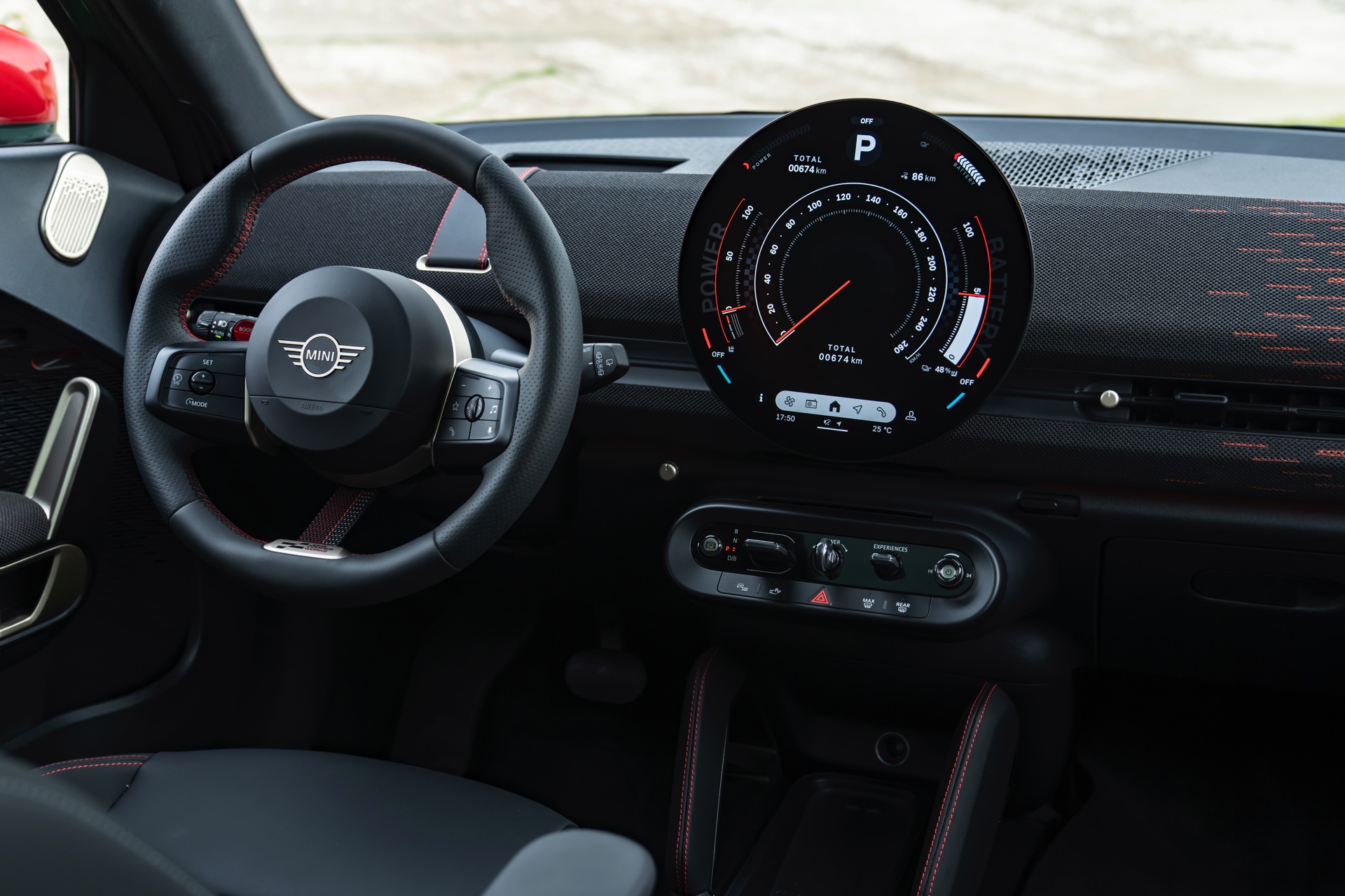 Der neue MINI Aceman John Cooper Works bietet dabei nicht nur zwei Türen mehr, sondern dank über 20 Zentimetern mehr Außenlänge auch spürbar mehr Platz. Dass die Fahrleistungen aufgrund des höheren Gewichts etwas schlechter ausfallen, dürfte ohne direkten Vergleich kaum jemals eine Rolle spielen: Mit einer Werksangabe von 6,4 Sekunden für den Sprint von 0 auf 100 ist auch der Top-J05 zackig unterwegs, was mit Blick auf 258 PS und 350 Newtonmeter Drehmoment niemanden überraschen dürfte. Die volle Leistung steht allerdings nur im Boost-Modus zur Verfügung: Wer diesen nicht mit Hilfe eines Wippschalters am Lenkrad aktiviert, muss sich mit “nur” 231 PS begnügen. "