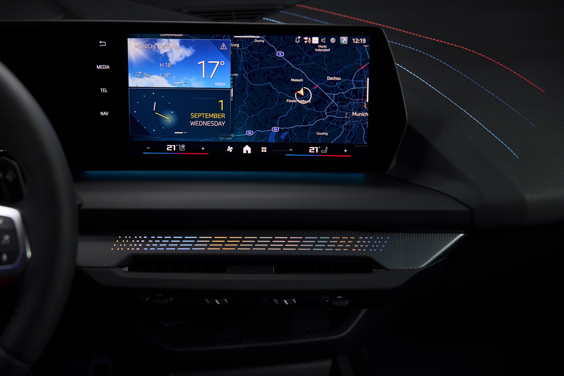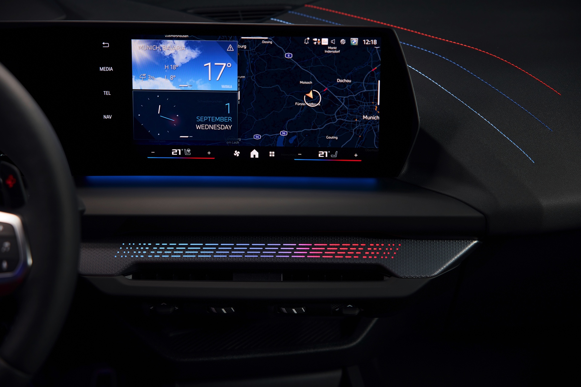 Im Innenraum punktet das BMW 2er Gran Coupé 2025 mit einem völlig neu gestalteten Cockpit, das sich erwartungsgemäß eng am 1er orientiert: Wir sehen die kleinere Variante des BMW Curved Display mit 10,25 Zoll links und 10,7 Zoll rechts, Software-seitig kommt das aktuelle iDrive 9 zum Einsatz. Wichtiger als der neue Display-Verbund könnte für viele Kunden sein, dass der 2er nicht länger über einen iDrive-Controller verfügt und stattdessen voll auf Touchscreen und Spracheingabe setzt.