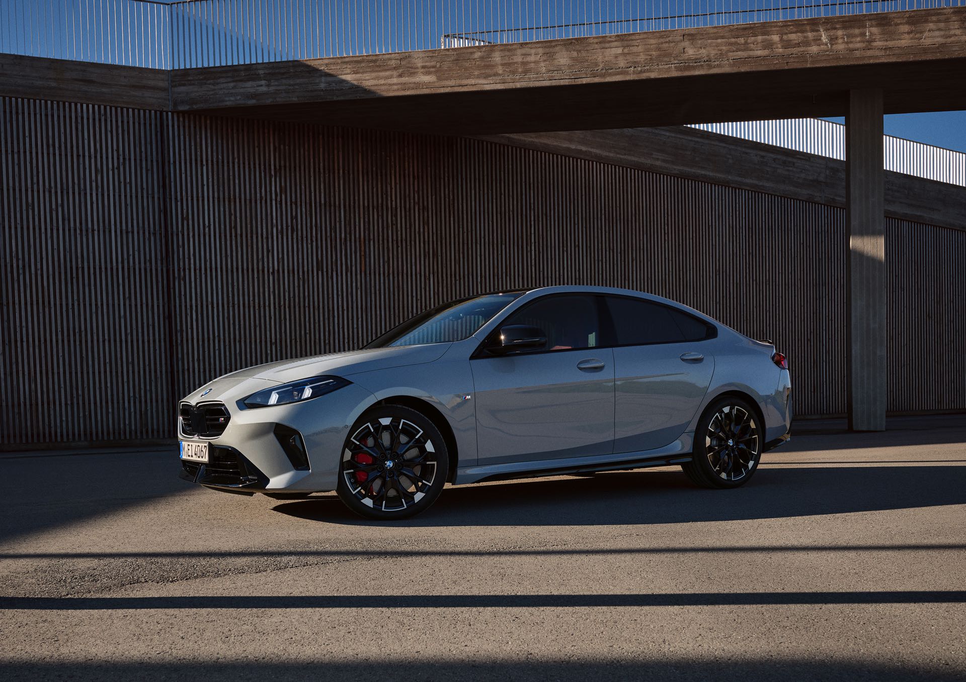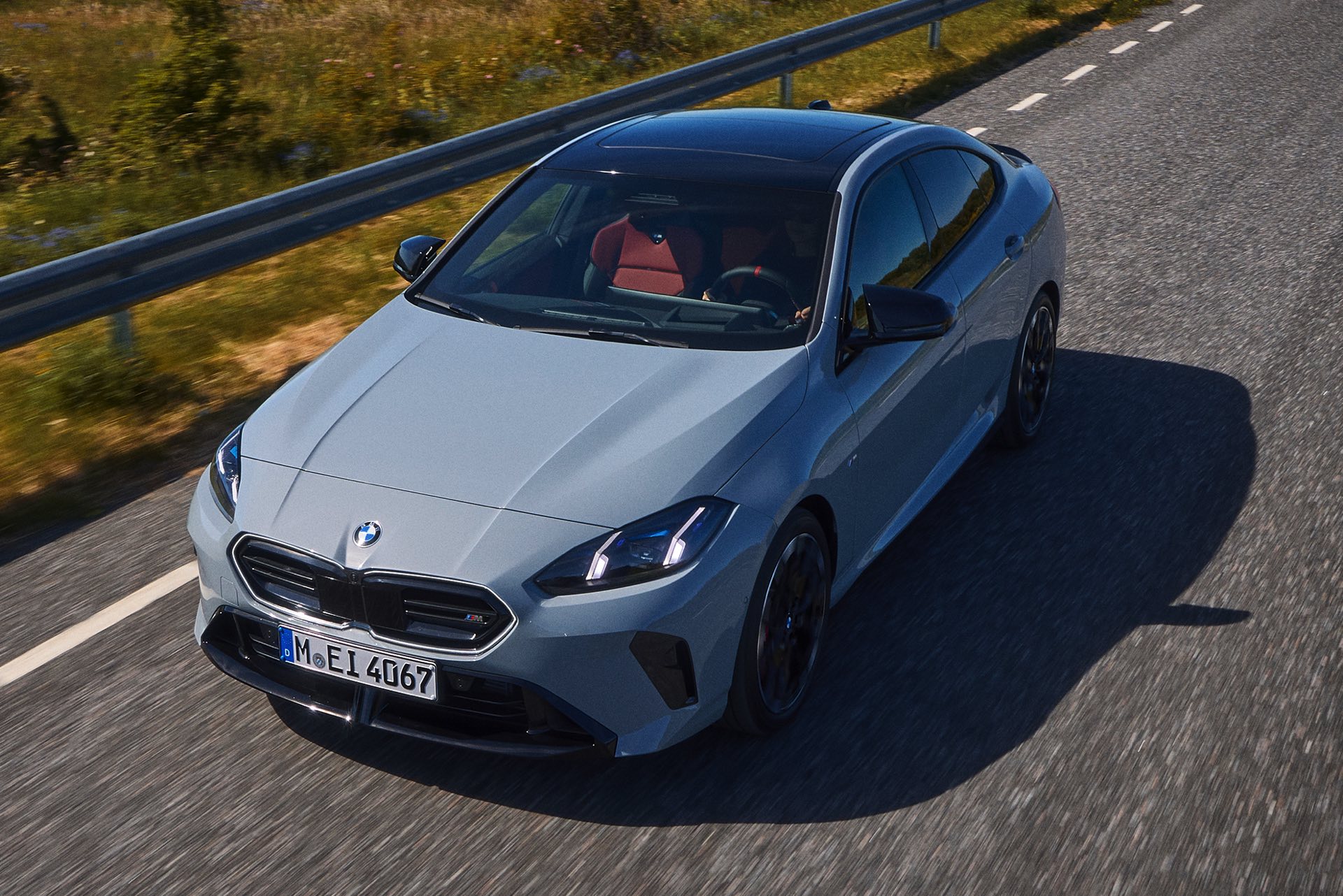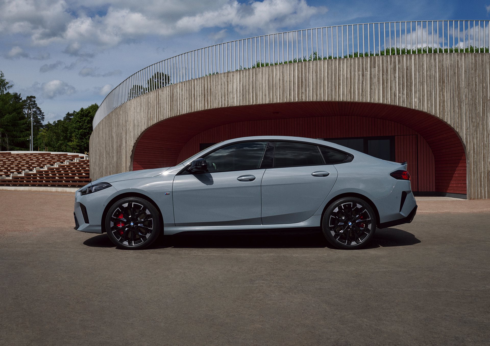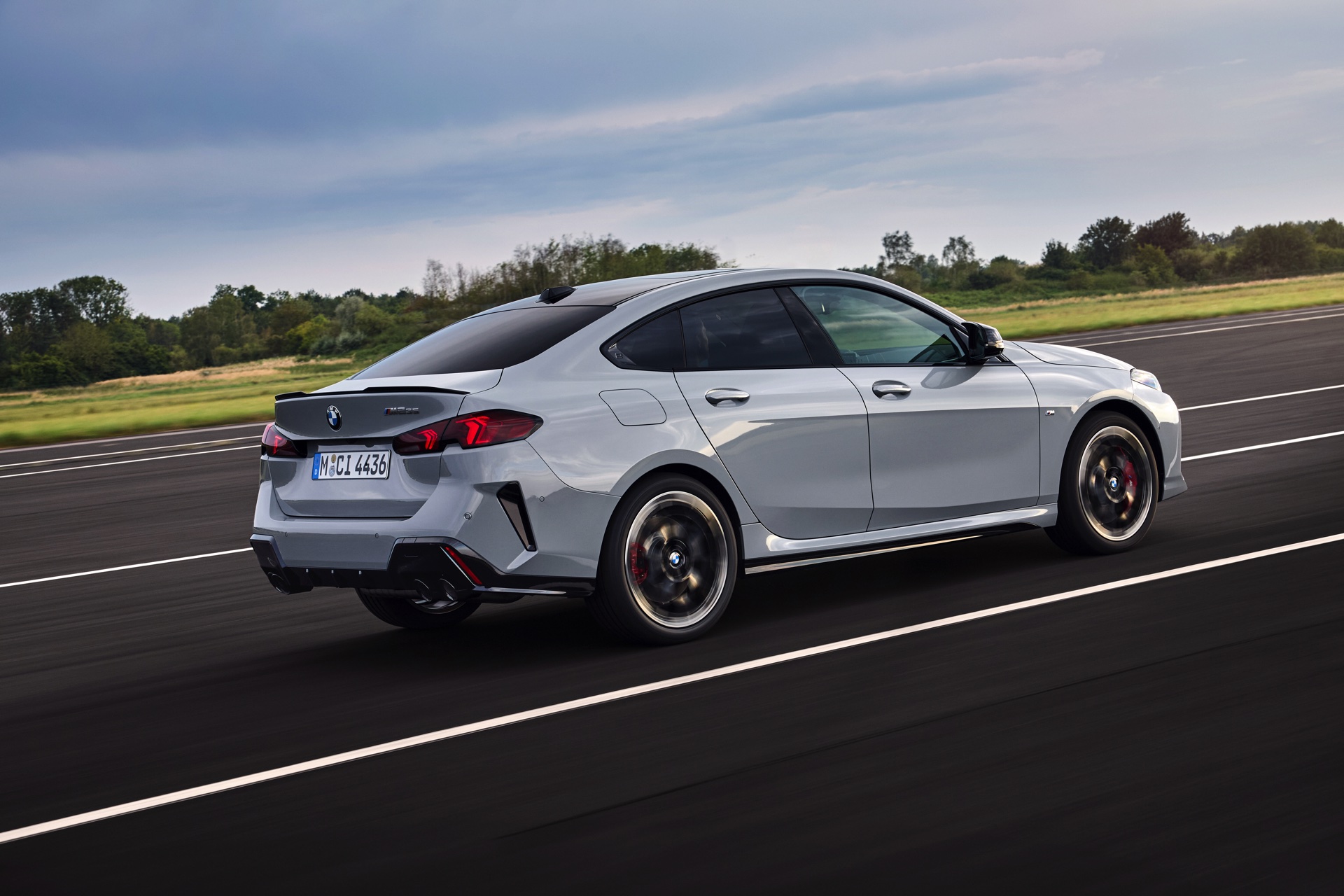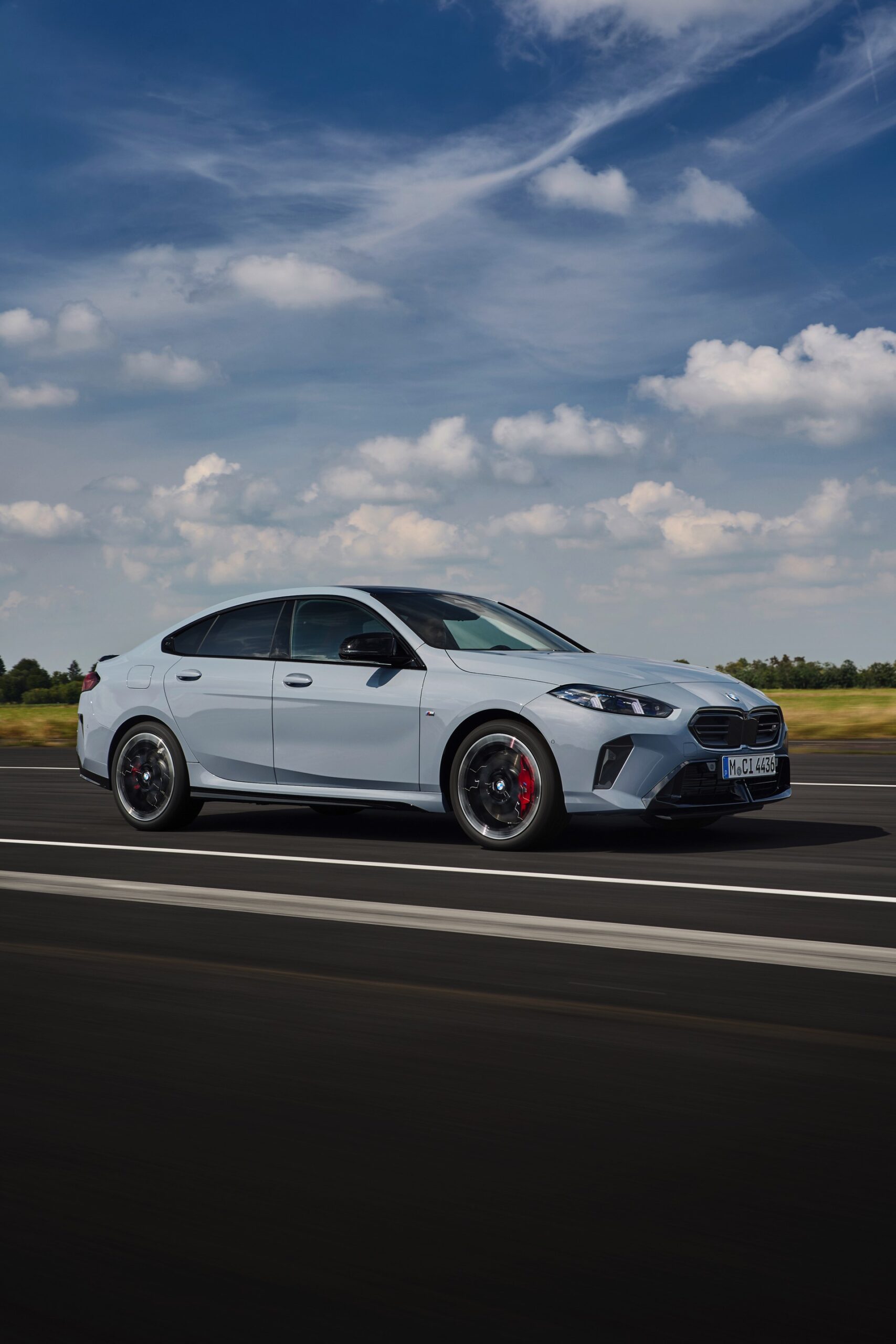 In den meisten Fällen verzichtet das 2er Gran Coupé künftig auf sichtbare Endrohre, nur das Topmodell M235 xDrive kommt mit gleich vier unübersehbaren Endrohren. Neben der exklusiven Abgasanlage trägt der M235 auch ein eigenständiges Nieren-Design mit horizontalen Streben, die schwächeren Varianten kommen mit der bisher nur von 1er und X3 bekannten Lösung mit einer Mischung aus senkrechten und diagonalen Stäben. Auch beim Antrieb geht der M235 einen Sonderweg, denn zum Marktstart im März 2025 wird er die einzige Allrad-Option sein – alle übrigen Varianten treiben ausschließlich die Vorderräder an.