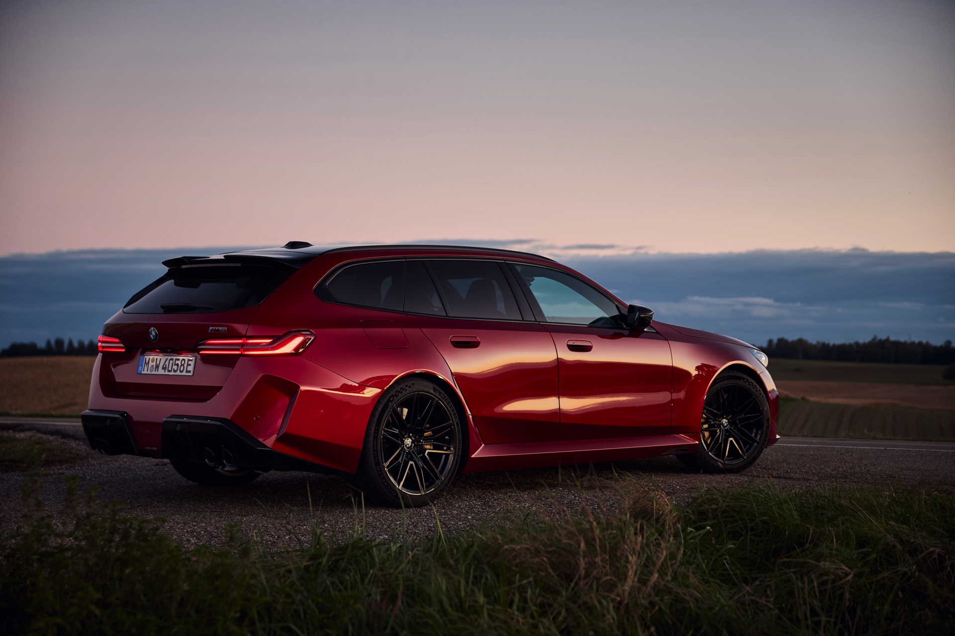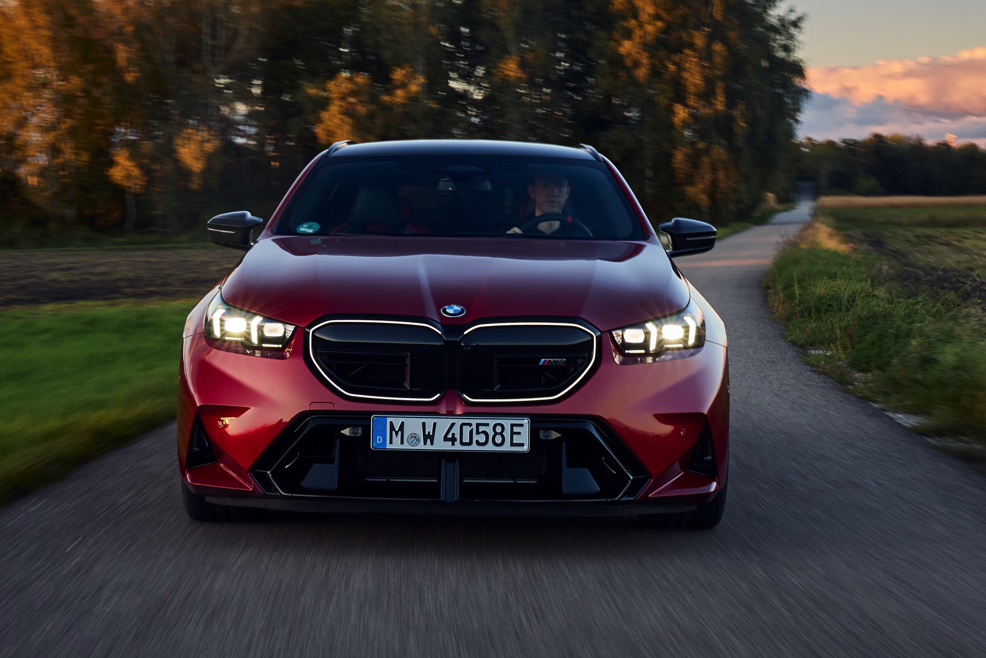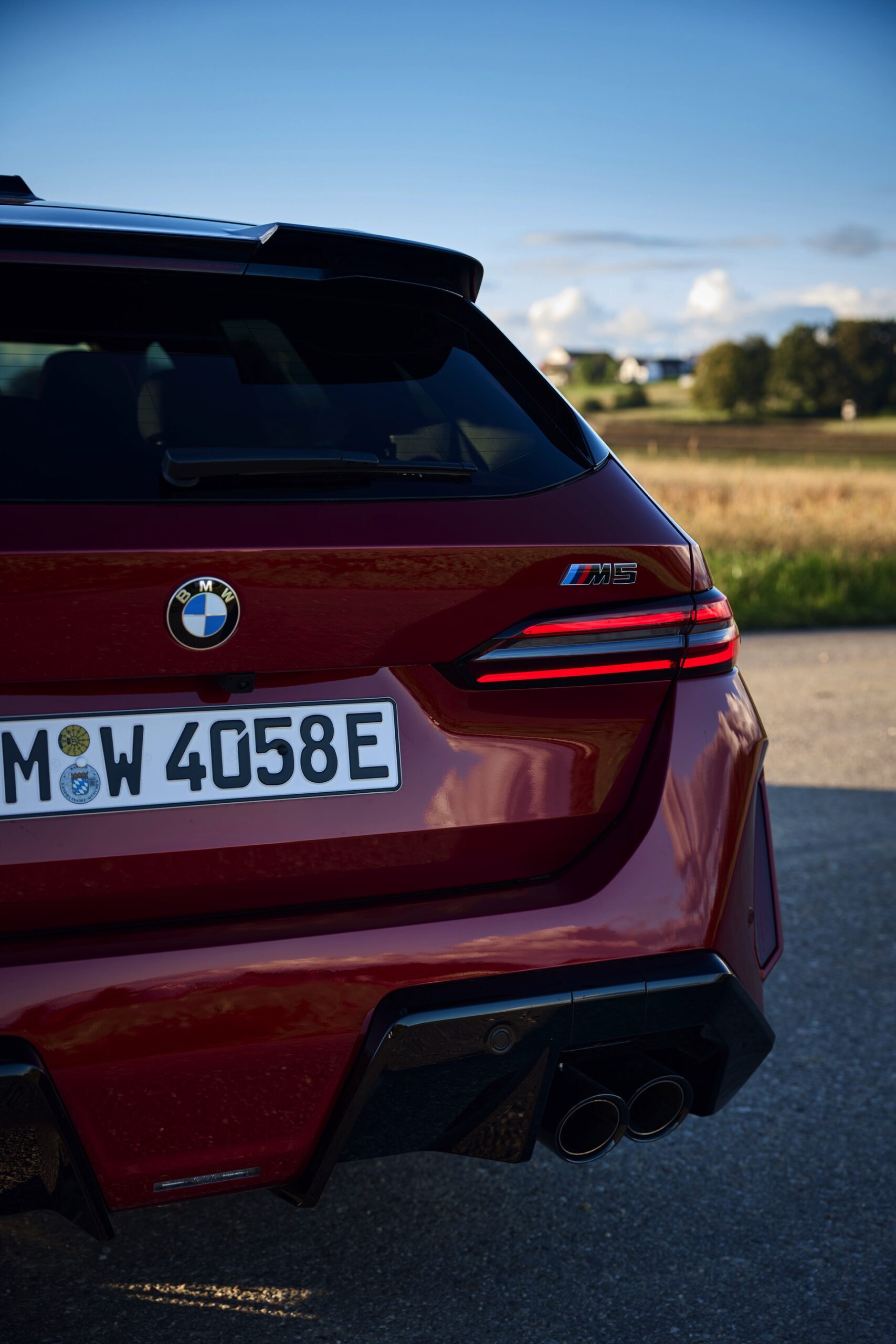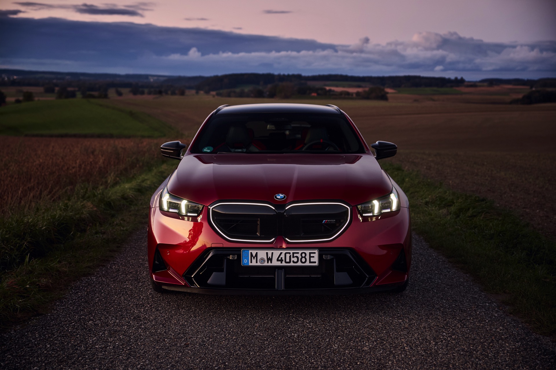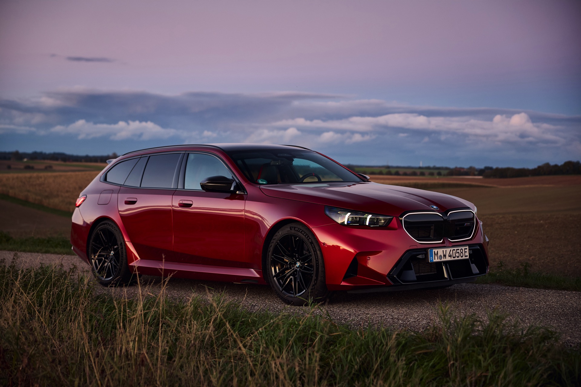 Intensives Fire Red macht den neuen BMW M5 Touring (G99) gerade im direkten Sonnenlicht zu einem Fahrzeug, an dem niemand vorbeischauen kann: Das erst vor kurzem in die BMW-Farbpalette aufgenommene Rot wirkt je nach Lichteinfall sehr unterschiedlich und kann mitunter fast in Richtung Bordeaux-Rot gehen, in der Sonne entfaltet es aber eine ganz besondere Kraft und sprüht geradezu vor Energie. Auf einer aktuellen Foto-Serie zum neuen Power-Kombi aus Garching wird die unterschiedliche Wirkung von Fire Red exemplarisch deutlich, denn wir sehen den G99 in verschiedenen Lichtstimmungen bis hin zur Dämmerung.
