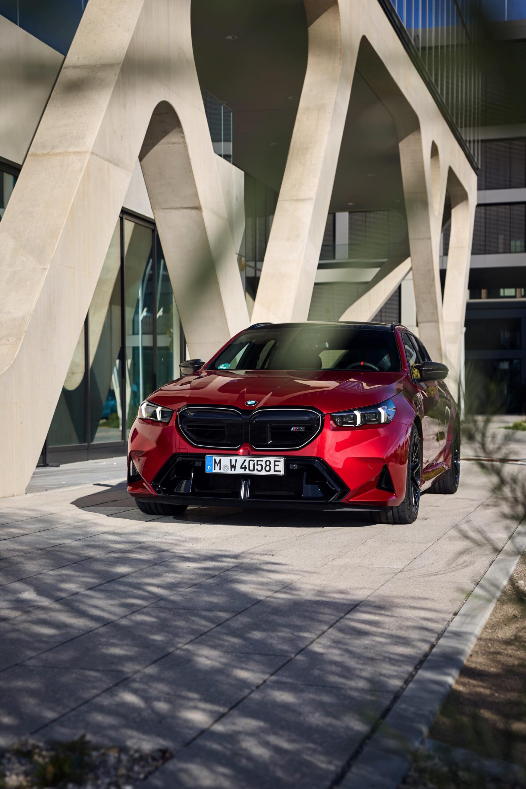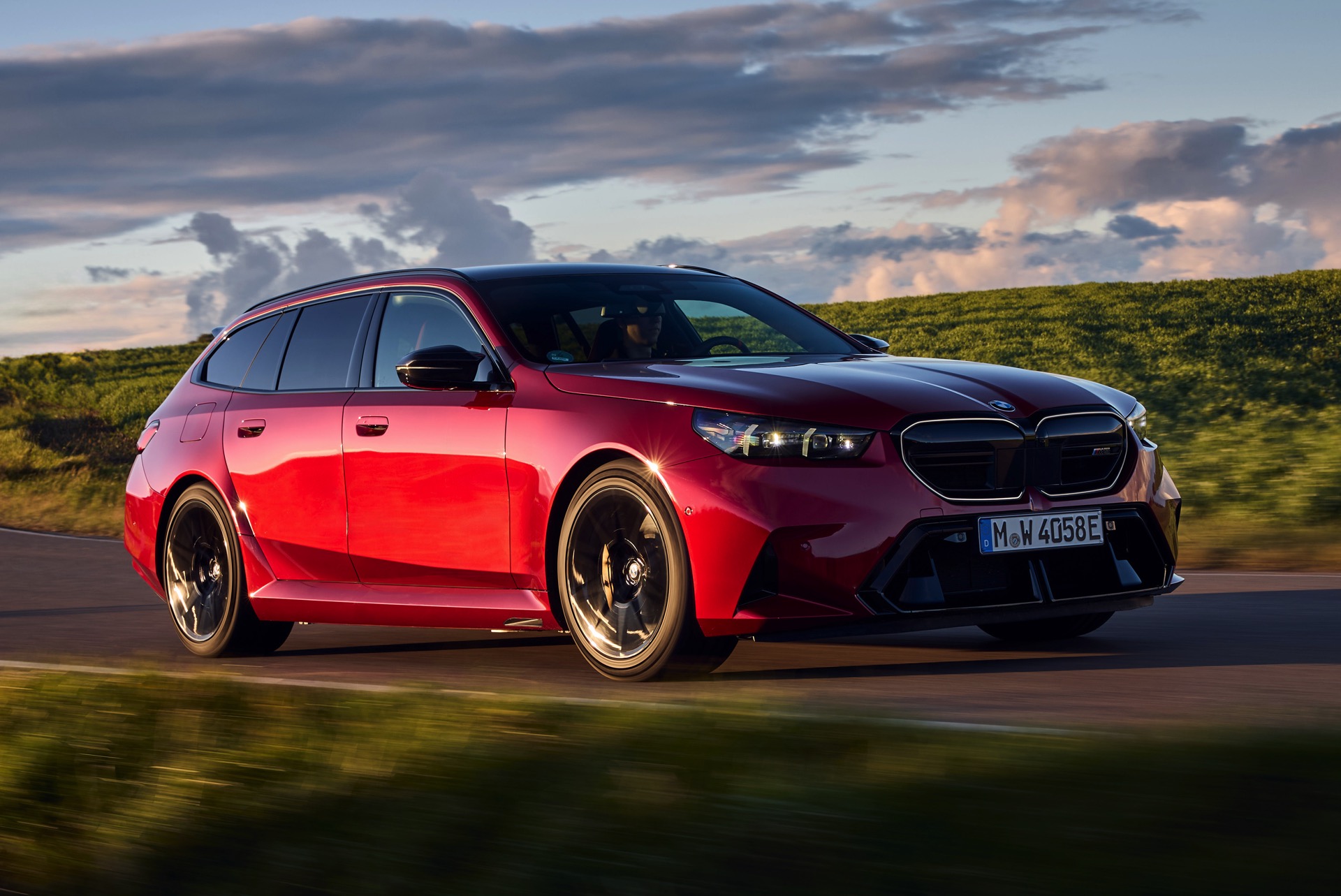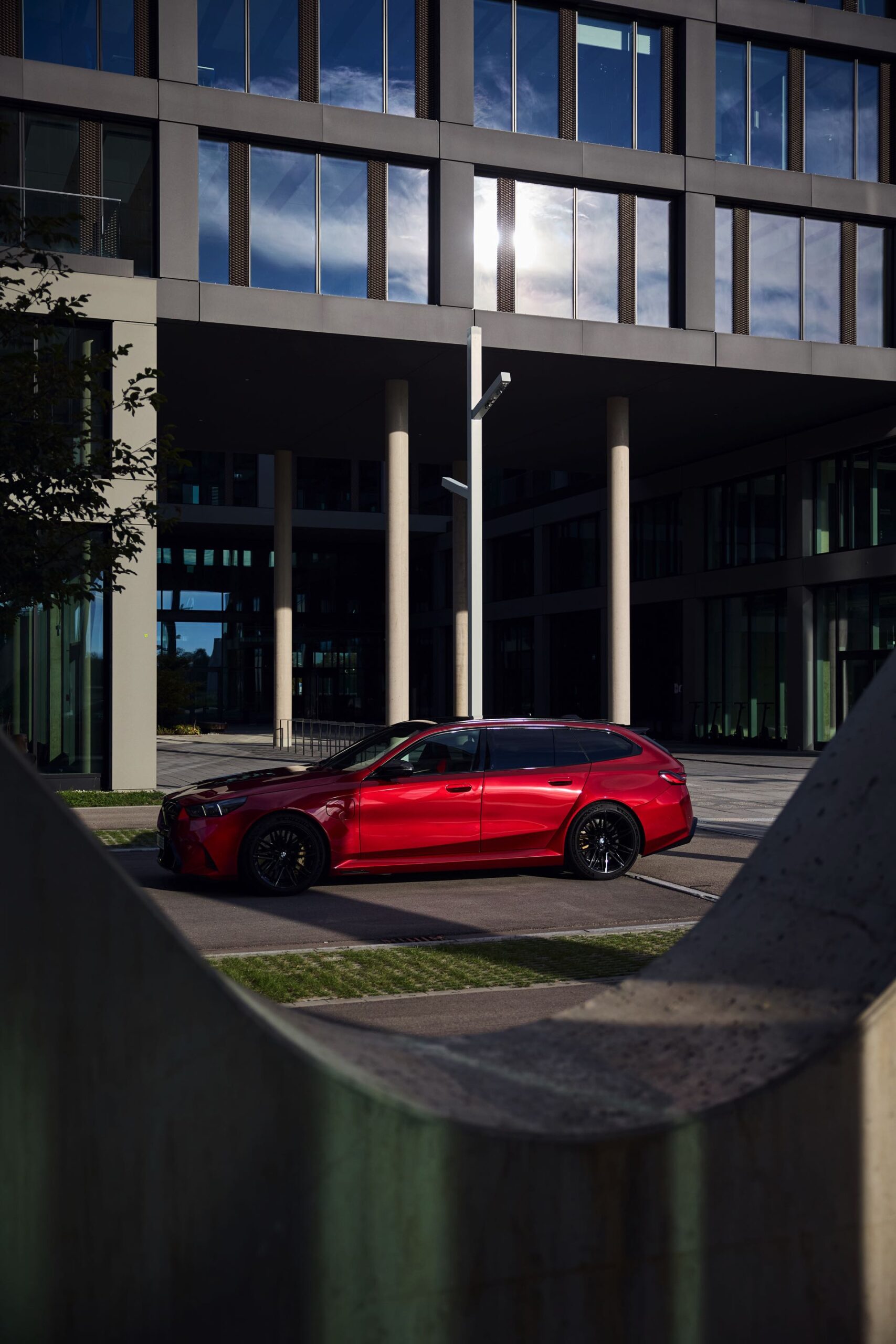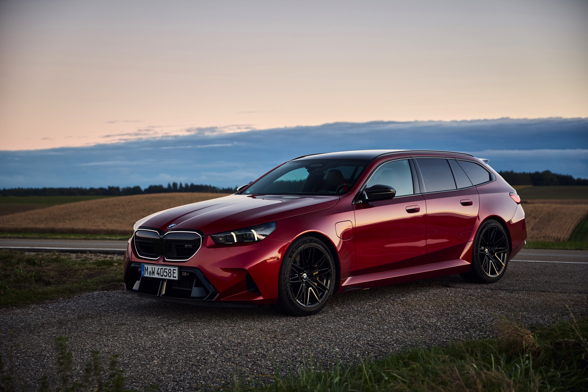 Intensives Fire Red macht den neuen BMW M5 Touring (G99) gerade im direkten Sonnenlicht zu einem Fahrzeug, an dem niemand vorbeischauen kann: Das erst vor kurzem in die BMW-Farbpalette aufgenommene Rot wirkt je nach Lichteinfall sehr unterschiedlich und kann mitunter fast in Richtung Bordeaux-Rot gehen, in der Sonne entfaltet es aber eine ganz besondere Kraft und sprüht geradezu vor Energie. Auf einer aktuellen Foto-Serie zum neuen Power-Kombi aus Garching wird die unterschiedliche Wirkung von Fire Red exemplarisch deutlich, denn wir sehen den G99 in verschiedenen Lichtstimmungen bis hin zur Dämmerung.