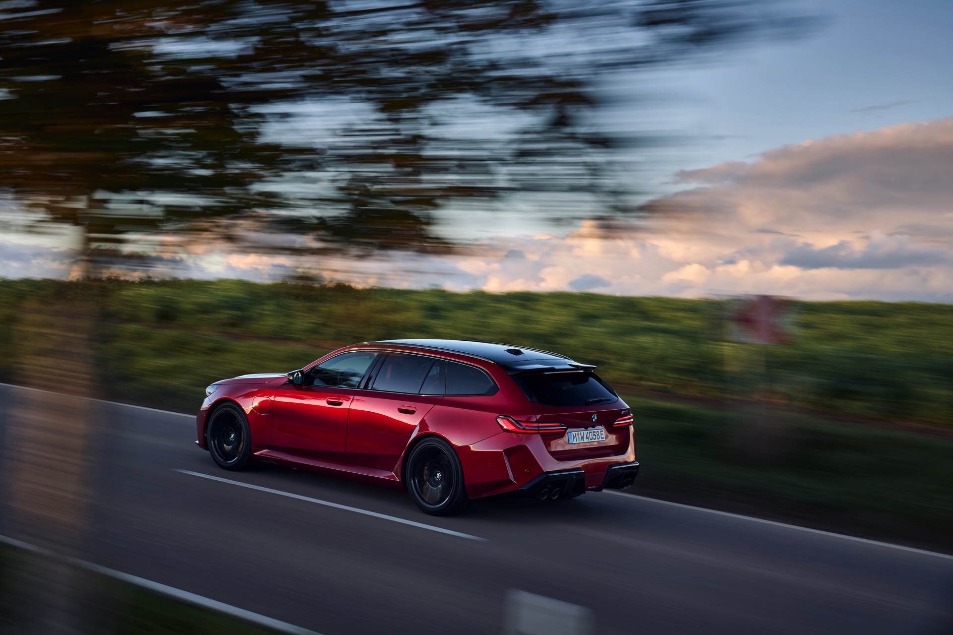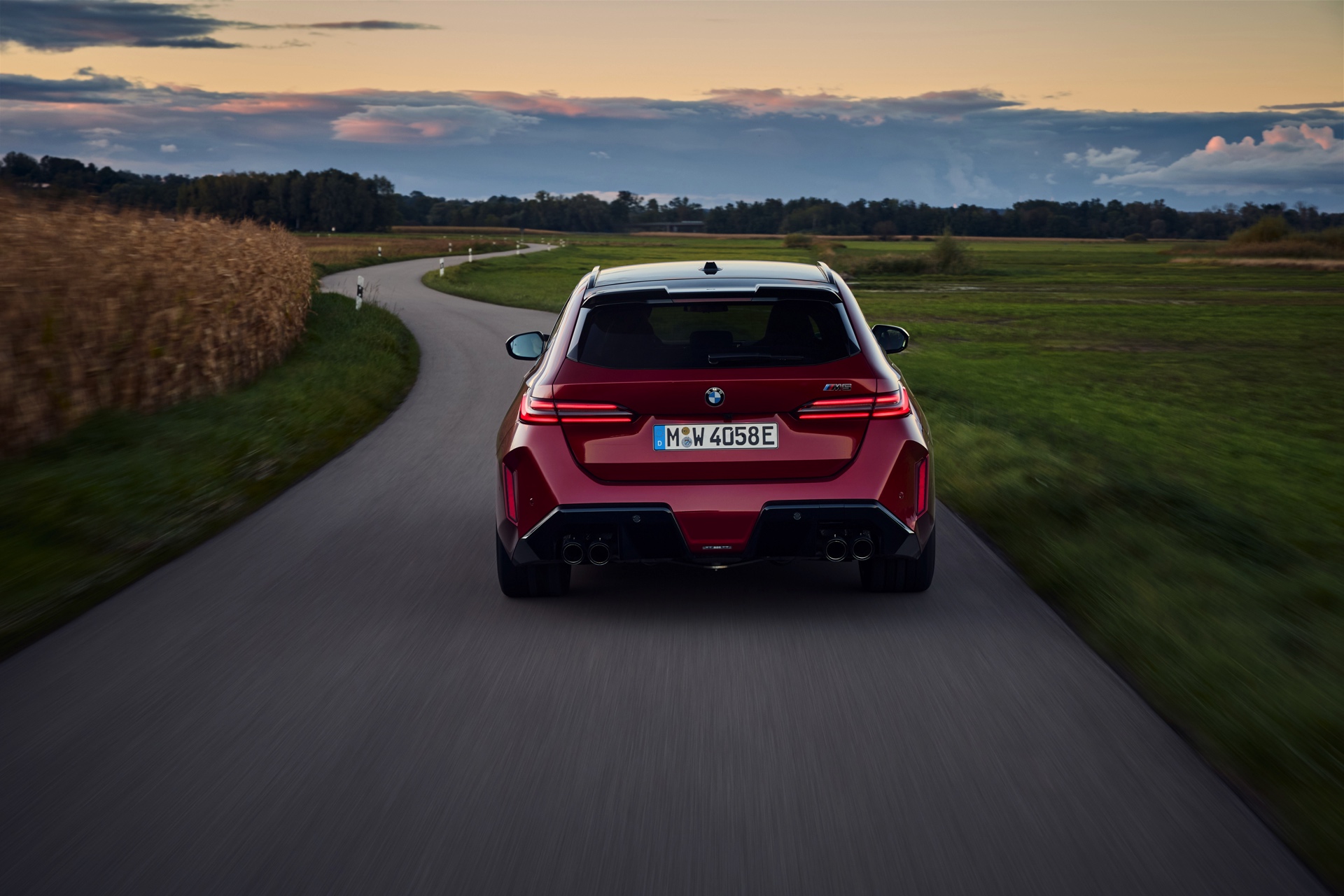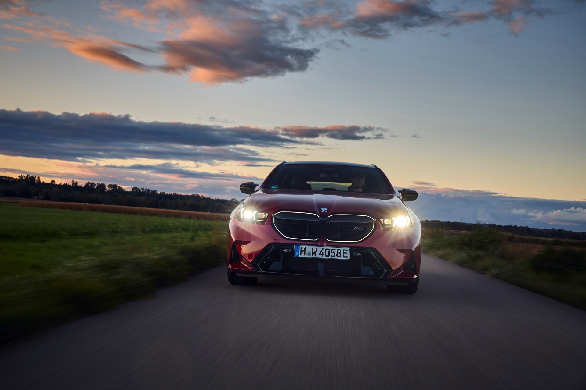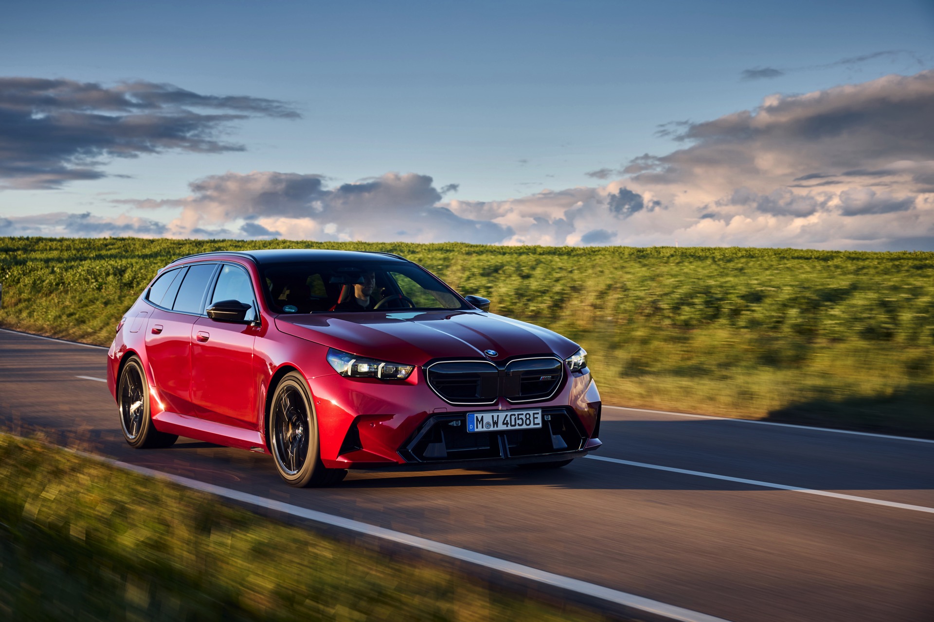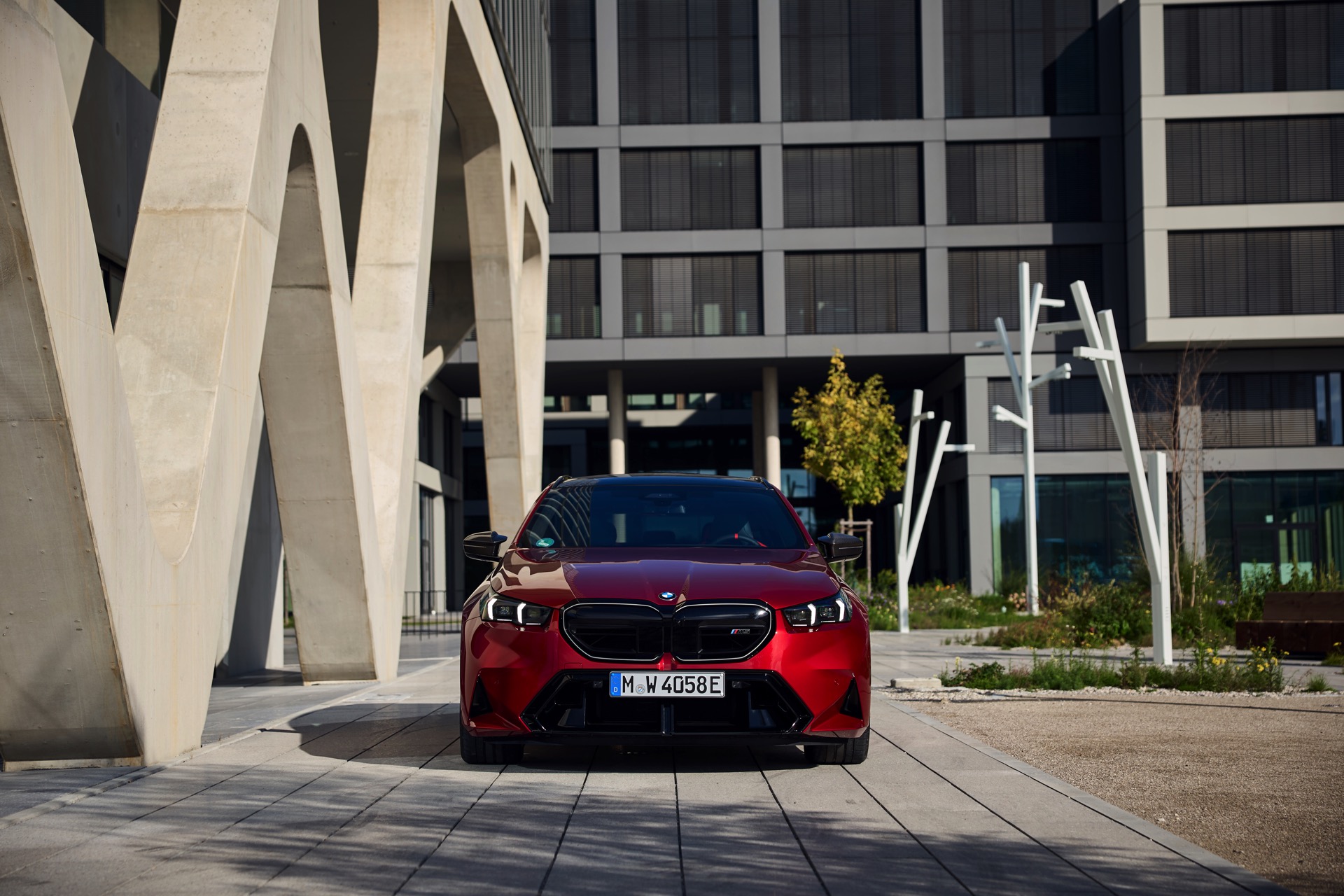 Intensives Fire Red macht den neuen BMW M5 Touring (G99) gerade im direkten Sonnenlicht zu einem Fahrzeug, an dem niemand vorbeischauen kann: Das erst vor kurzem in die BMW-Farbpalette aufgenommene Rot wirkt je nach Lichteinfall sehr unterschiedlich und kann mitunter fast in Richtung Bordeaux-Rot gehen, in der Sonne entfaltet es aber eine ganz besondere Kraft und sprüht geradezu vor Energie. Auf einer aktuellen Foto-Serie zum neuen Power-Kombi aus Garching wird die unterschiedliche Wirkung von Fire Red exemplarisch deutlich, denn wir sehen den G99 in verschiedenen Lichtstimmungen bis hin zur Dämmerung.