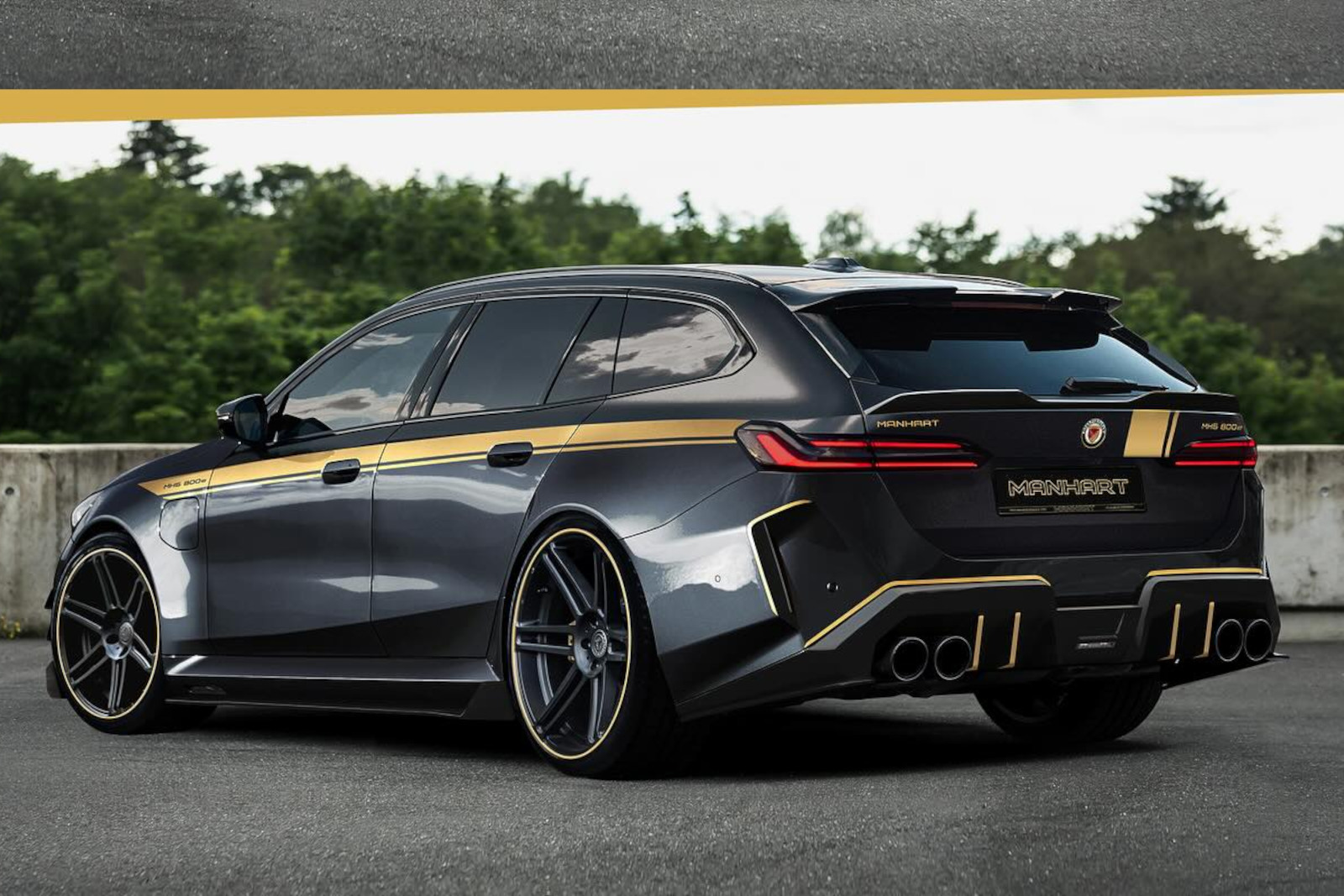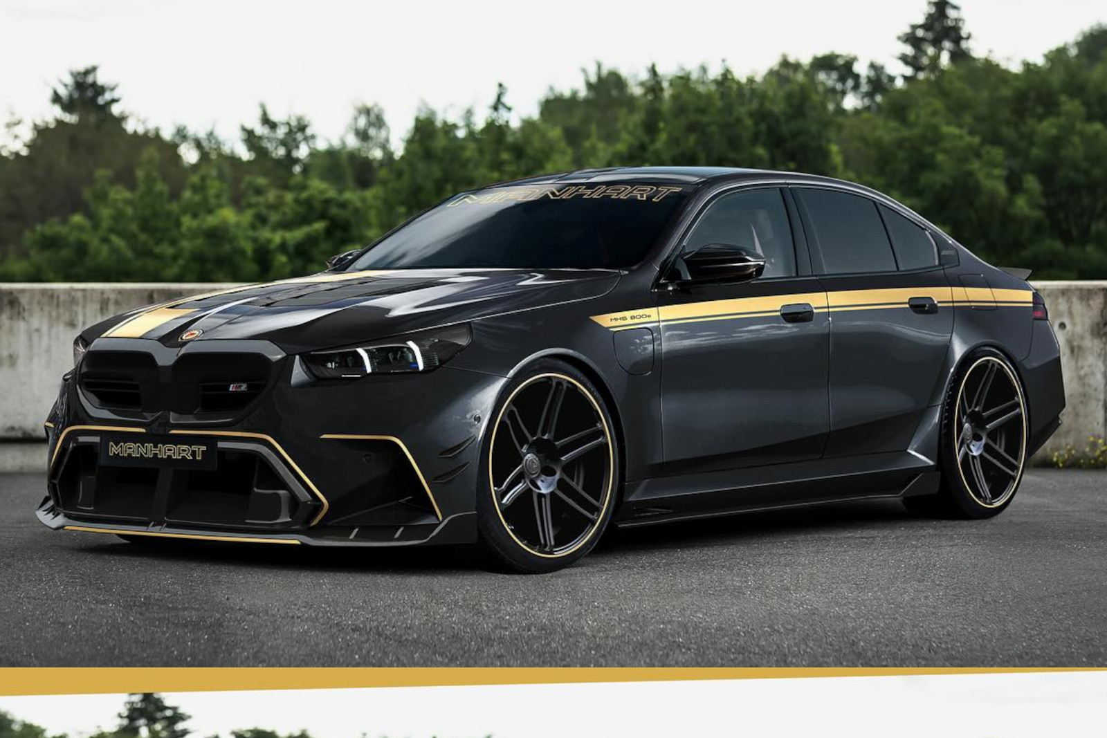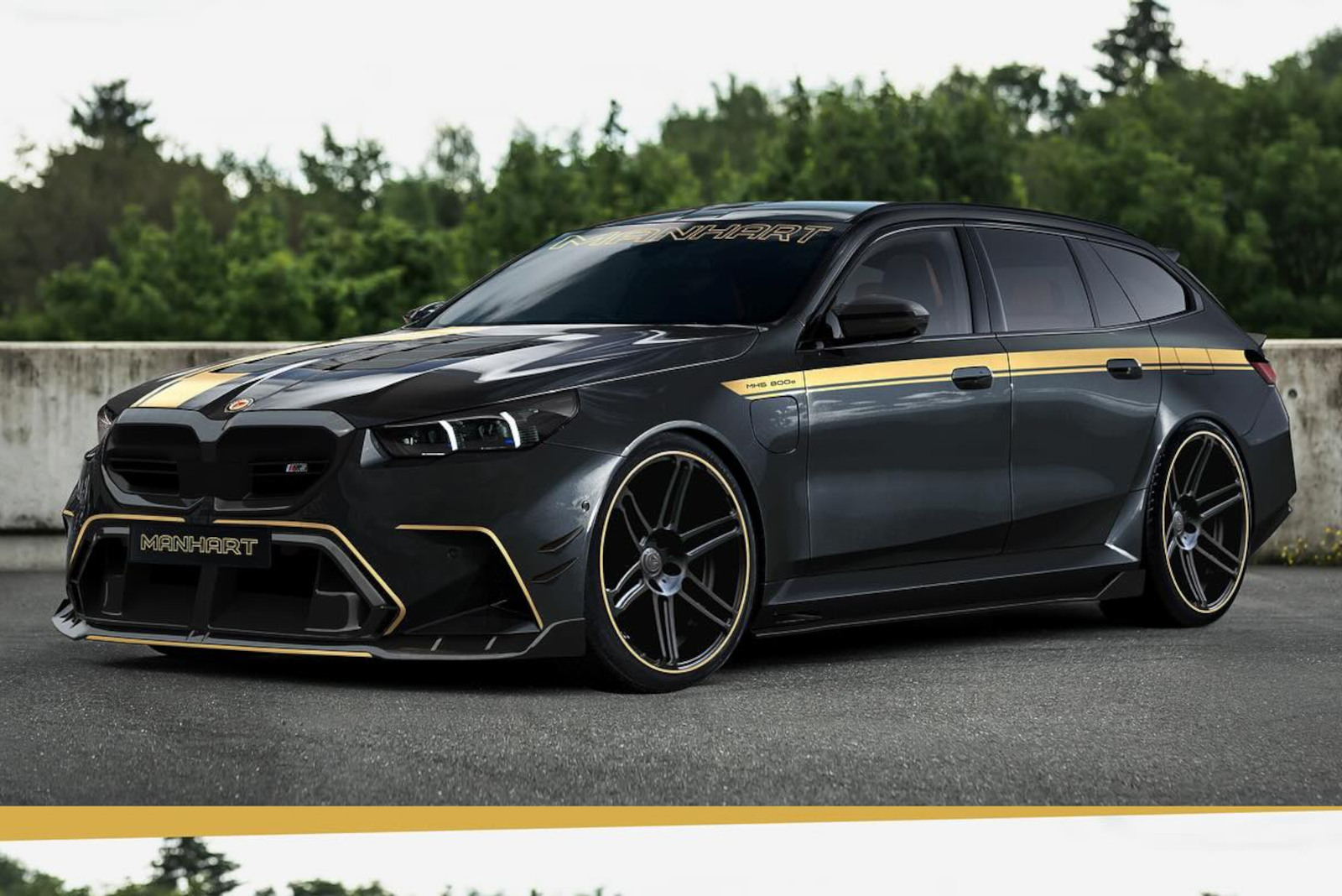 Wie der neue BMW M5 (G90, G99) im Manhart-Dress aussehen könnte, zeigen uns mehrere Photoshop-Entwürfe der Wuppertaler: Wie üblich präsentieren sich die Tuning-M5 in klassischem Schwarz, während goldene Akzente für einen besonderen Auftritt sorgen. Große Felgen im Concave One-Design werden mit diversen Aerodynamik-Komponenten kombiniert, die eine noch etwas schärfere Alternative zu den M Performance Parts für G90 & G99 darstellen könnten.