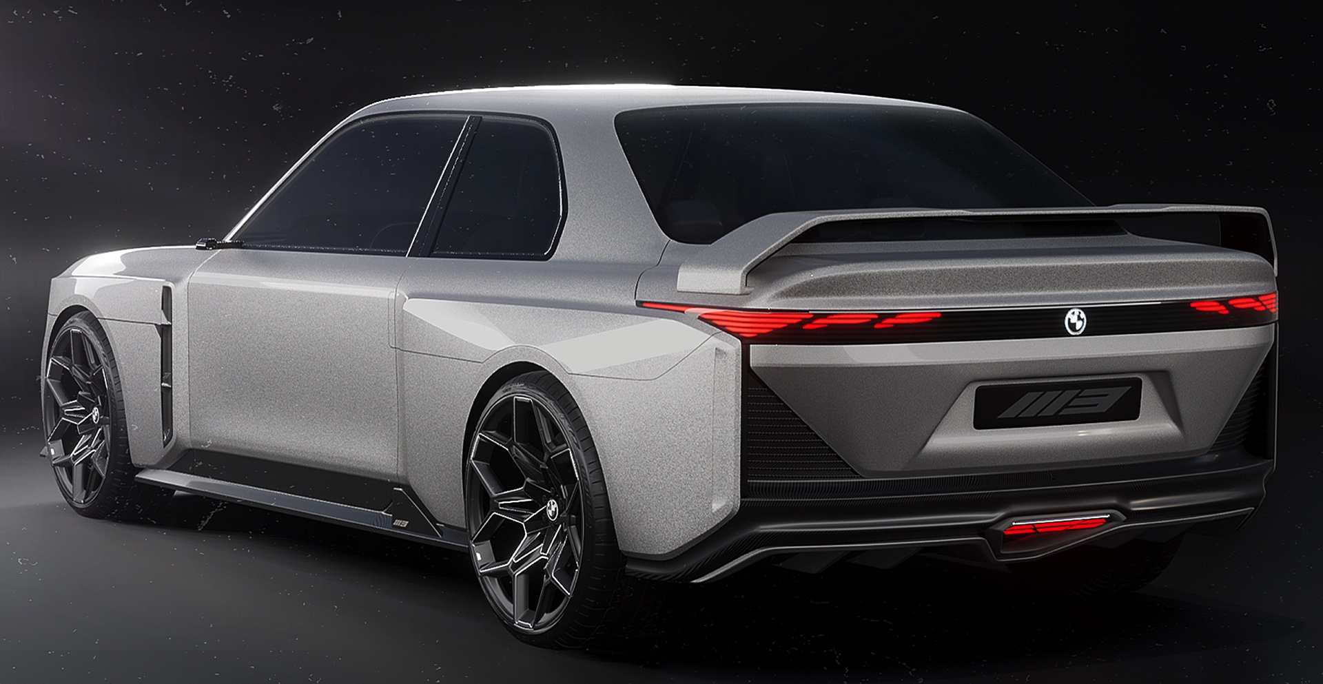Der große Lufteinlass vorn und die verglichen mit dem historischen Vorbild riesigen Felgen deuten an, dass der Retro-M3 von Ihn Lee über moderne Technik verfügen würde. Dass damit nicht unbedingt ein starker Verbrenner gemeint sein muss, zeigt sich am Heck: Der Koreaner konnte der Versuchung einer wuchtigen Abgasanlage mit den heute üblichen vier Endrohren widerstehen, stattdessen sehen wir einen angedeuteten Diffusor-Einsatz und keinen noch so dezenten Hinweis auf einen Vier- oder Sechszylinder an Bord.