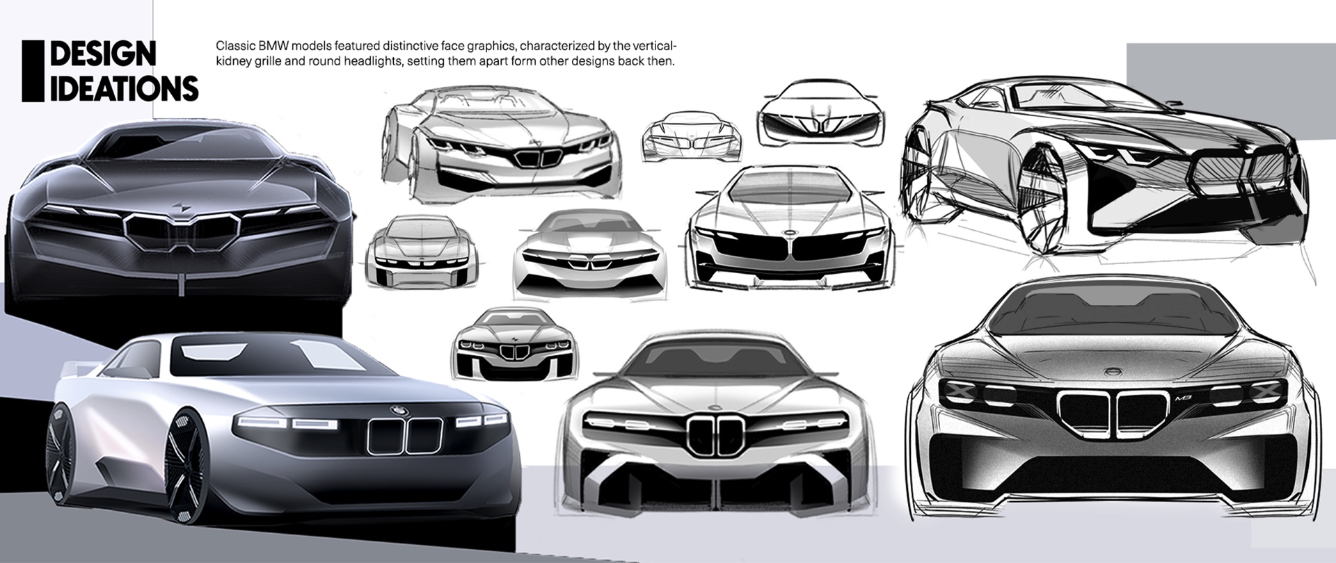 Damit schlägt der Entwurf auch die Brücke zur Neuen Klasse, die ab Ende 2025 zur Basis für eine Vielzahl neuer Modelle werden soll. Schon jetzt scheint klar, dass E30-Features wie das durchgehend schwarz gehaltene Band als Einfassung für Scheinwerfer und Nieren mit dem BMW i3 (NA0) ein Comeback feiern werden – und auch die im Vergleich zu anderen heutigen Modellen sehr klein gehaltenen Nieren haben wir an der offiziellen Vorschau auf den BMW iX3 (NA5) bereits wiedergesehen.