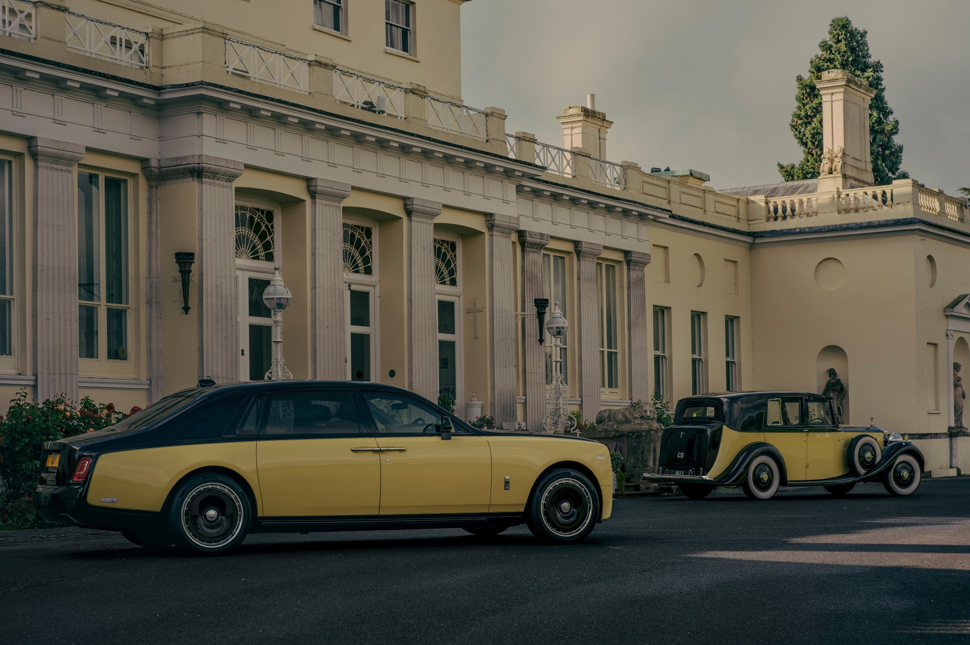 Einige weitere Blicke hinter die Kulissen liefern Fotos, die das Unikat aus dem Jahr 2024 Seite an Seite mit dem 1937 gebauten Rolls-Royce Phantom Sedanca de Ville von Auric Goldfinger zeigen: