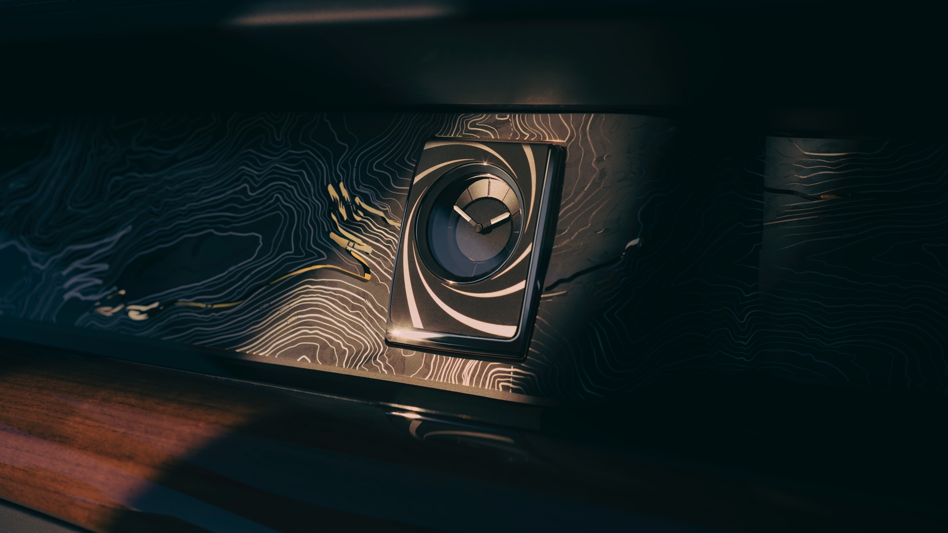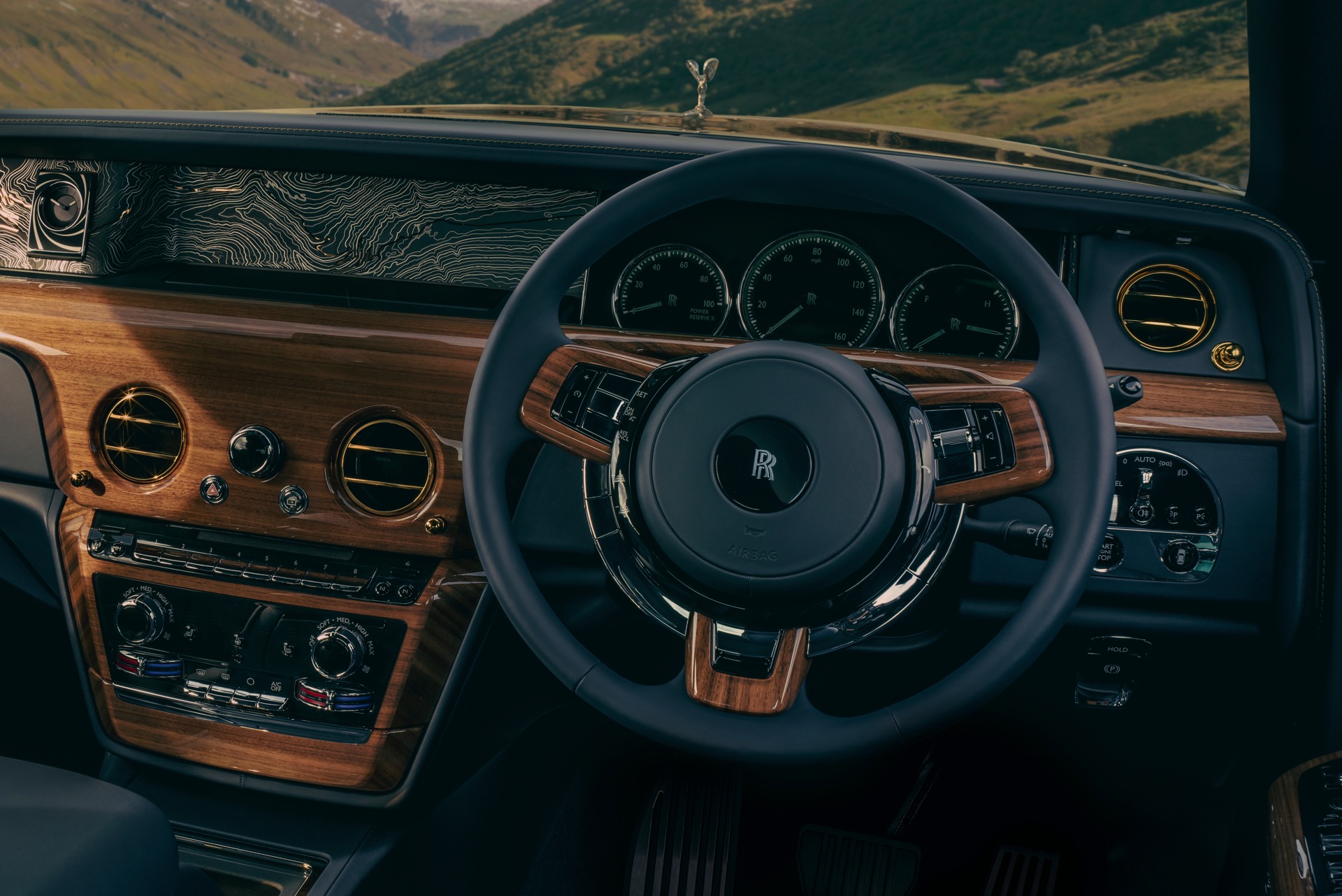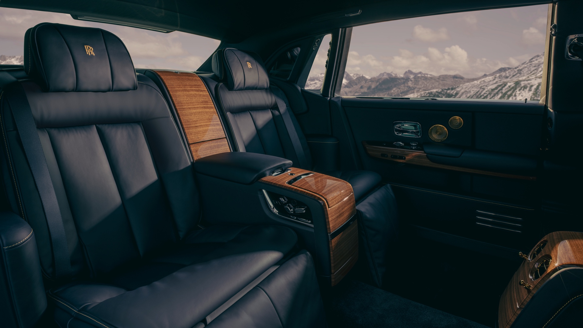 Im Innenraum des Rolls-Royce Phantom Goldfinger finden sich außerdem zahlreiche weitere goldene Details, darunter die Lüftungsdüsen und Lautsprecher-Abdeckungen ebenso wie Teile der Interieurleisten und die an einen Goldbarren erinnernden Einstiegsleisten. In der Mittelkonsole wurde als Krönung ein 18 Karat-Goldstück integriert, dessen Form an die Silhouette eines Rolls-Royce angelehnt ist.