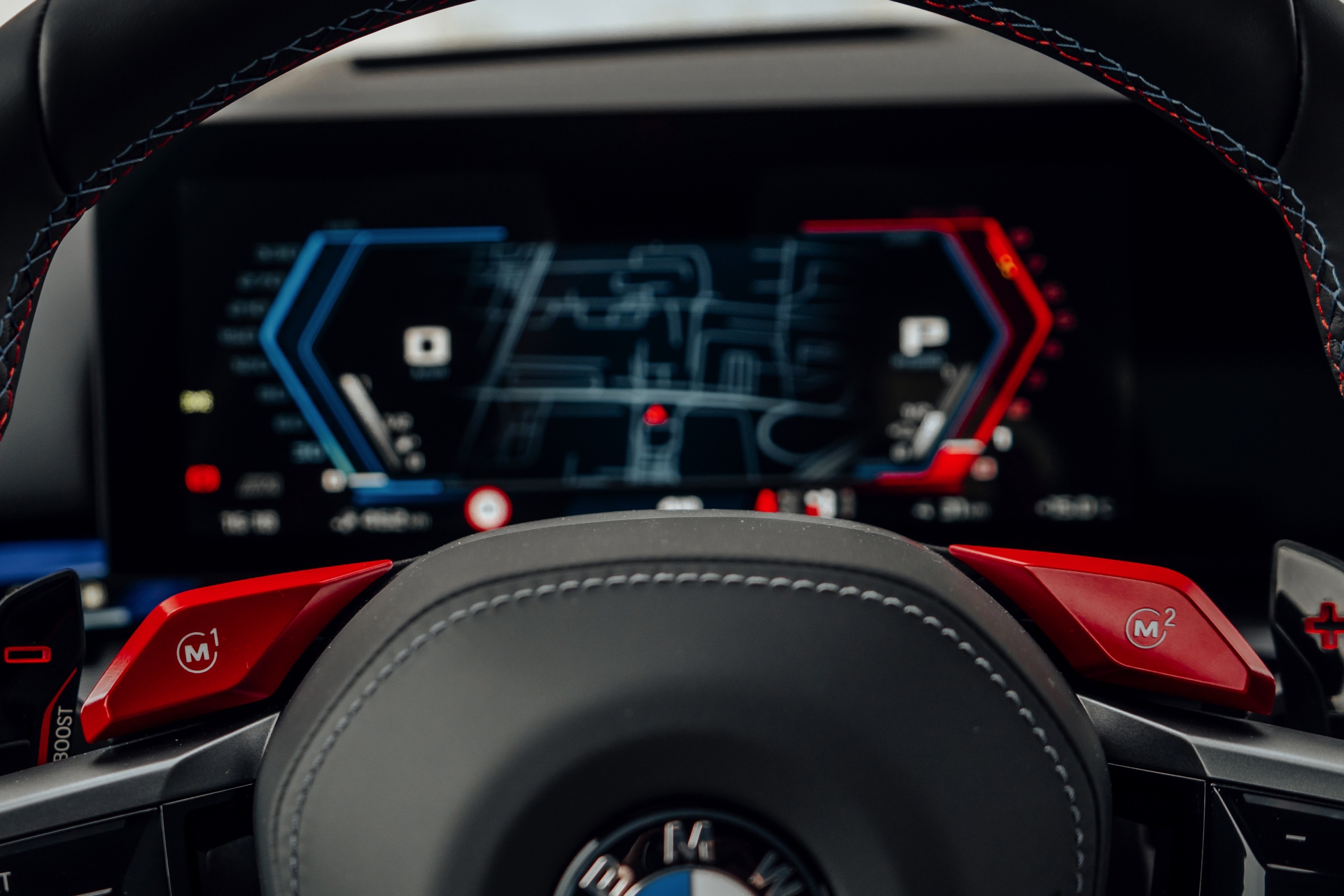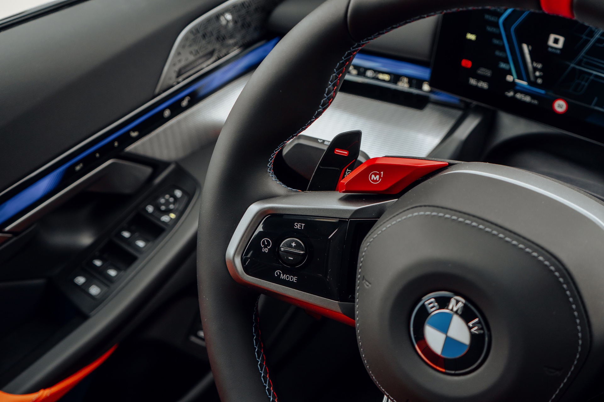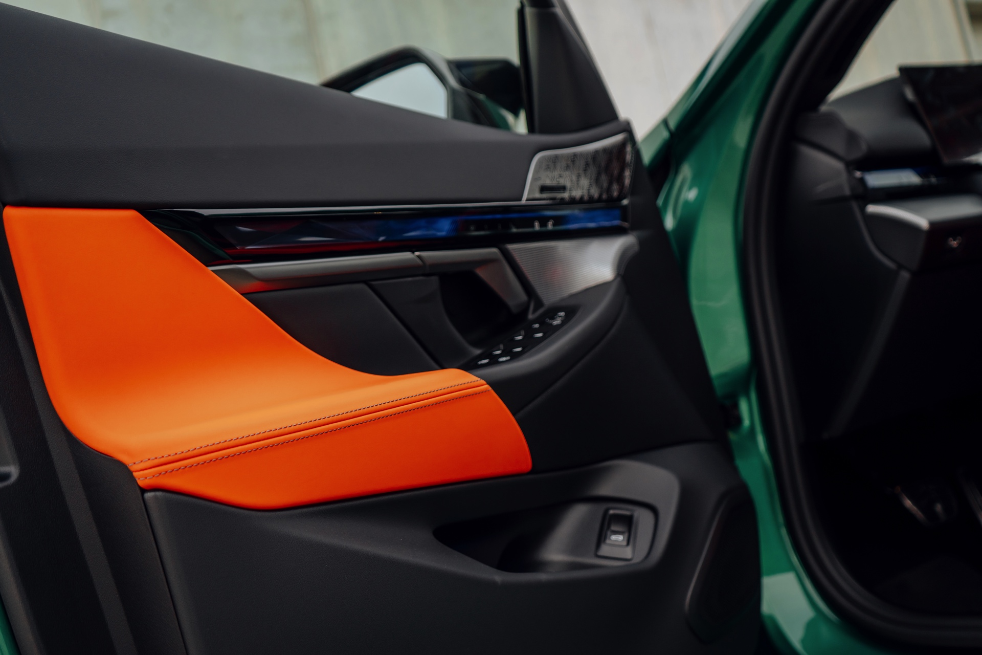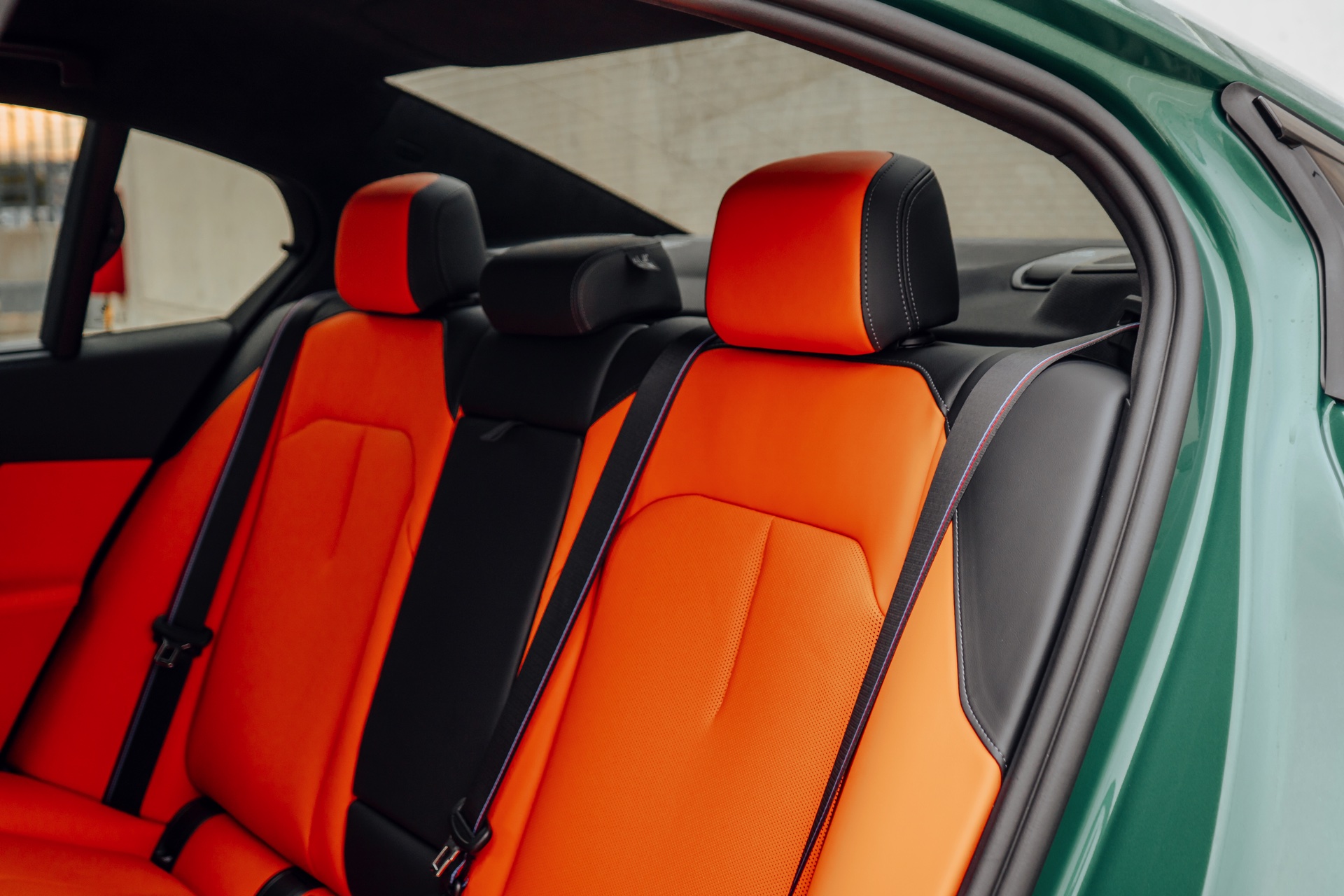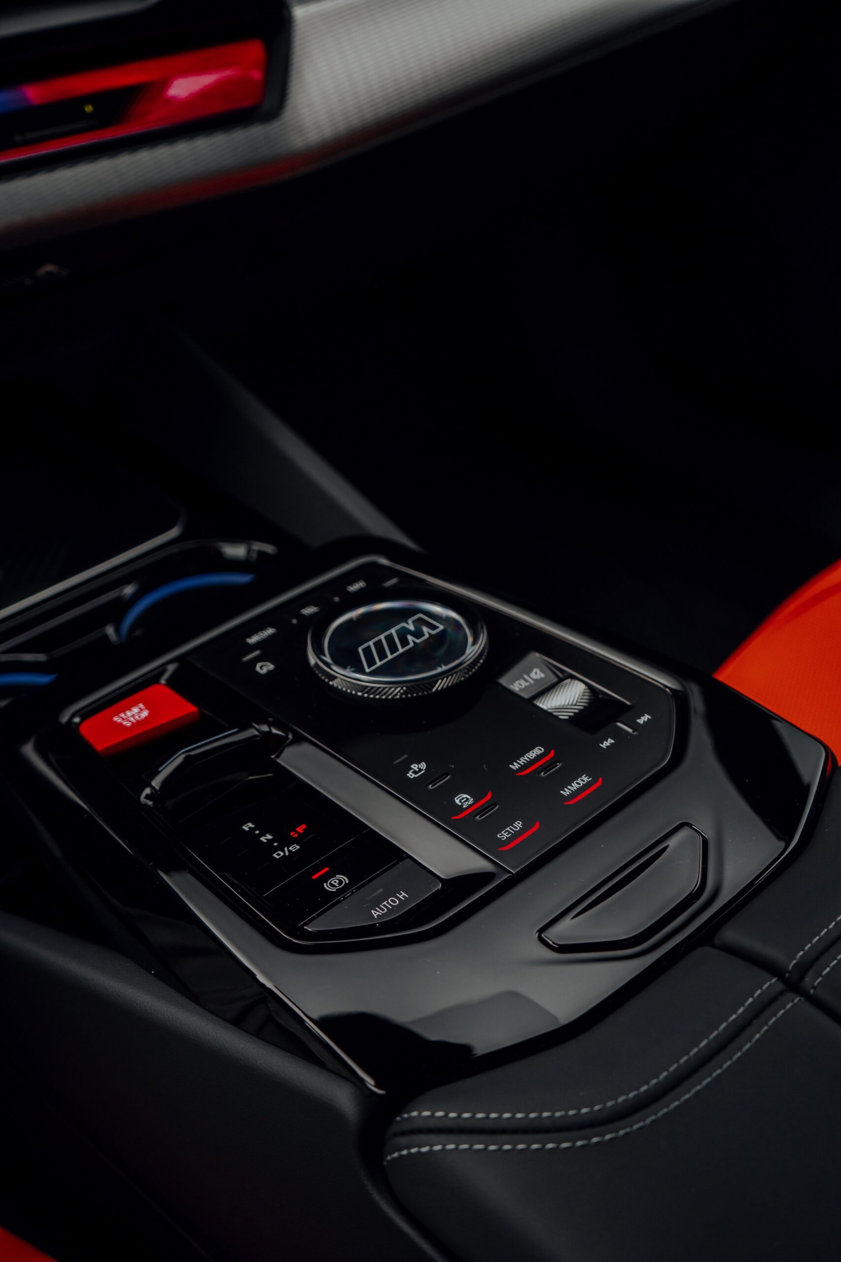 Der Blick in den Innenraum des slowakischen BMW M5 lohnt sich nicht nur aufgrund der Bicolor-Lederausstattung in Kyalami Orange und Schwarz, sondern auch aufgrund der Interieurleisten: Während die meisten bisher abgelichteten M5 die betont-sportliche Variante ‘Carbon Fibre’ getragen haben, sehen wir hier die serienmäßigen Leisten Aluminium Rhombicle mit M Akzent Dunkelsilber: