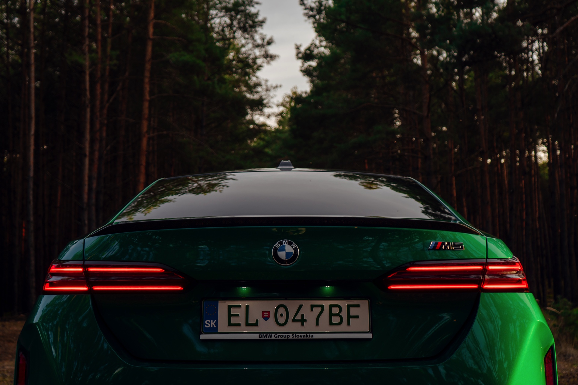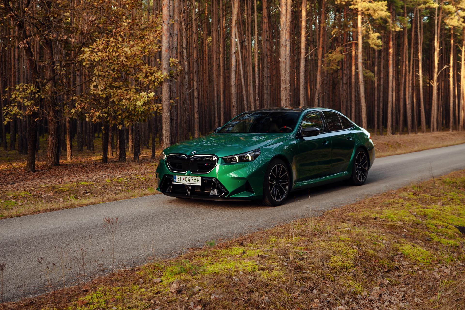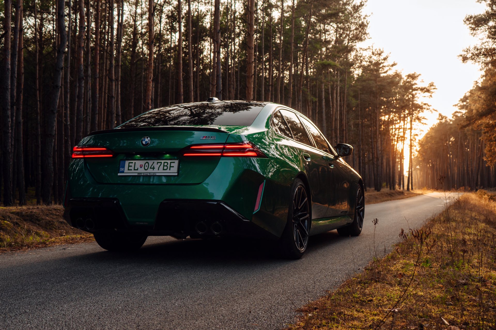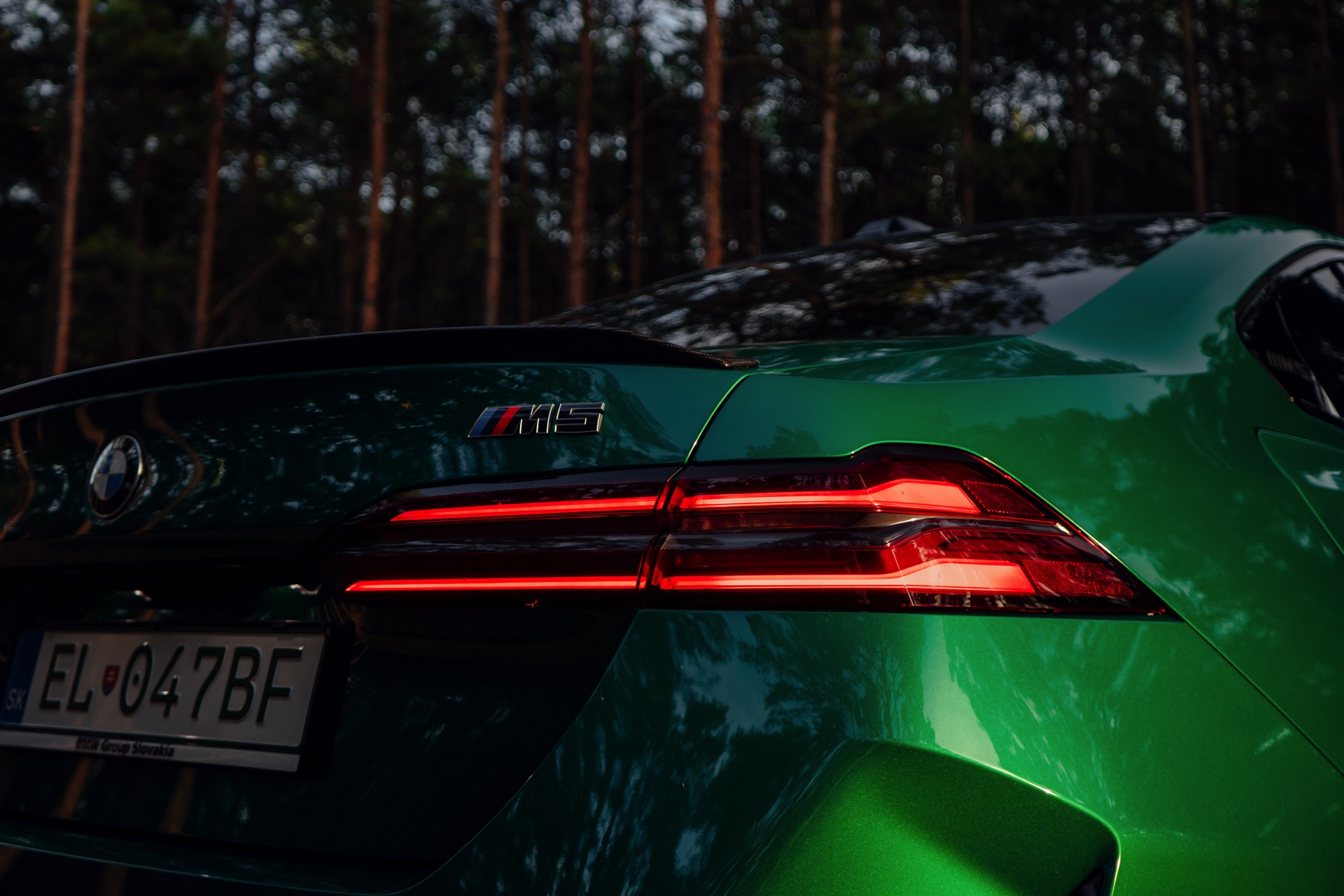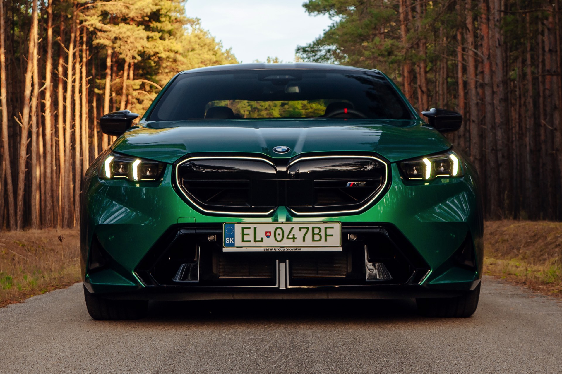Noch leichter wird die Erkennung des neuen BMW M5, wenn sich der Kunde für eine etwas auffälligere Farbe entschieden hat: Aktuelle Fotos aus der Slowakei zeigen uns den G90 in Isle of Man Green – und auch wenn das intensive Grün zum regulären Farbprogramm für den M5 zählt, ist die Lackierung ohne Frage ein echter Hingucker. Beim gezeigten M5 sehen wir außerdem das optionale Carbon-Dach, das in der Mitte über eine leichte Vertiefung verfügt und sich auch damit vom Look des serienmäßig verbauten Panorama-Glasdachs mit schwarzer Einfassung abgrenzt.
