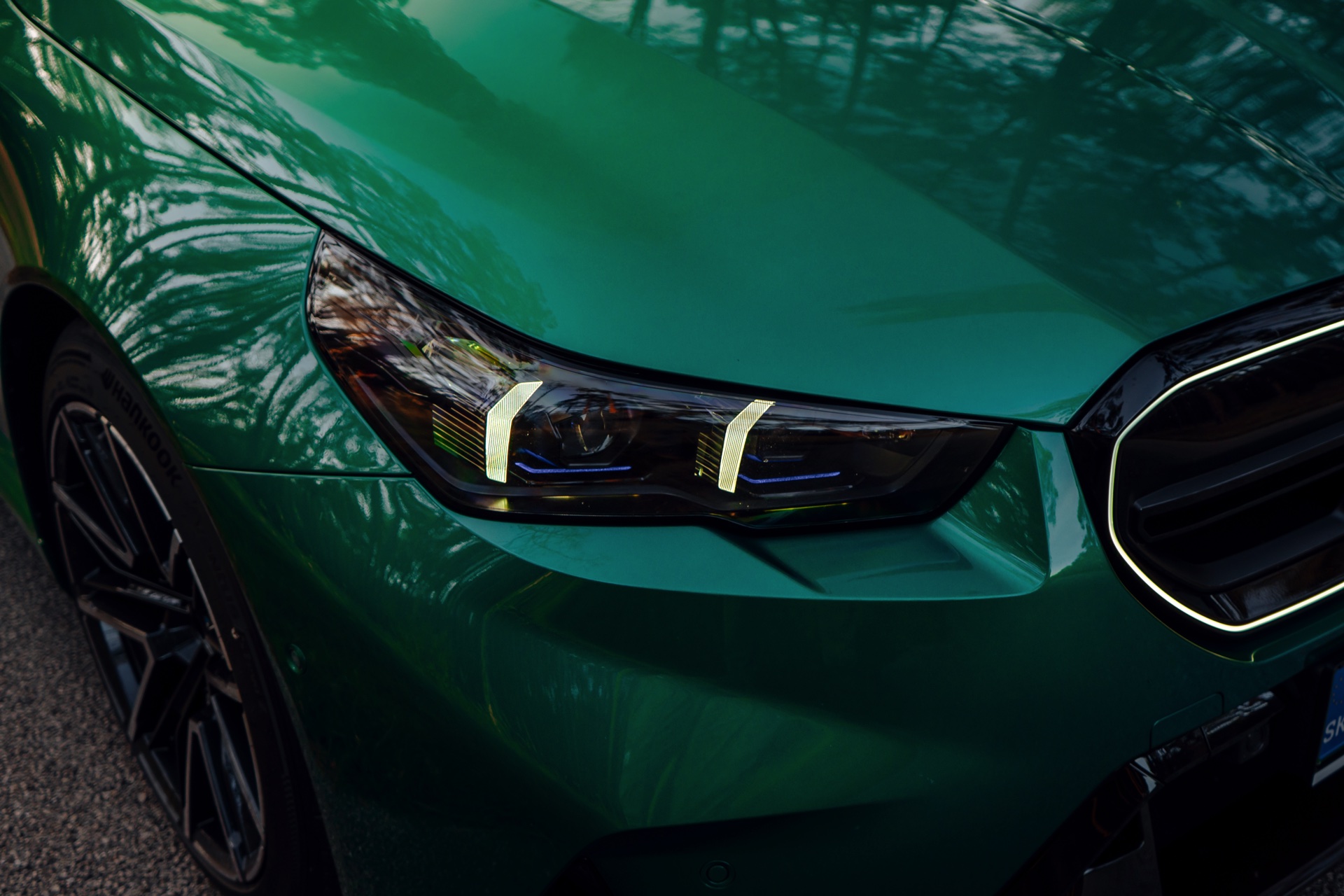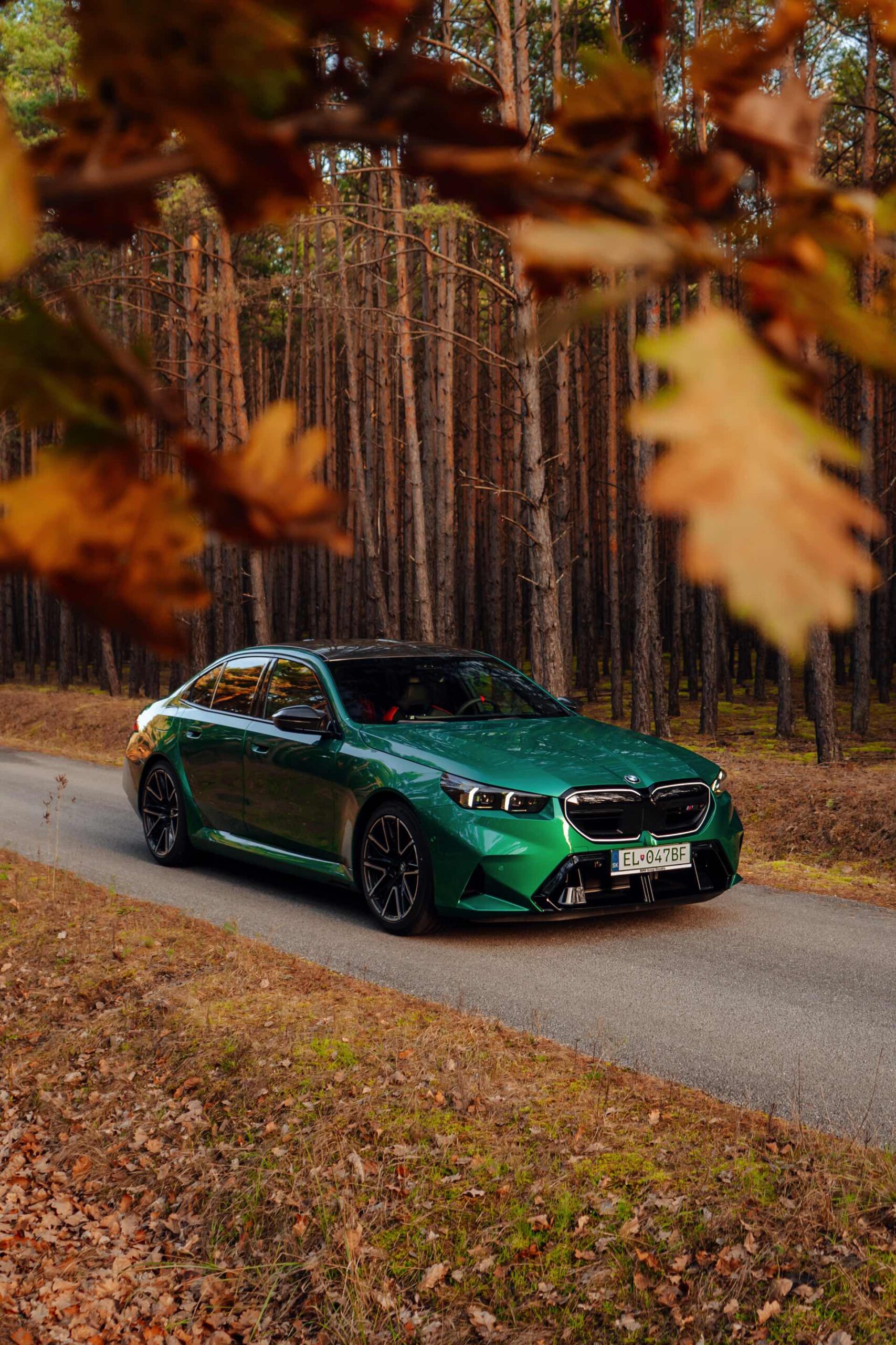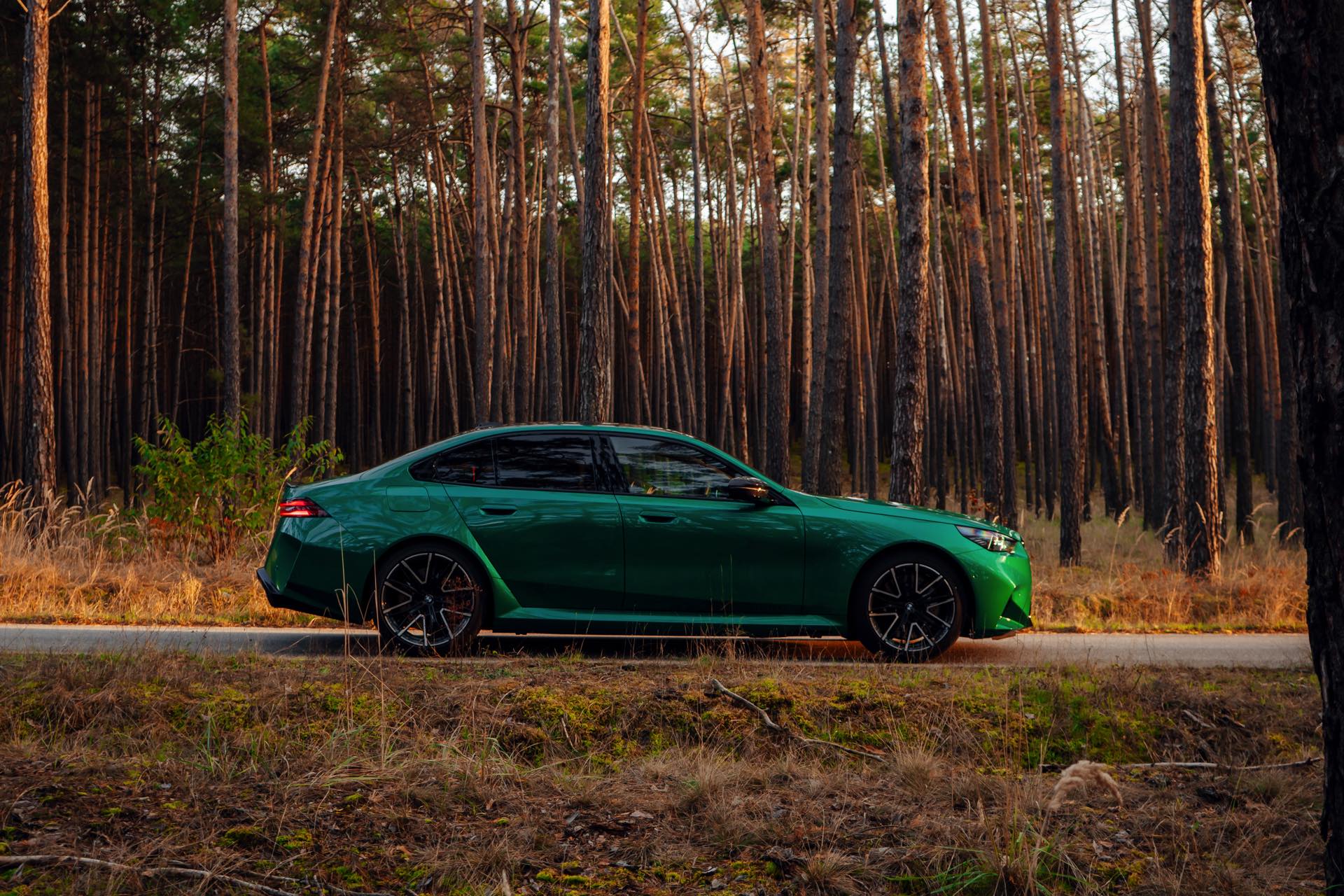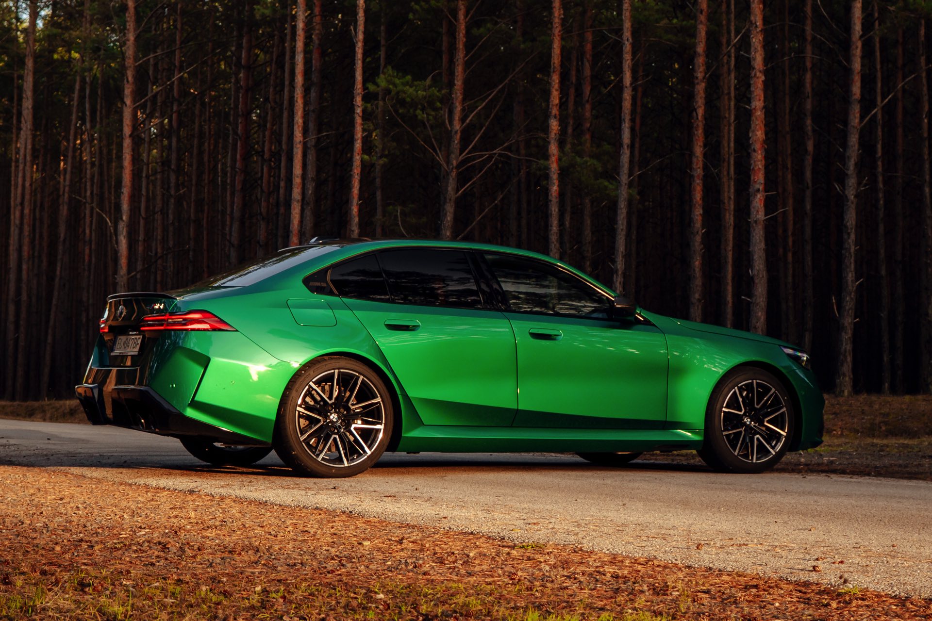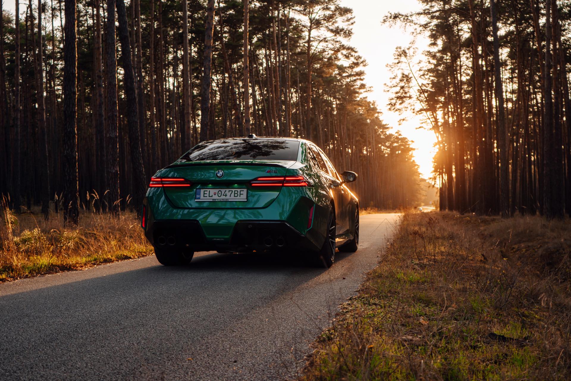 Noch leichter wird die Erkennung des neuen BMW M5, wenn sich der Kunde für eine etwas auffälligere Farbe entschieden hat: Aktuelle Fotos aus der Slowakei zeigen uns den G90 in Isle of Man Green – und auch wenn das intensive Grün zum regulären Farbprogramm für den M5 zählt, ist die Lackierung ohne Frage ein echter Hingucker. Beim gezeigten M5 sehen wir außerdem das optionale Carbon-Dach, das in der Mitte über eine leichte Vertiefung verfügt und sich auch damit vom Look des serienmäßig verbauten Panorama-Glasdachs mit schwarzer Einfassung abgrenzt.