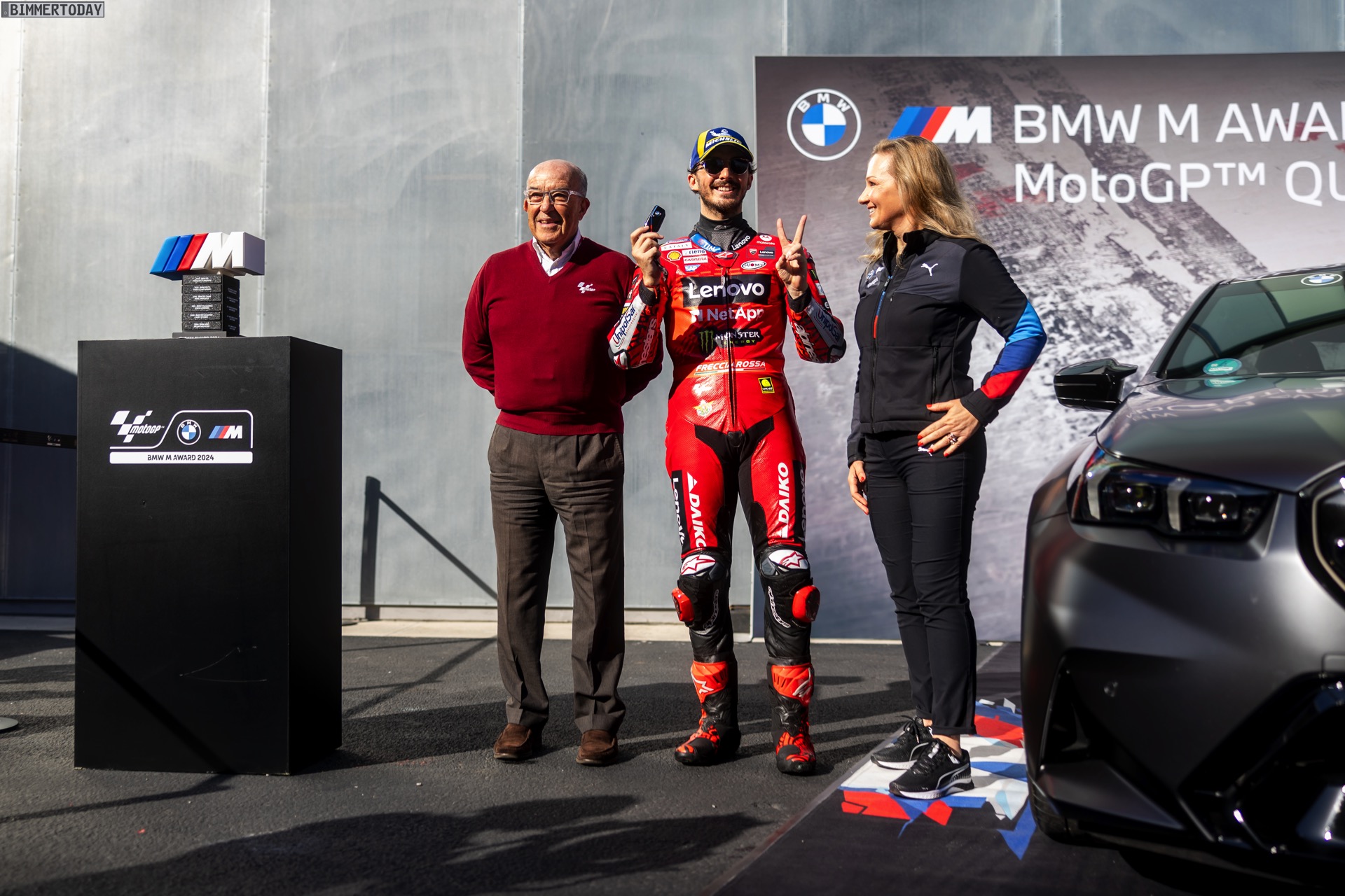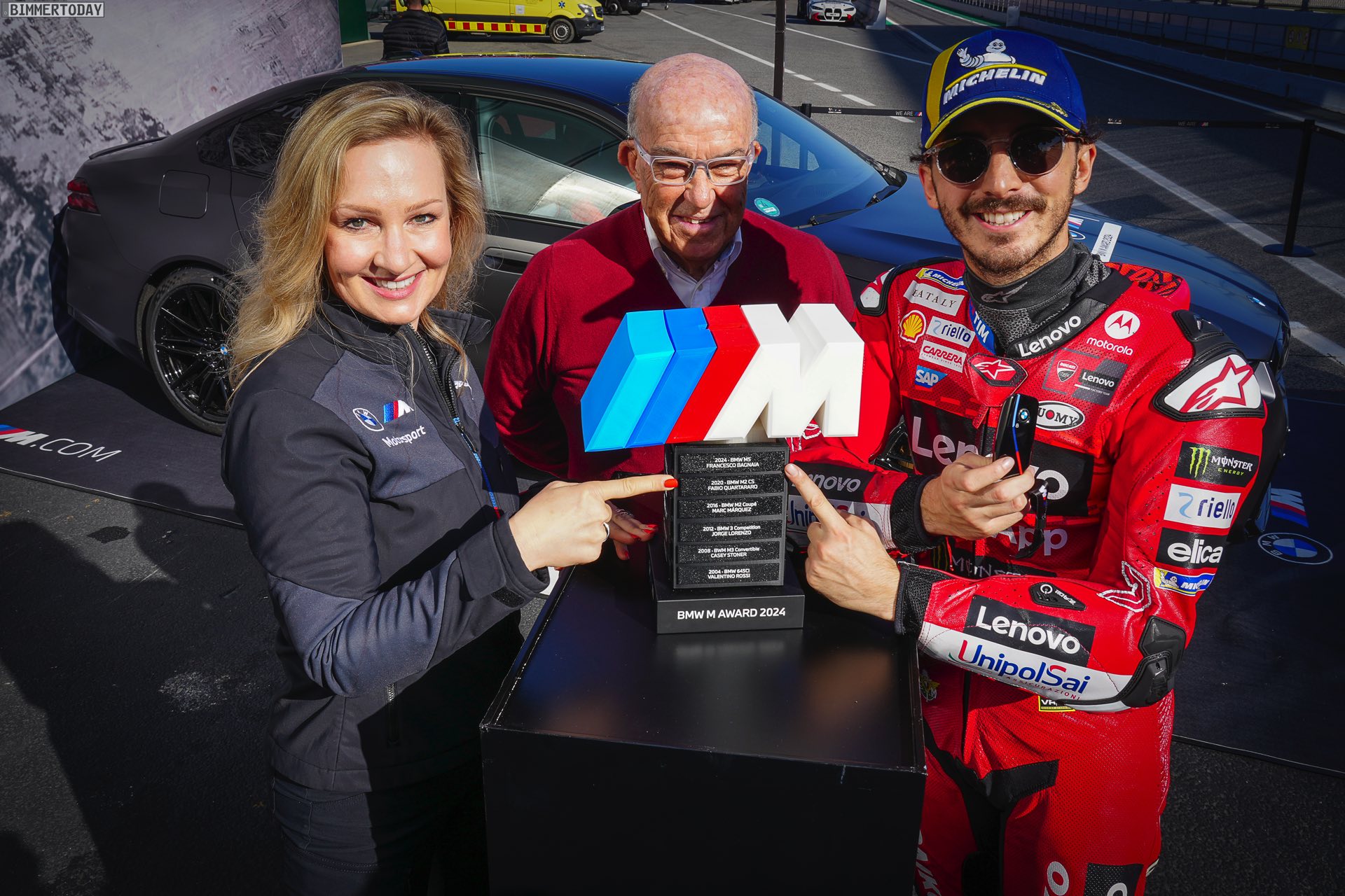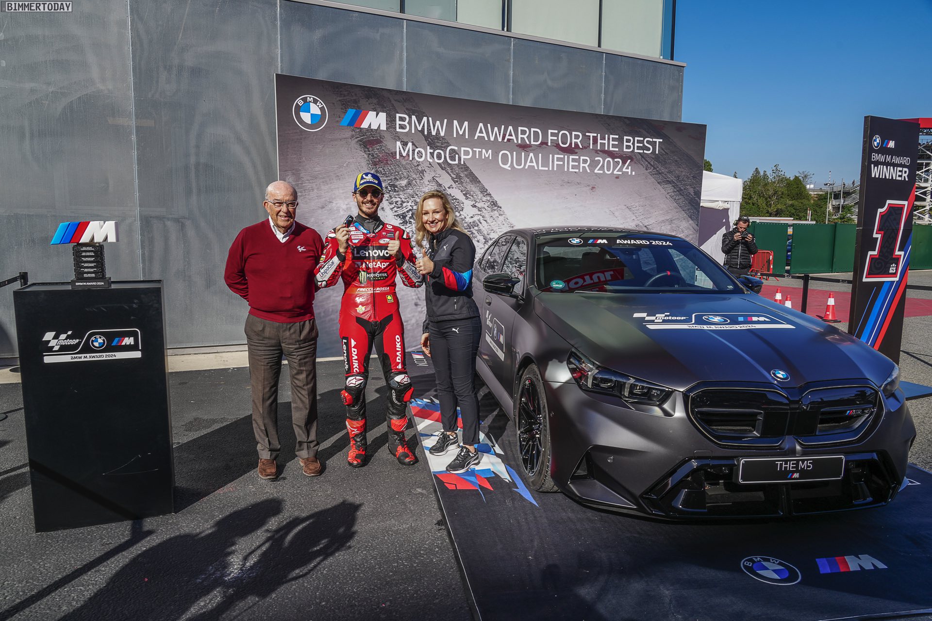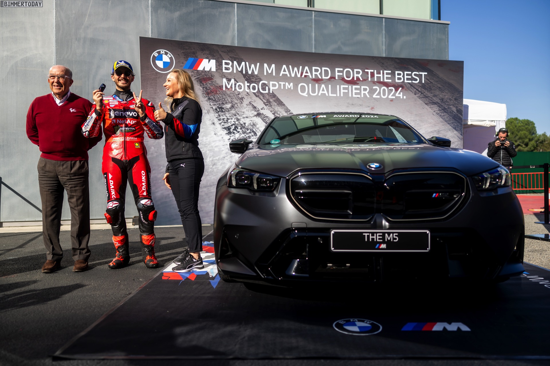 Sylvia Neubauer (Vice President Customer, Brand and Sales BMW M GmbH): “Wir freuen uns, den BMW M Award zum dritten Mal an Pecco Bagnaia zu überreichen und möchten ihm zu seinen starken Leistungen in dieser Saison herzlich gratulieren. Der BMW M Award reicht zurück bis ins Jahr 2003, und selten ging es so eng zu wie in dieser Saison. Die Frage, wer sich den Preis in Form unserer neuen High-Performance-Limousine BMW M5 sichert, war wirklich bis in die letzte Sekunde der abschließenden Qualifikation des Jahres offen. Pecco Bagnaia hat sich in einem tollen Duell als würdiger Sieger durchgesetzt. Es war eine fantastische Saison im BMW M Award, doch unsere Begeisterung über diesen spannenden Ausgang ist überschattet durch das verheerende Unwetter in Valencia. Wir sind in Gedanken bei den vielen Opfern dieser Katastrophe und den Menschen in Valencia, die so schwer davon betroffen sind.”