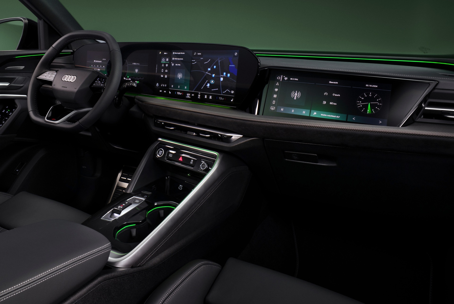 Im Innenraum setzt der Audi Q5 Sportback auf das bereits von anderen Modellen bekannte Cockpit-Layout mit Curved-Display für den Fahrer und zusätzlichem Infotainment-Display für den Beifahrer. Bei den Assistenzsystemen bietet das SUV-Coupé die gleichen Umfänge wie der reguläre Q5, das Kofferraumvolumen fällt naturgemäß etwas kleiner aus: Bei den Vierzylindern lassen sich 515 bis 1.415 Liter im Gepäckraum unterbringen, beim SQ5 mit Sechszylinder sind es 470 bis 1.388 Liter.