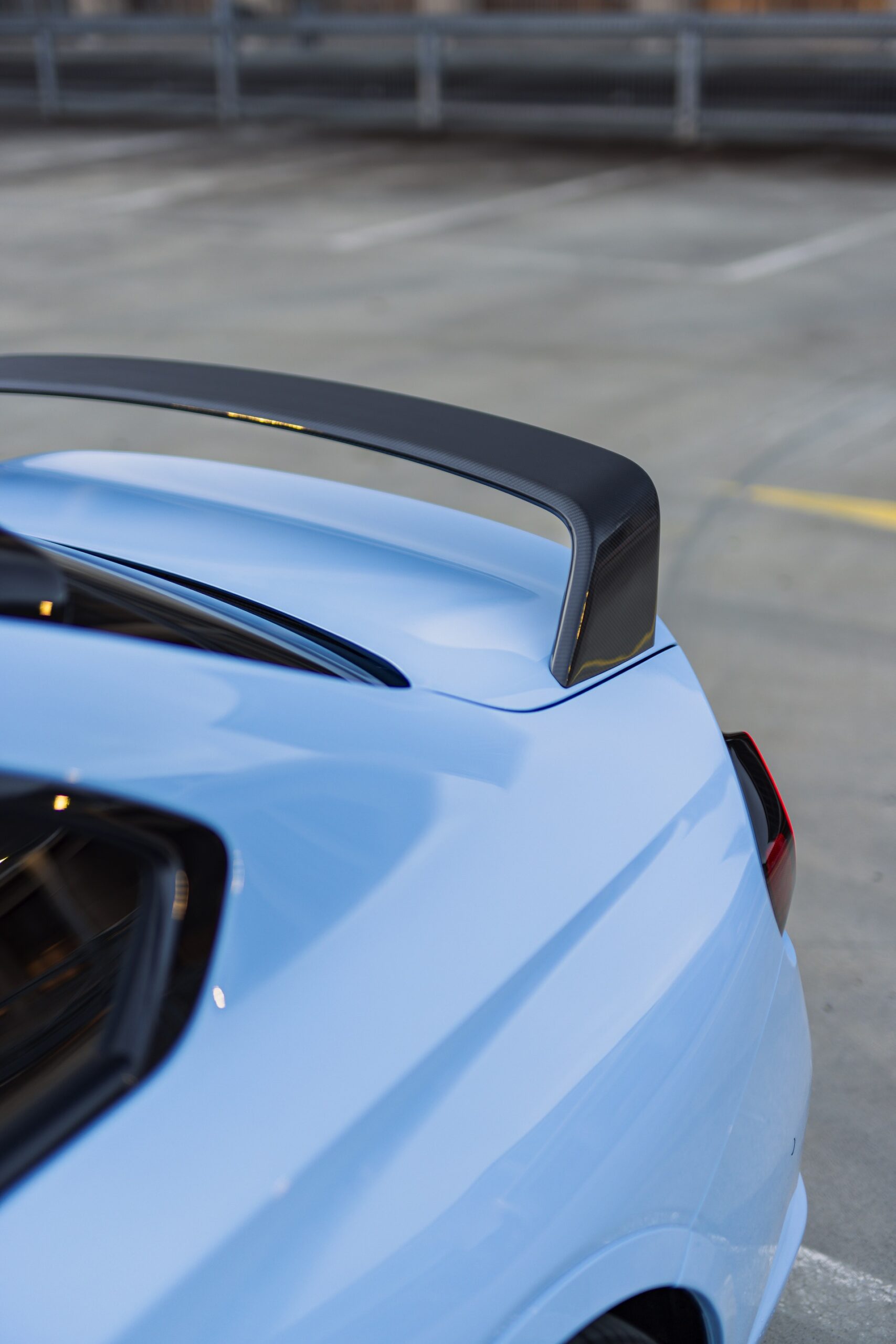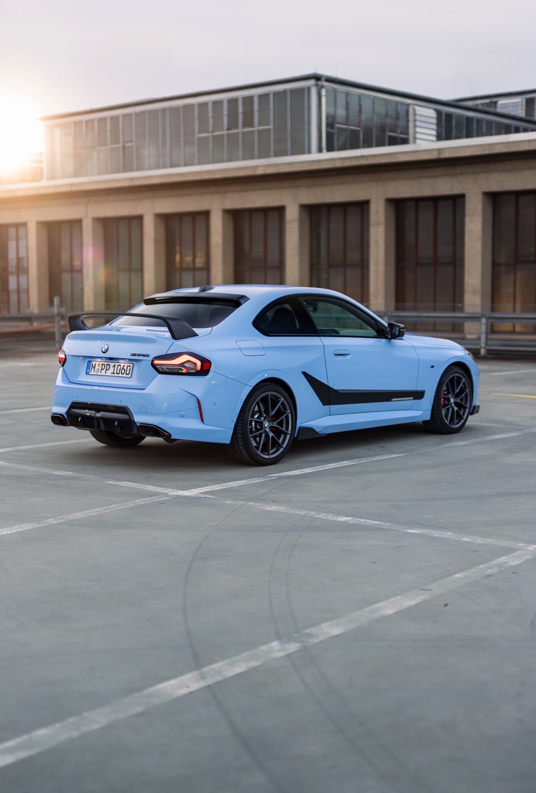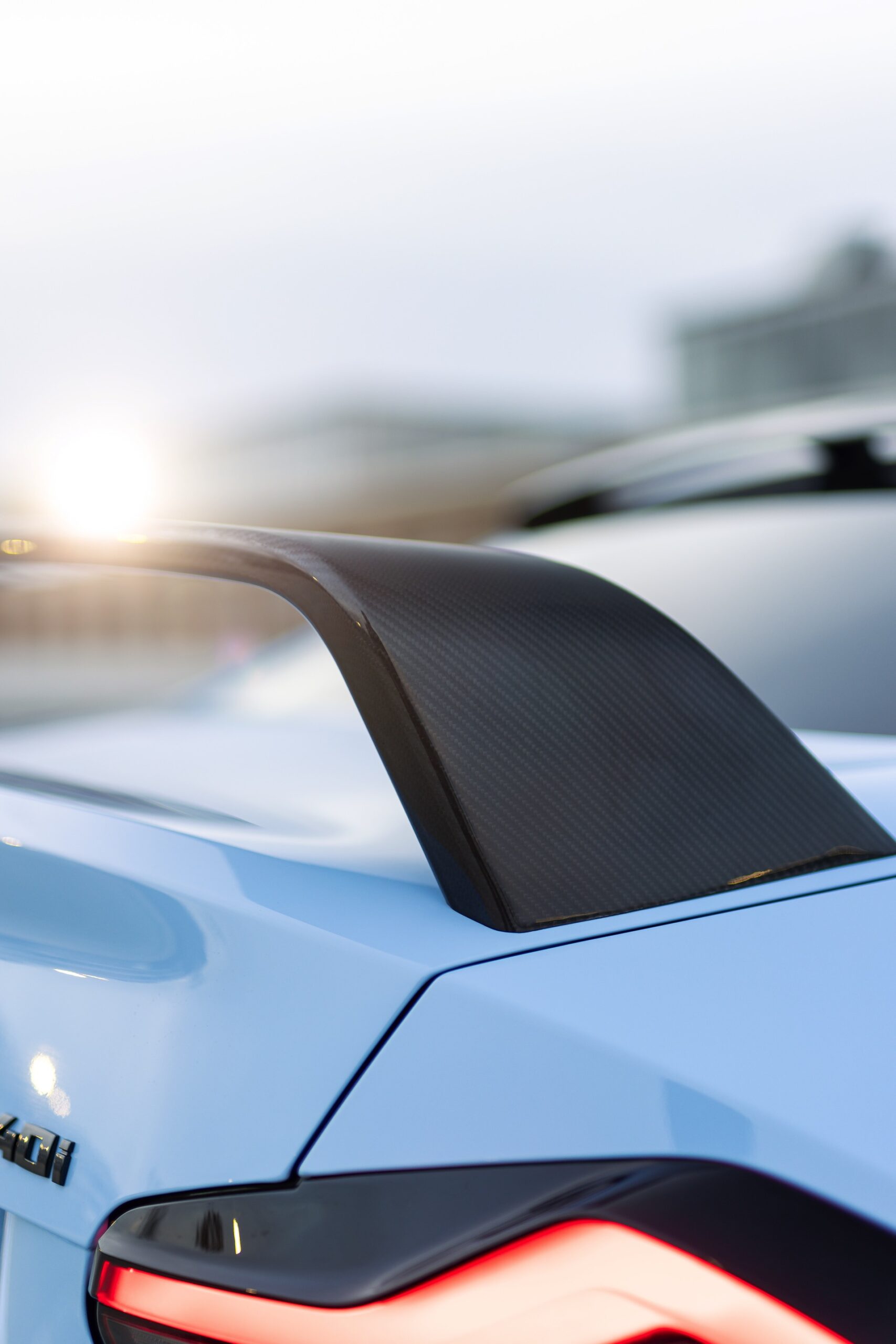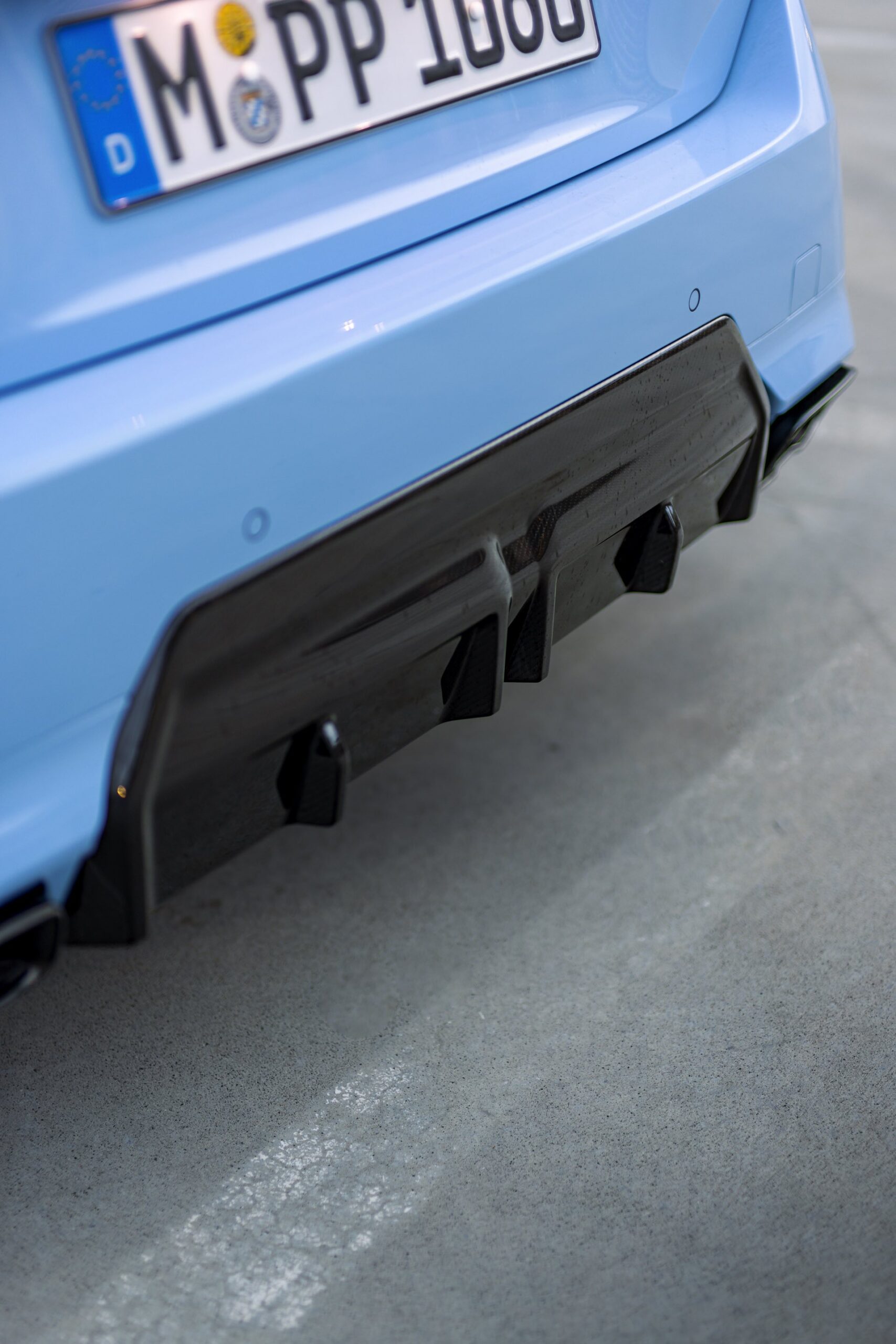 Der gezeigte BMW M240i (G42 LCI) hat neben der Lackierung noch einige weitere Highlights zu bieten, denn er ist mit zahlreichen Tuning-Teilen aus dem Programm der BMW M Performance Parts ausgerüstet. Je nach Blickwinkel stechen dabei stets andere Elemente hervor: Angefangen vom Carbon-Frontsplitter und der den Powerdome betonenden Dekor-Beklebung auf der Motorhaube bis zum großen Carbon-Heckflügel, dem Dachkanten-Heckspoiler und dem Carbon-Diffusor gibt es viel zu entdecken. "
