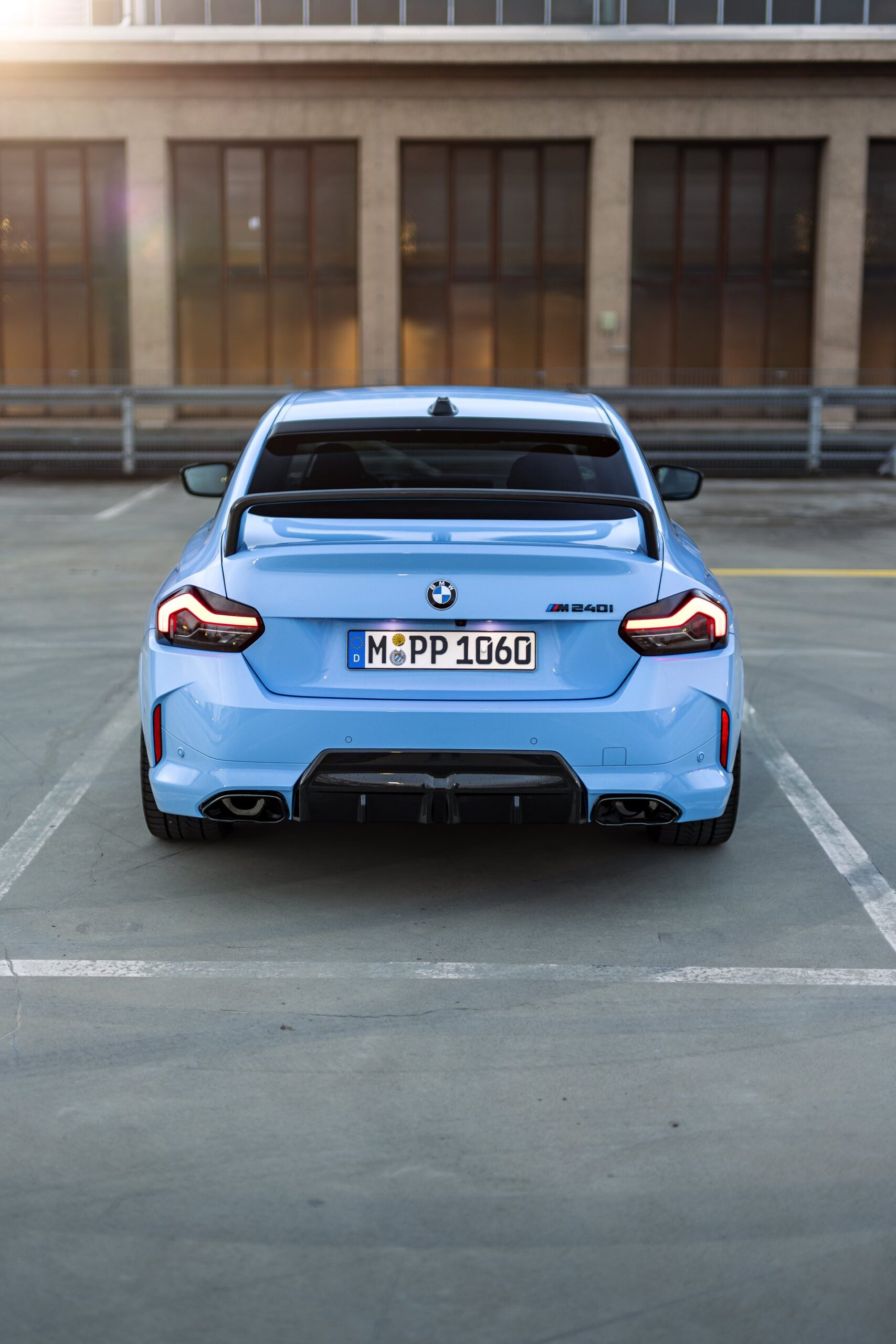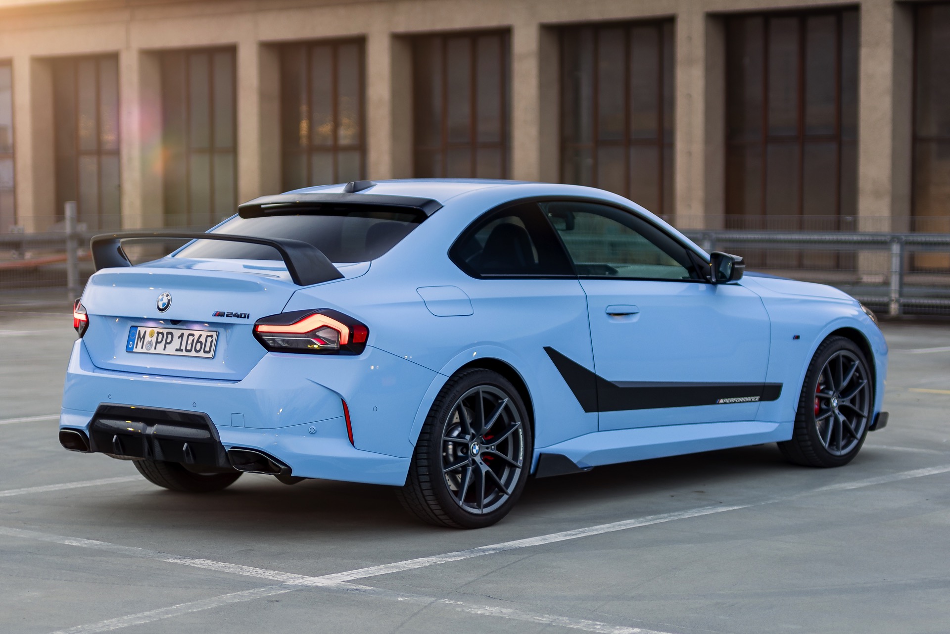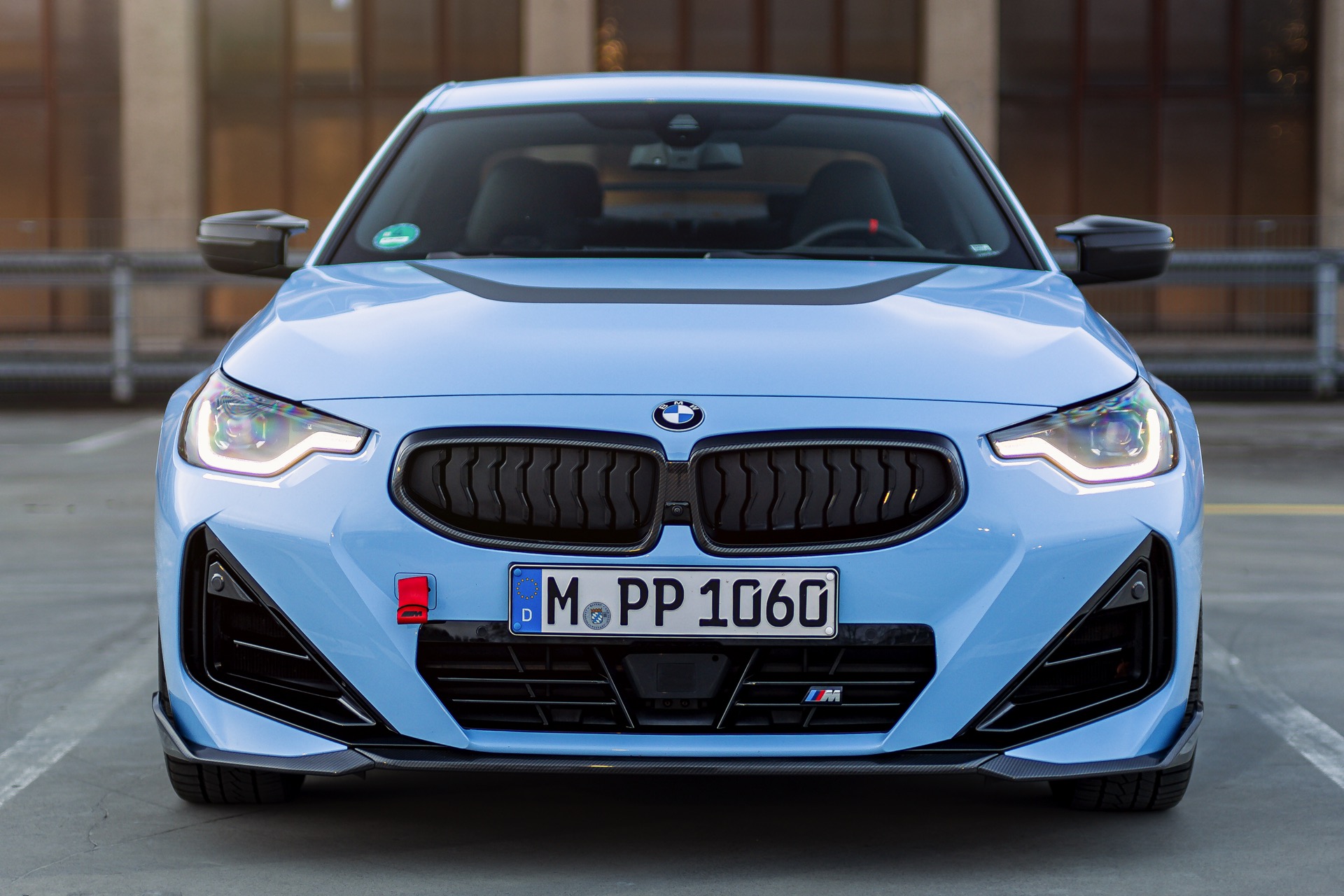 Der gezeigte BMW M240i (G42 LCI) hat neben der Lackierung noch einige weitere Highlights zu bieten, denn er ist mit zahlreichen Tuning-Teilen aus dem Programm der BMW M Performance Parts ausgerüstet. Je nach Blickwinkel stechen dabei stets andere Elemente hervor: Angefangen vom Carbon-Frontsplitter und der den Powerdome betonenden Dekor-Beklebung auf der Motorhaube bis zum großen Carbon-Heckflügel, dem Dachkanten-Heckspoiler und dem Carbon-Diffusor gibt es viel zu entdecken. "