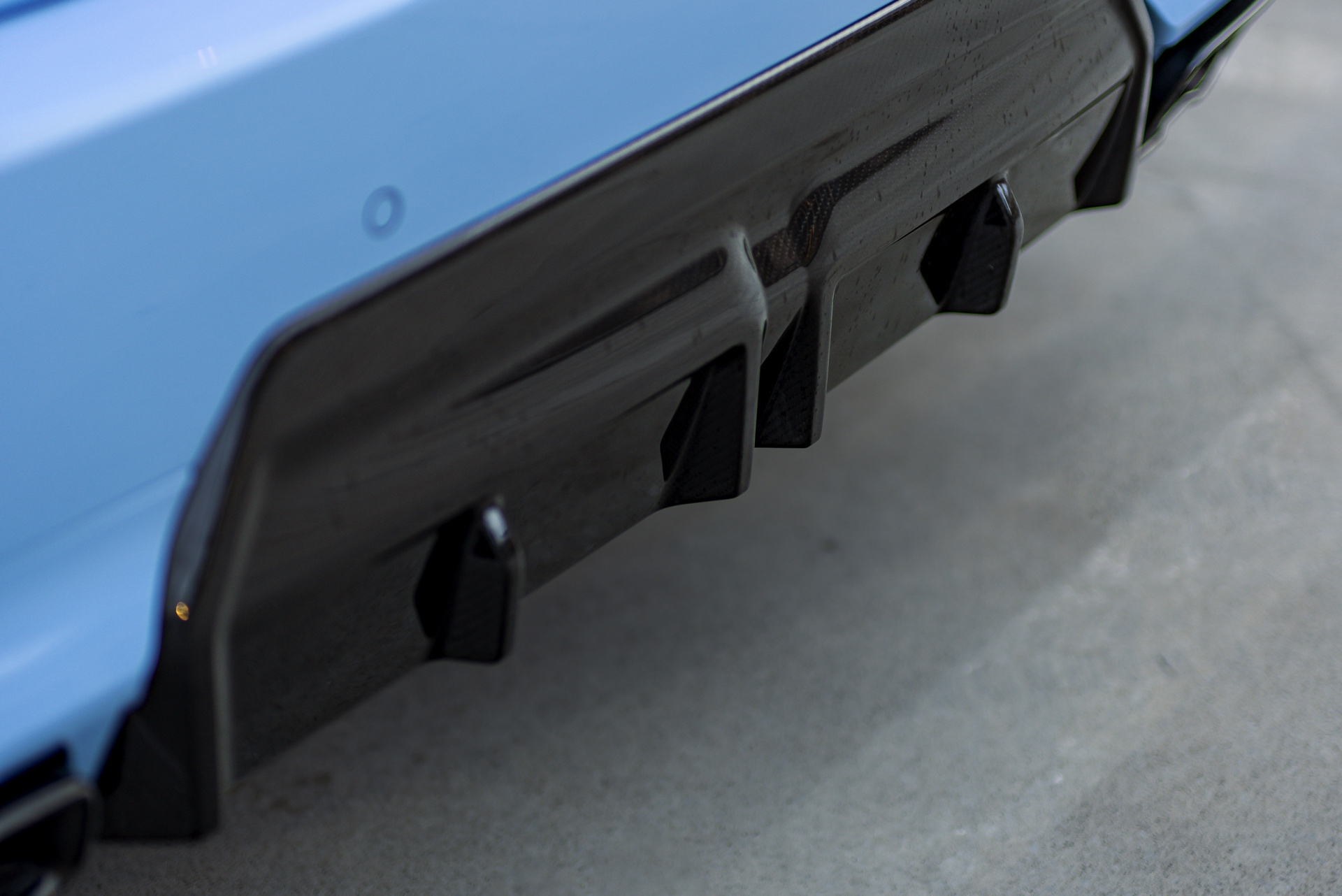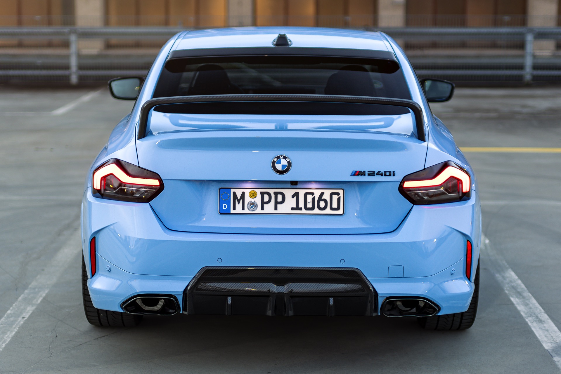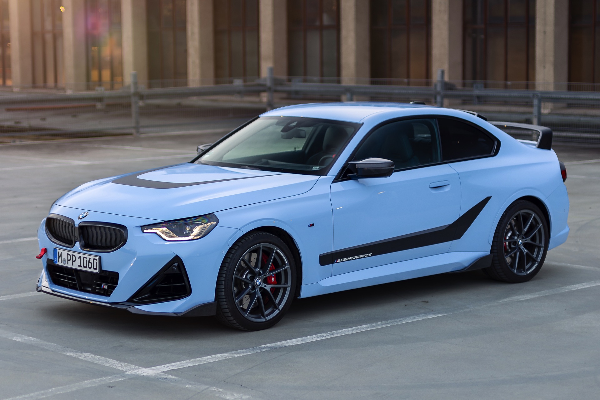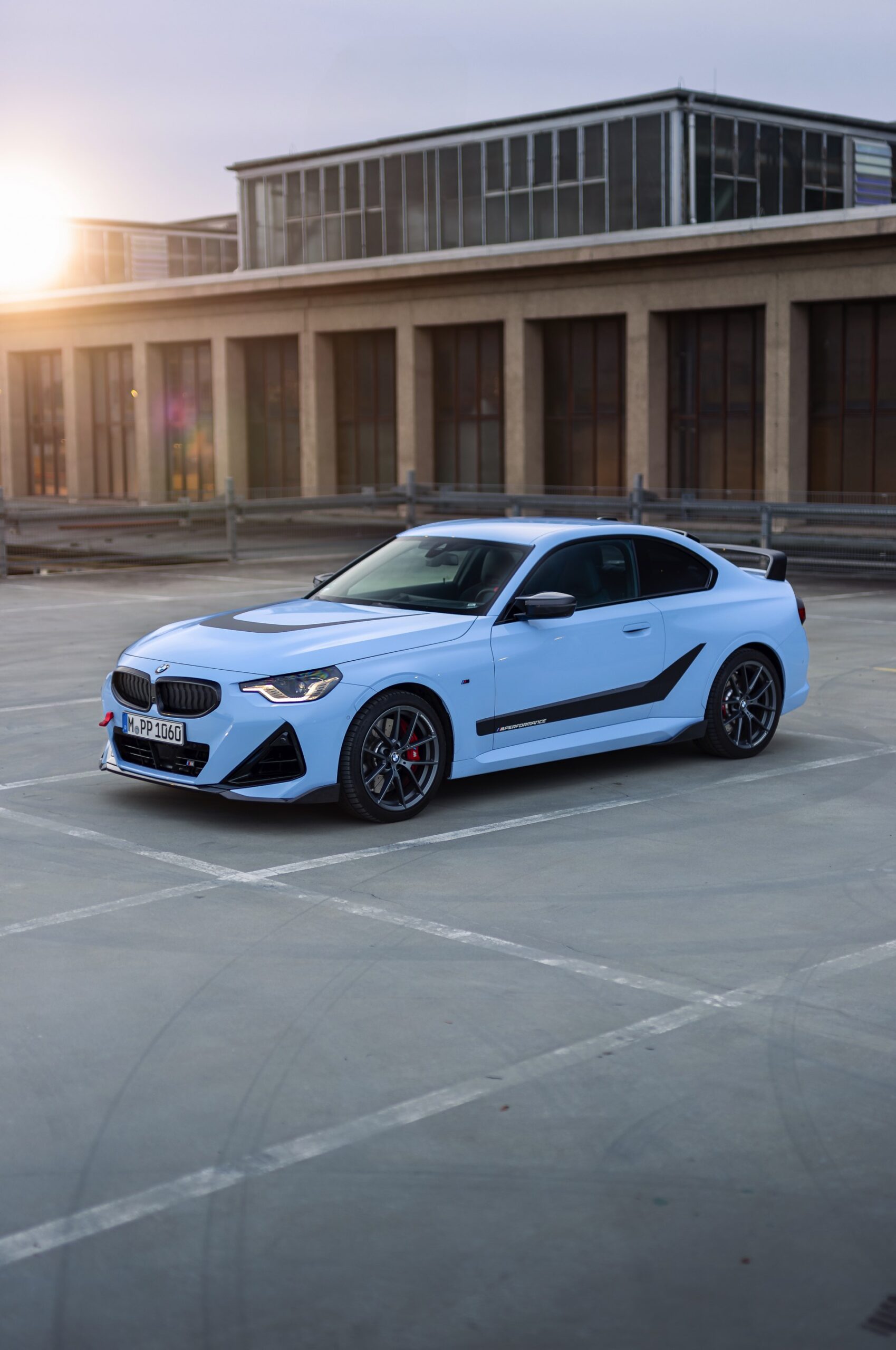 Der gezeigte BMW M240i (G42 LCI) hat neben der Lackierung noch einige weitere Highlights zu bieten, denn er ist mit zahlreichen Tuning-Teilen aus dem Programm der BMW M Performance Parts ausgerüstet. Je nach Blickwinkel stechen dabei stets andere Elemente hervor: Angefangen vom Carbon-Frontsplitter und der den Powerdome betonenden Dekor-Beklebung auf der Motorhaube bis zum großen Carbon-Heckflügel, dem Dachkanten-Heckspoiler und dem Carbon-Diffusor gibt es viel zu entdecken. "