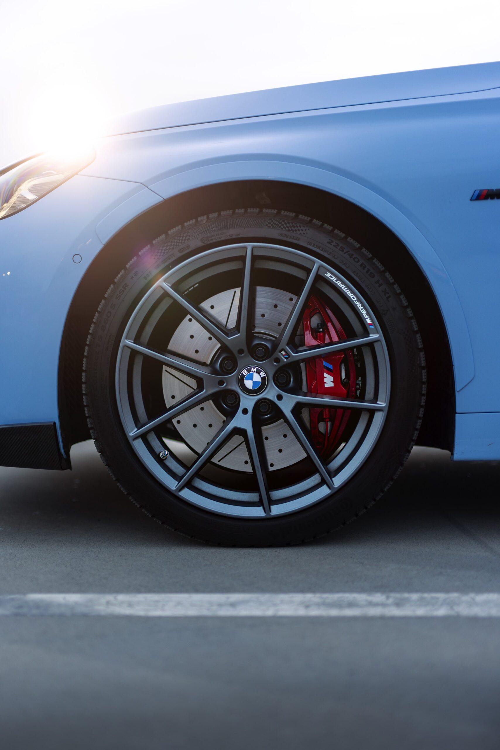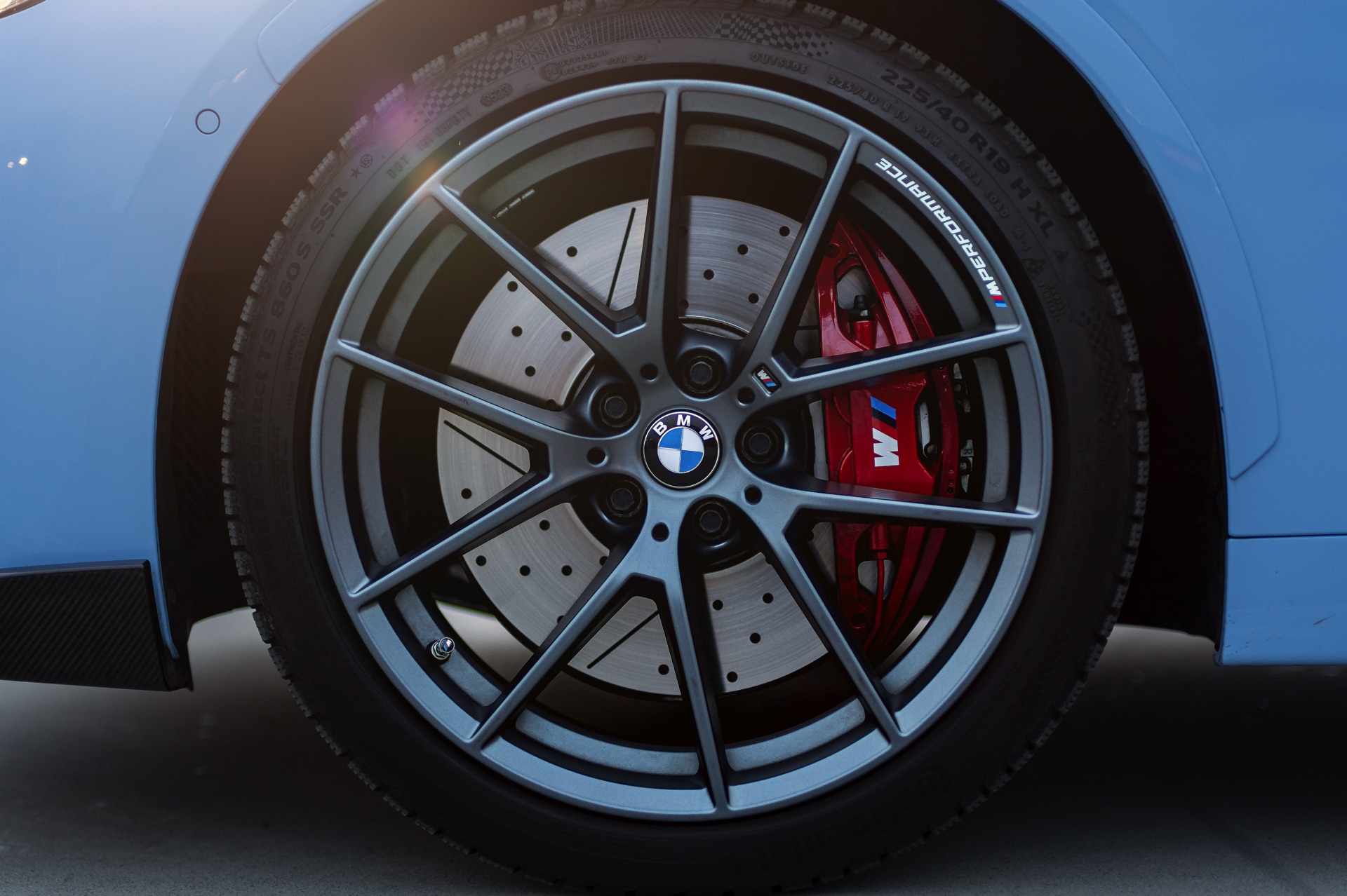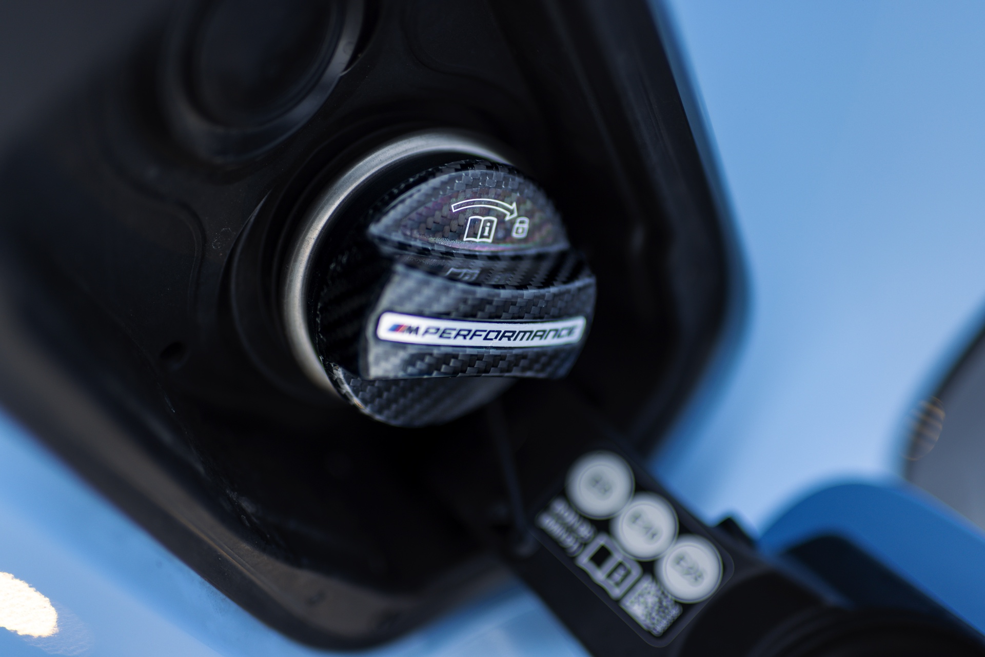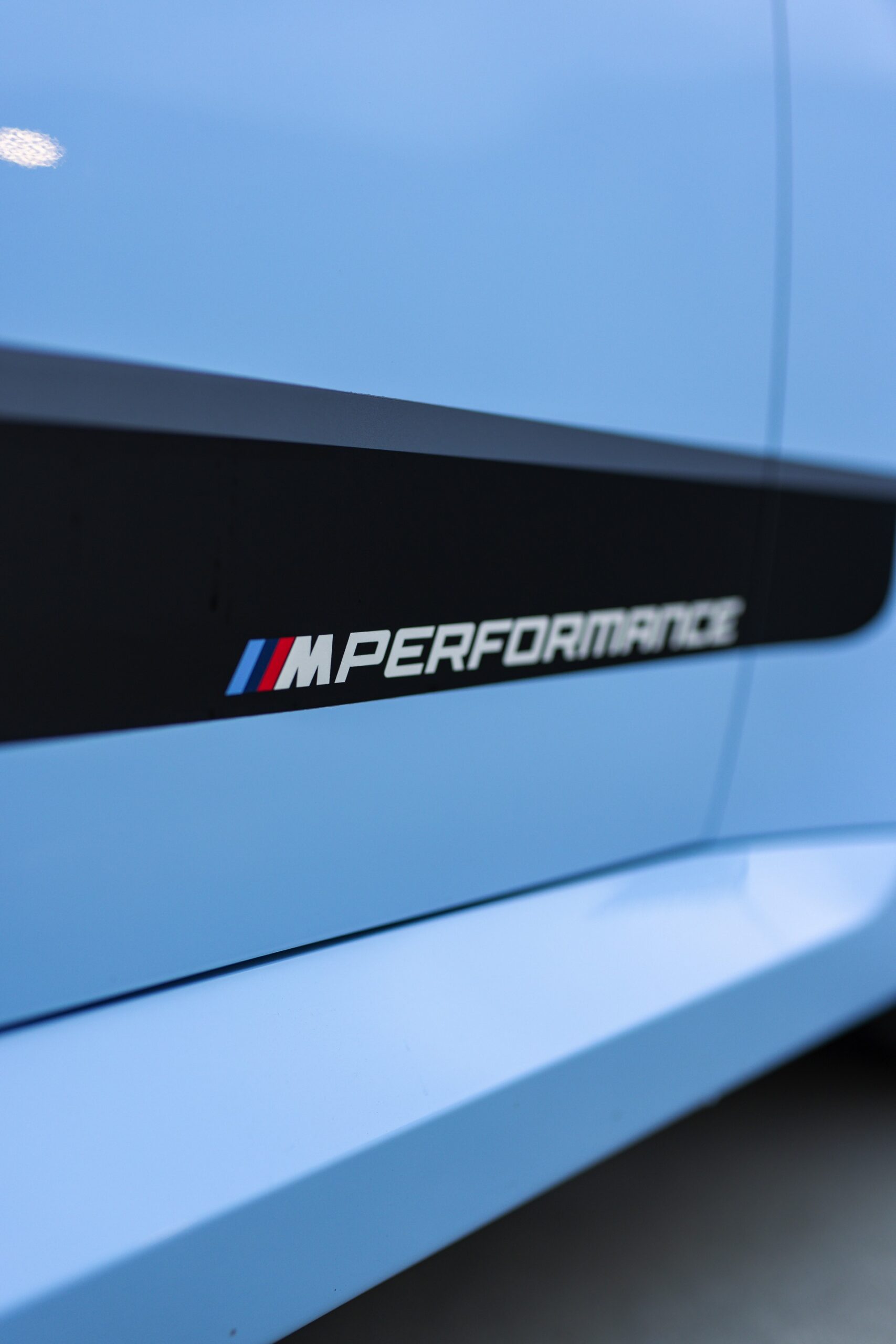 In der Seitenansicht sorgen neben der Dekor-Beklebung auf Türen und hinteren Kotflügeln auch die Aero-Finnen vor Vorder- und Hinterrädern und natürlich die sportlichen Felgen für einen sportlicheren Auftritt. Die 19 Zoll-Felgen im Styling Y-Speiche 898 M kommen mit einem Finish in mattem Grau und mit farbigem M Performance-Aufdruck.