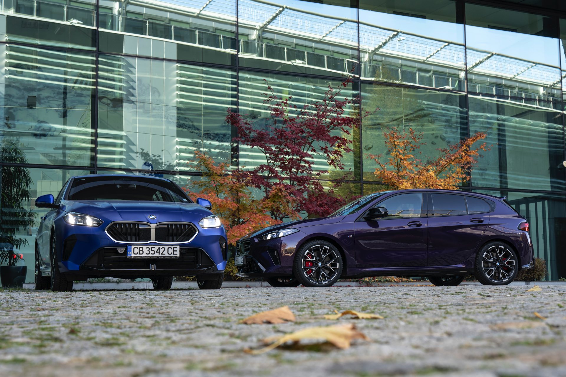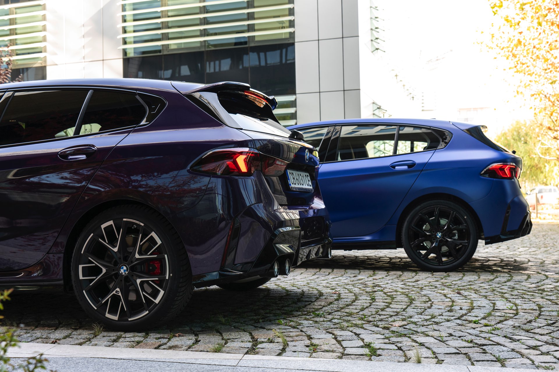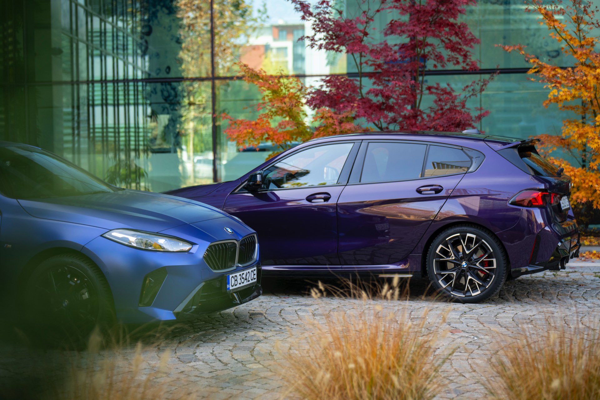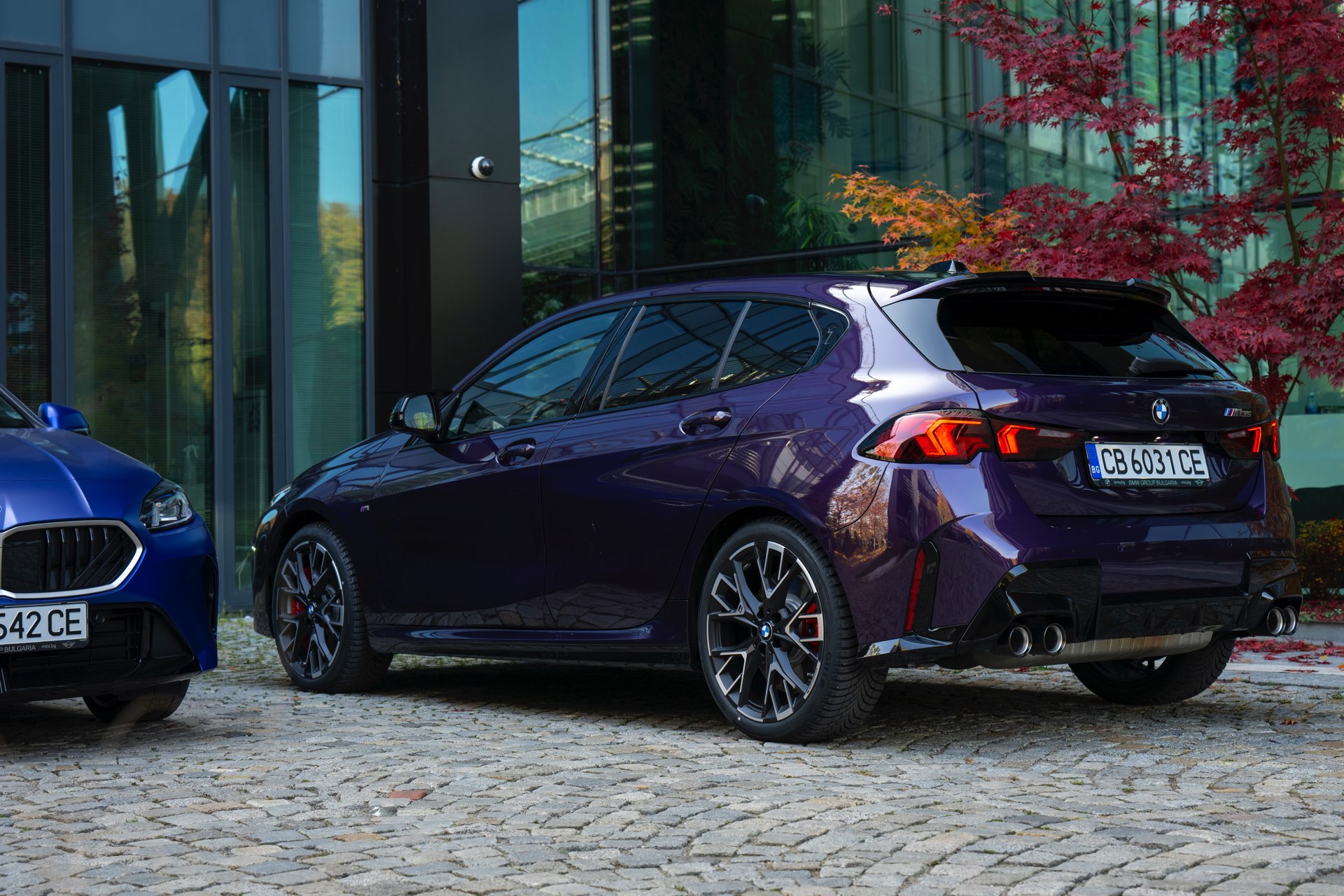 Mit Frozen Portimao Blue und Thundernight Metallic gibt es gleich zwei echte Kracher im regulären Farbprogramm für den neuen BMW 1er (F70). Fotos entsprechend lackierter Fahrzeuge gab es in der Vergangenheit bereits einige, aber dank eines neuen Foto-Sets aus Bulgarien können wir die beiden spektakulärsten Lackierungen für die vierte Generation des kompakten Münchners nun erstmals Seite an Seite betrachten. Im Fokus stehen dabei ein BMW M135 xDrive in Thundernight Metallic, der mit 300 PS, Allradantrieb und einigen exklusiven Details wie den M-Nieren mit horizontalen Streben, den M-Außenspiegeln und natürlich den vier Endrohren große Ausrufezeichen setzt.