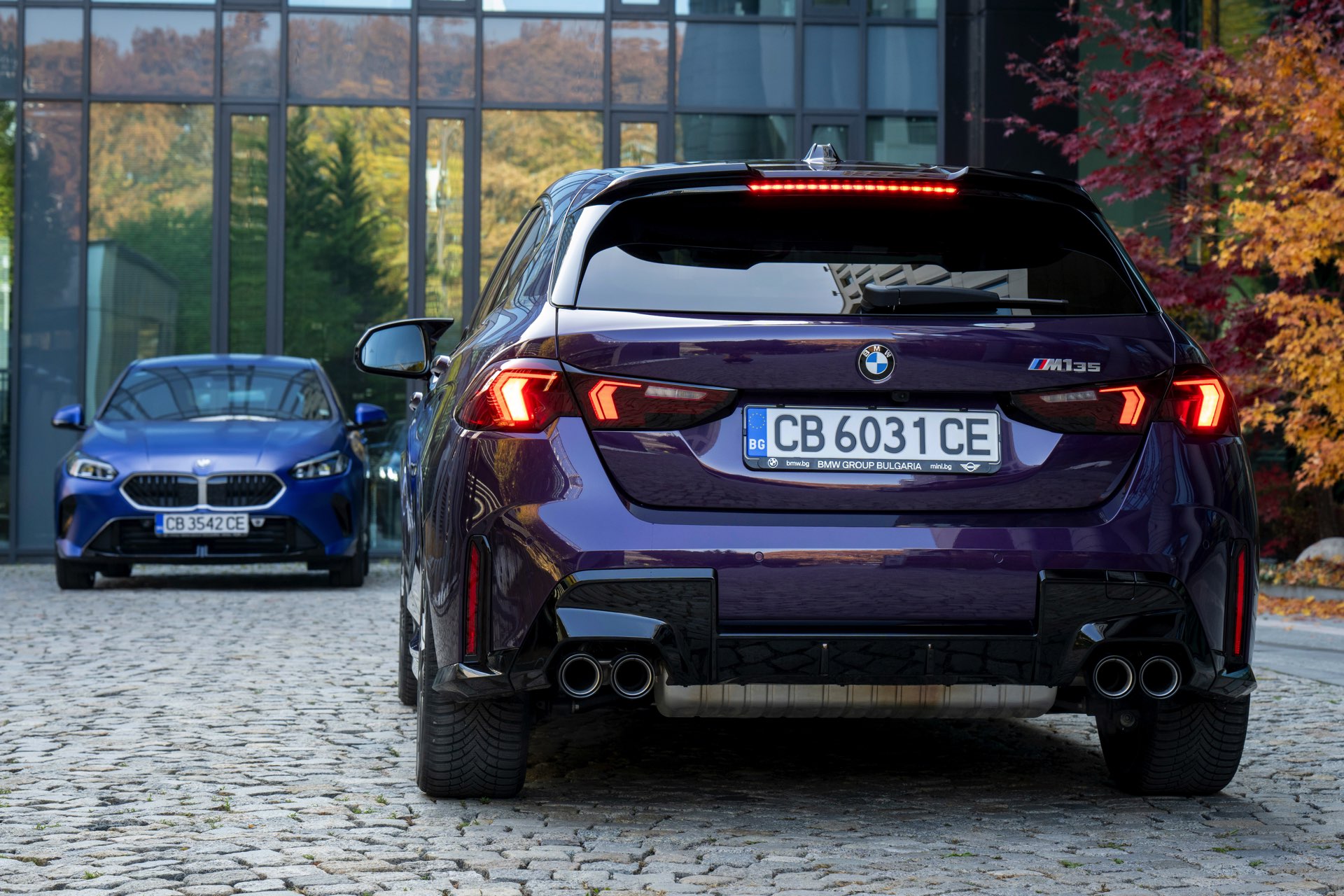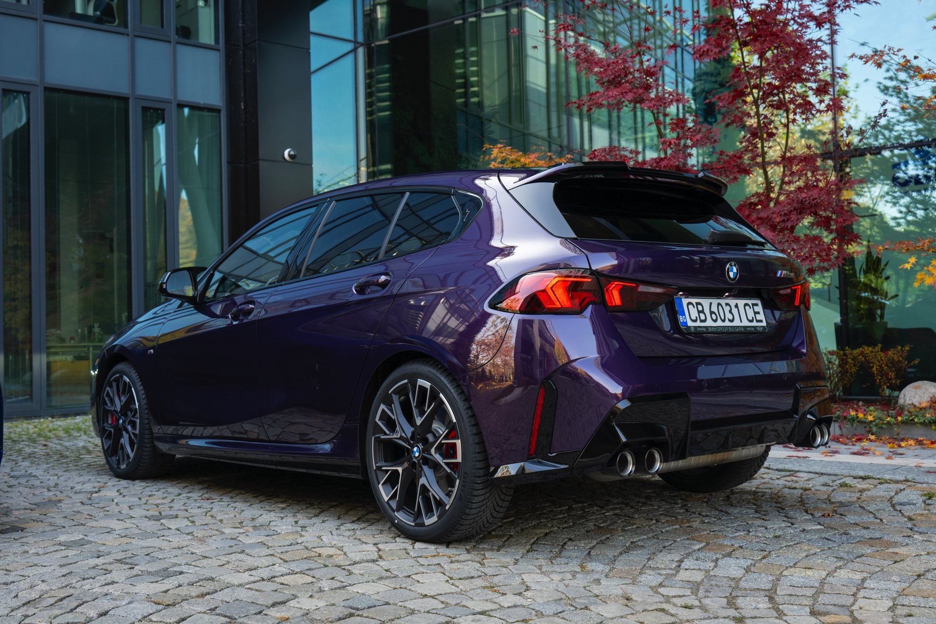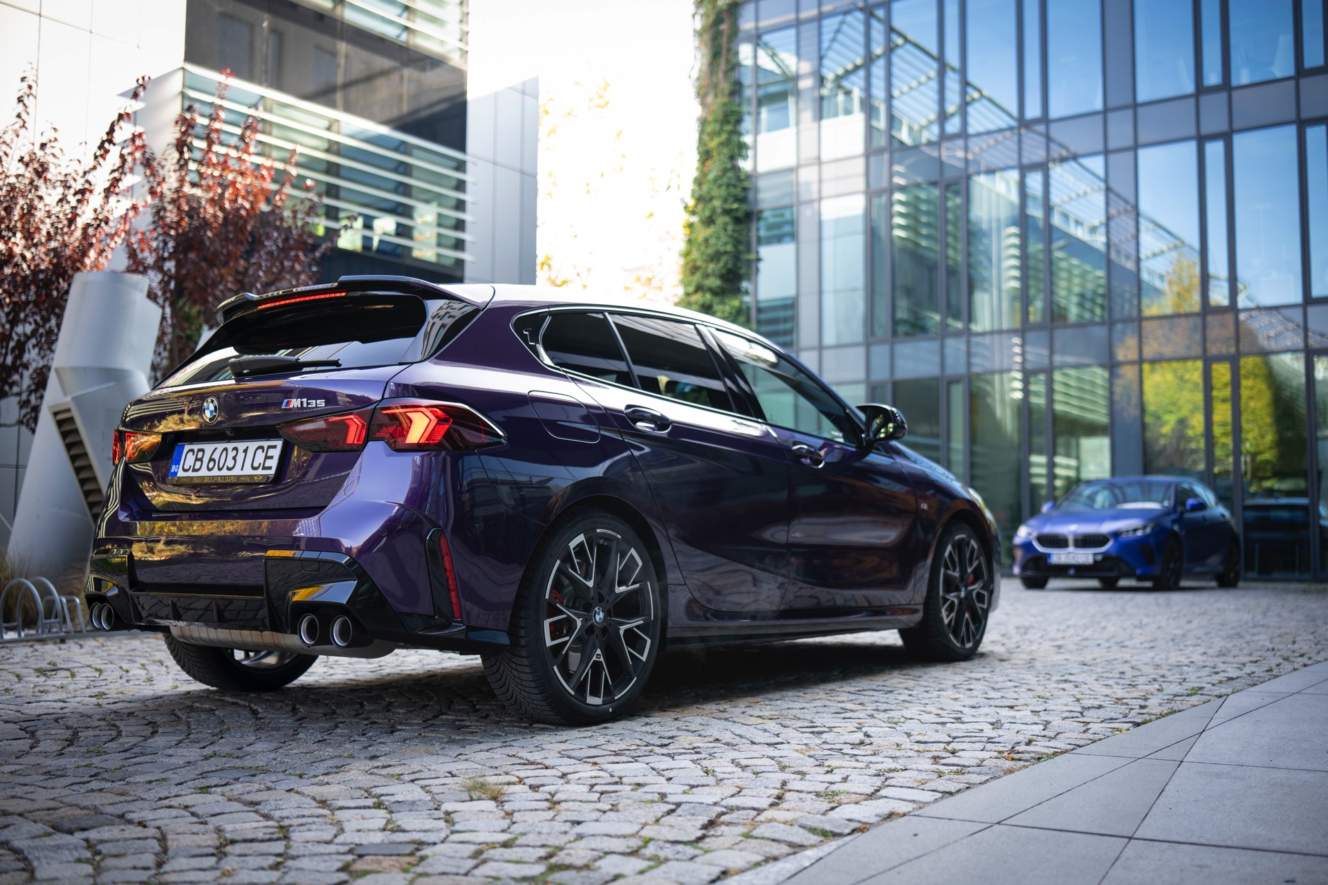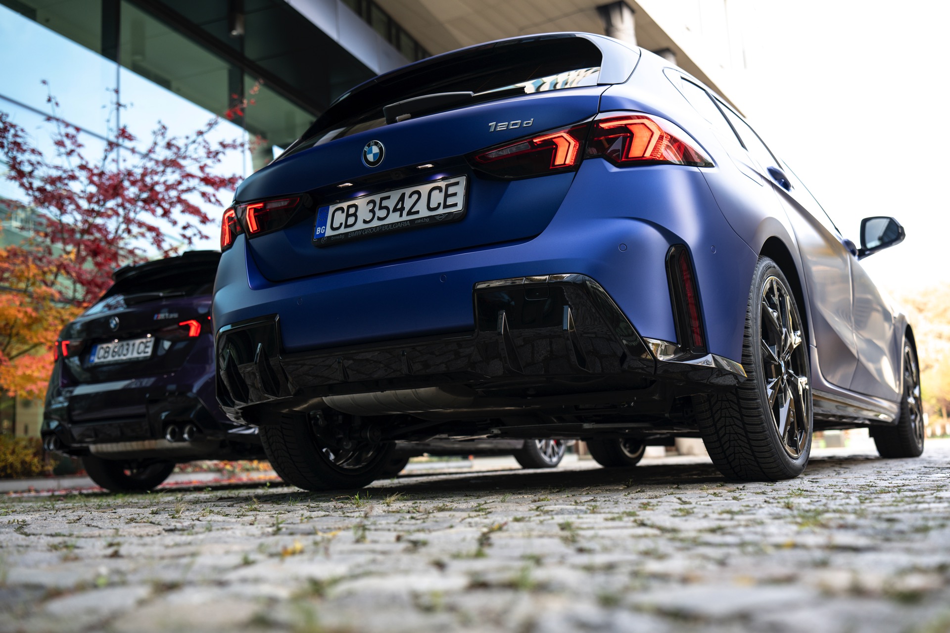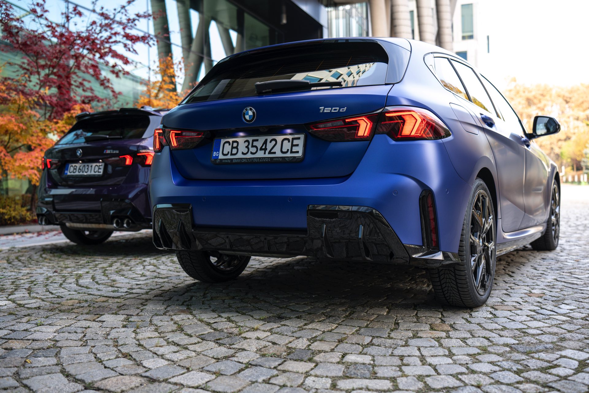 Mit Frozen Portimao Blue und Thundernight Metallic gibt es gleich zwei echte Kracher im regulären Farbprogramm für den neuen BMW 1er (F70). Fotos entsprechend lackierter Fahrzeuge gab es in der Vergangenheit bereits einige, aber dank eines neuen Foto-Sets aus Bulgarien können wir die beiden spektakulärsten Lackierungen für die vierte Generation des kompakten Münchners nun erstmals Seite an Seite betrachten. Im Fokus stehen dabei ein BMW M135 xDrive in Thundernight Metallic, der mit 300 PS, Allradantrieb und einigen exklusiven Details wie den M-Nieren mit horizontalen Streben, den M-Außenspiegeln und natürlich den vier Endrohren große Ausrufezeichen setzt.
