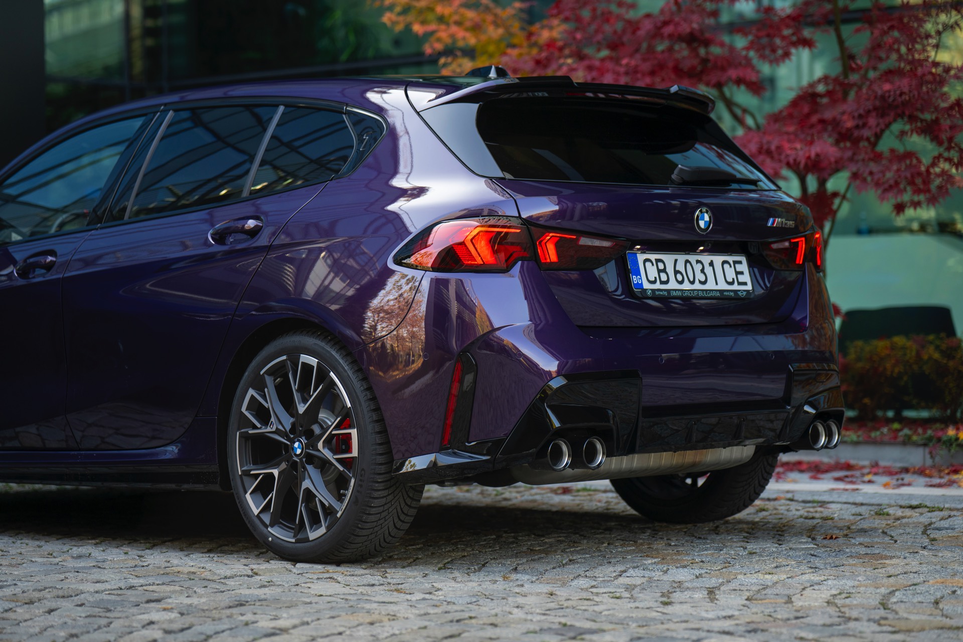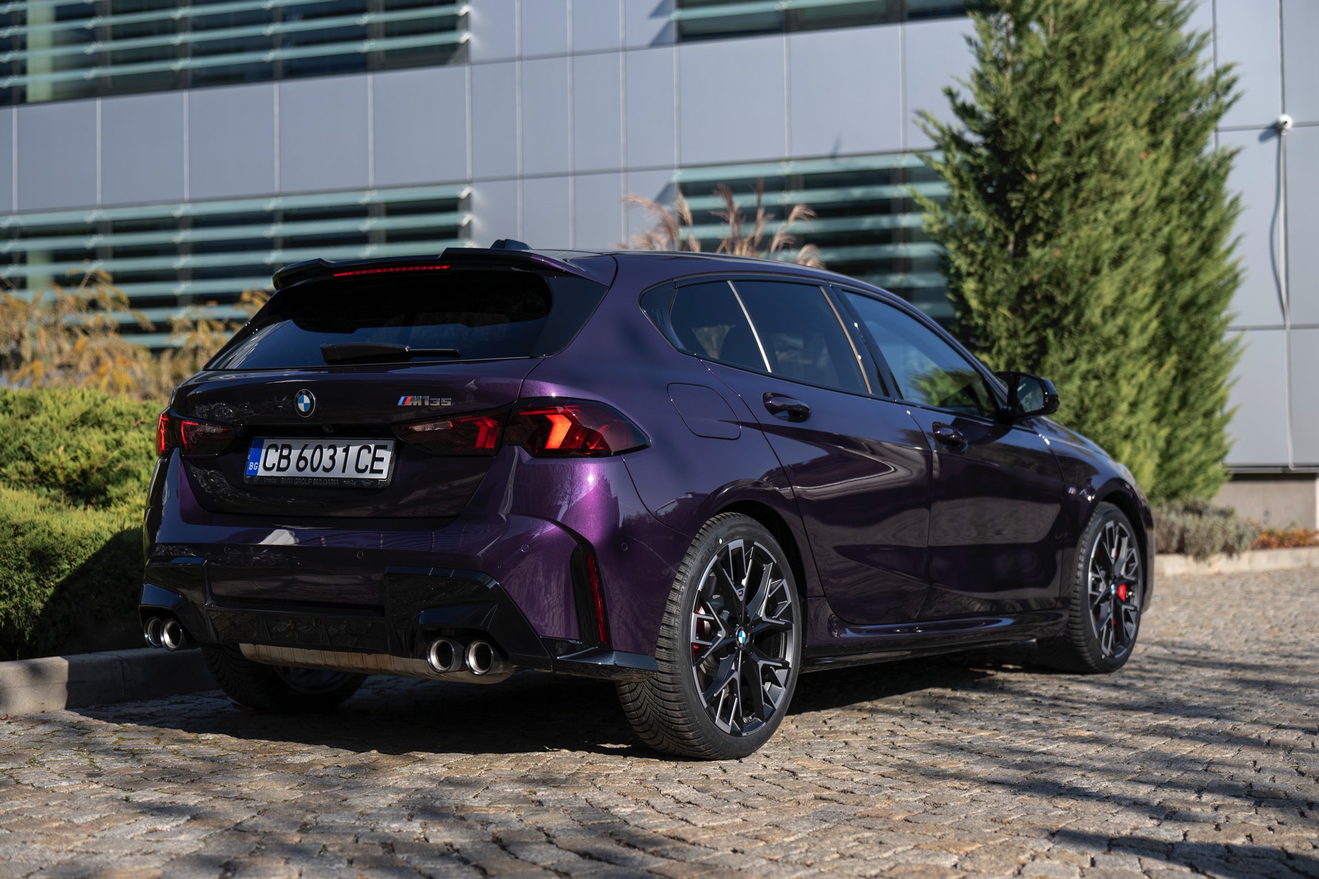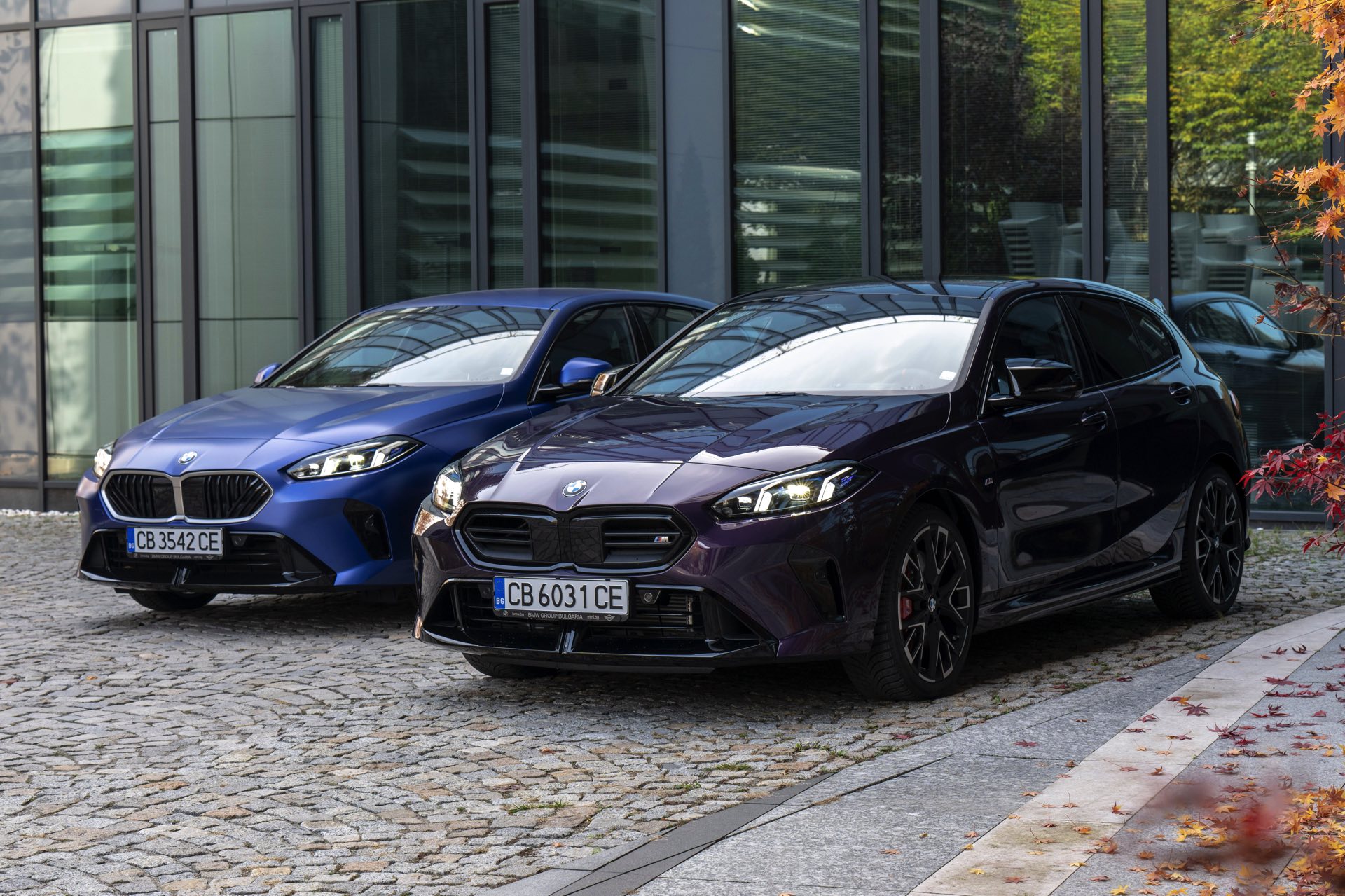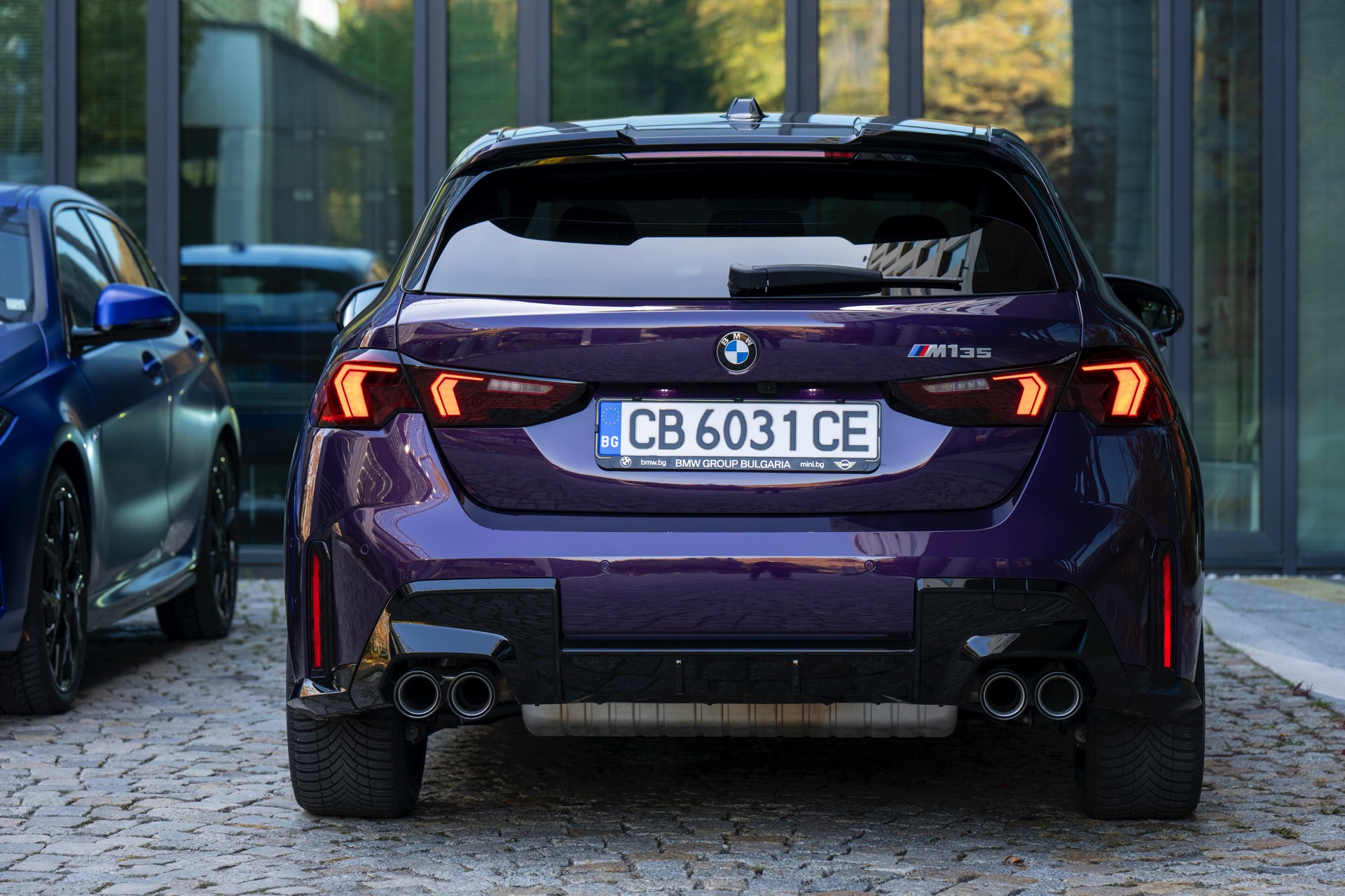 Mit Frozen Portimao Blue und Thundernight Metallic gibt es gleich zwei echte Kracher im regulären Farbprogramm für den neuen BMW 1er (F70). Fotos entsprechend lackierter Fahrzeuge gab es in der Vergangenheit bereits einige, aber dank eines neuen Foto-Sets aus Bulgarien können wir die beiden spektakulärsten Lackierungen für die vierte Generation des kompakten Münchners nun erstmals Seite an Seite betrachten. Im Fokus stehen dabei ein BMW M135 xDrive in Thundernight Metallic, der mit 300 PS, Allradantrieb und einigen exklusiven Details wie den M-Nieren mit horizontalen Streben, den M-Außenspiegeln und natürlich den vier Endrohren große Ausrufezeichen setzt.