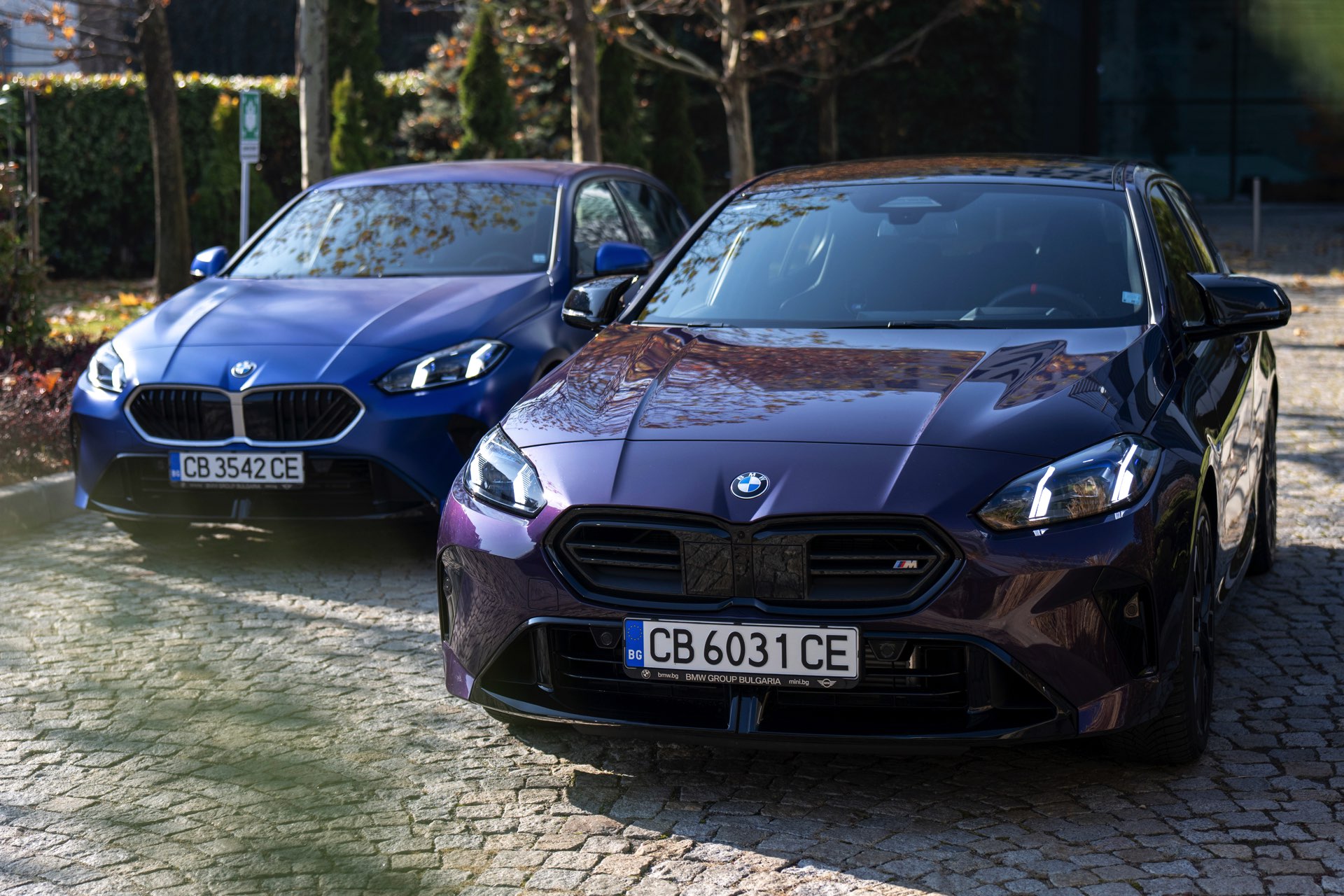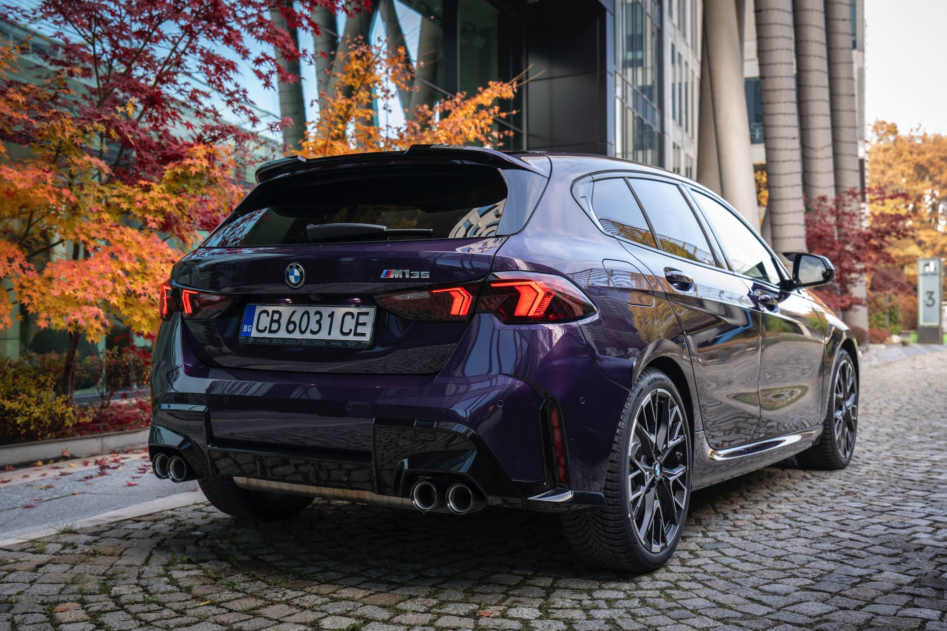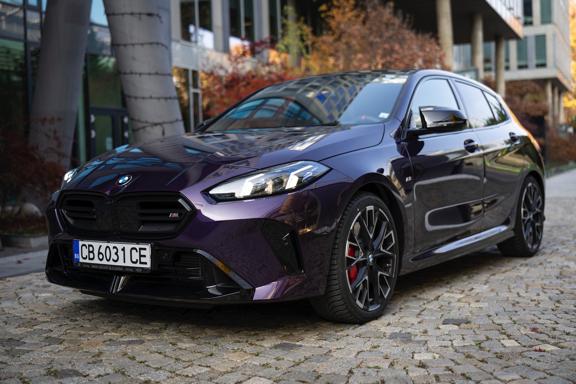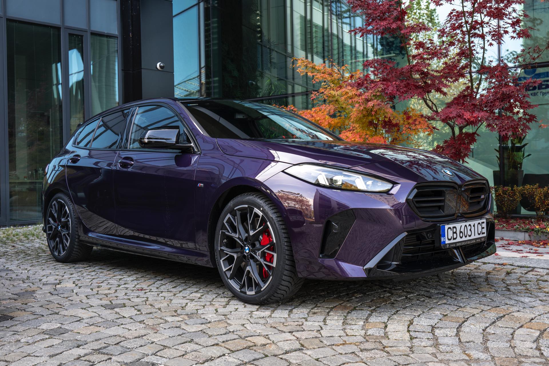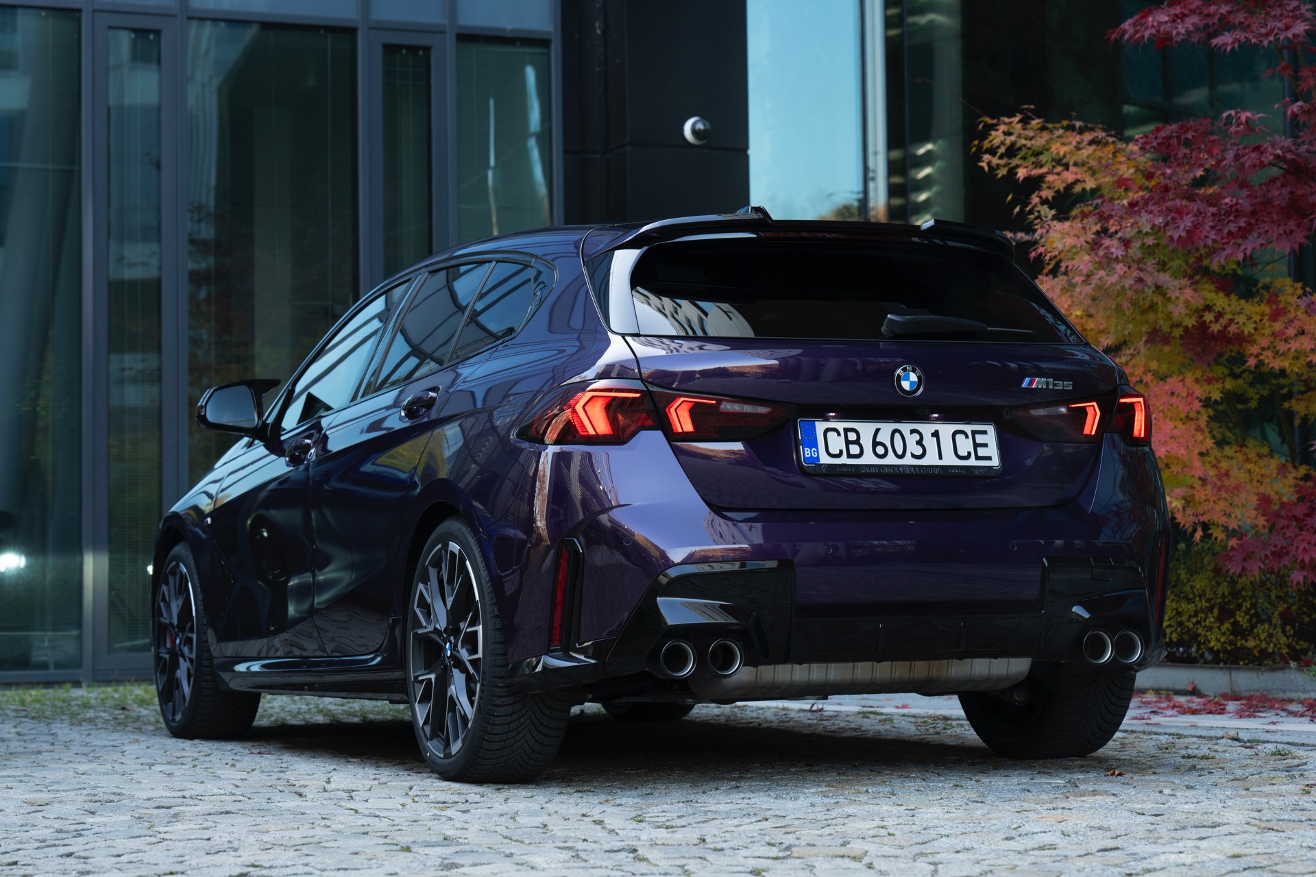 Mit Frozen Portimao Blue und Thundernight Metallic gibt es gleich zwei echte Kracher im regulären Farbprogramm für den neuen BMW 1er (F70). Fotos entsprechend lackierter Fahrzeuge gab es in der Vergangenheit bereits einige, aber dank eines neuen Foto-Sets aus Bulgarien können wir die beiden spektakulärsten Lackierungen für die vierte Generation des kompakten Münchners nun erstmals Seite an Seite betrachten. Im Fokus stehen dabei ein BMW M135 xDrive in Thundernight Metallic, der mit 300 PS, Allradantrieb und einigen exklusiven Details wie den M-Nieren mit horizontalen Streben, den M-Außenspiegeln und natürlich den vier Endrohren große Ausrufezeichen setzt.