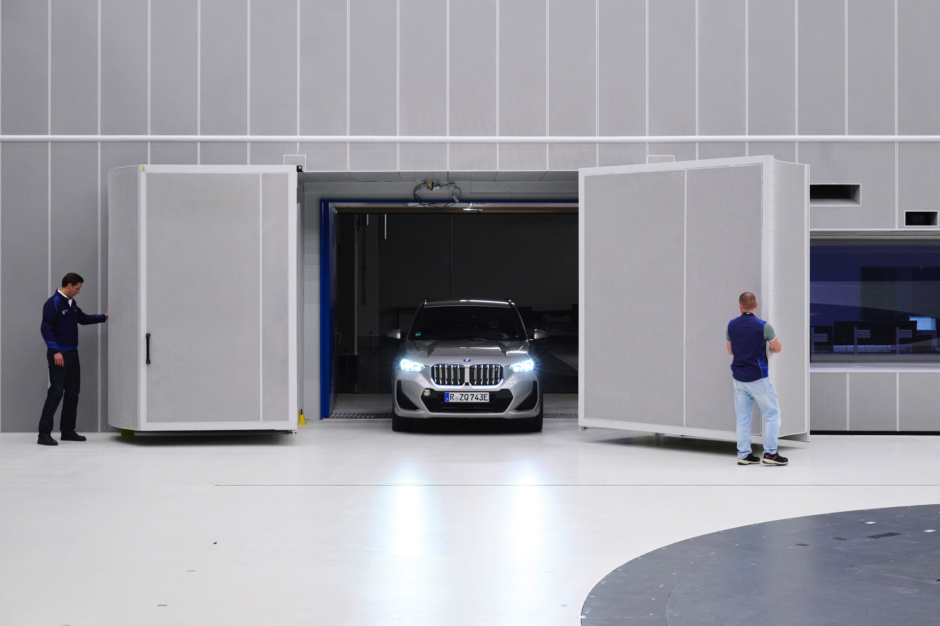 Eine weitere Besonderheit ist der integrierte Rollenprüfstand, dessen Rollen unabhängig vom Wind betrieben werden können. So lässt sich schnell erkennen, ob Störgeräusche durch das Abrollen oder durch den Fahrtwind ausgelöst werden. Von den Fähigkeiten des neuen Akustik-Windkanals werden alle künftigen Fahrzeuge der BMW Group profitieren, ganz ausdrücklich eingeschlossen sind dabei bereits die kommenden Elektroautos der Neuen Klasse.