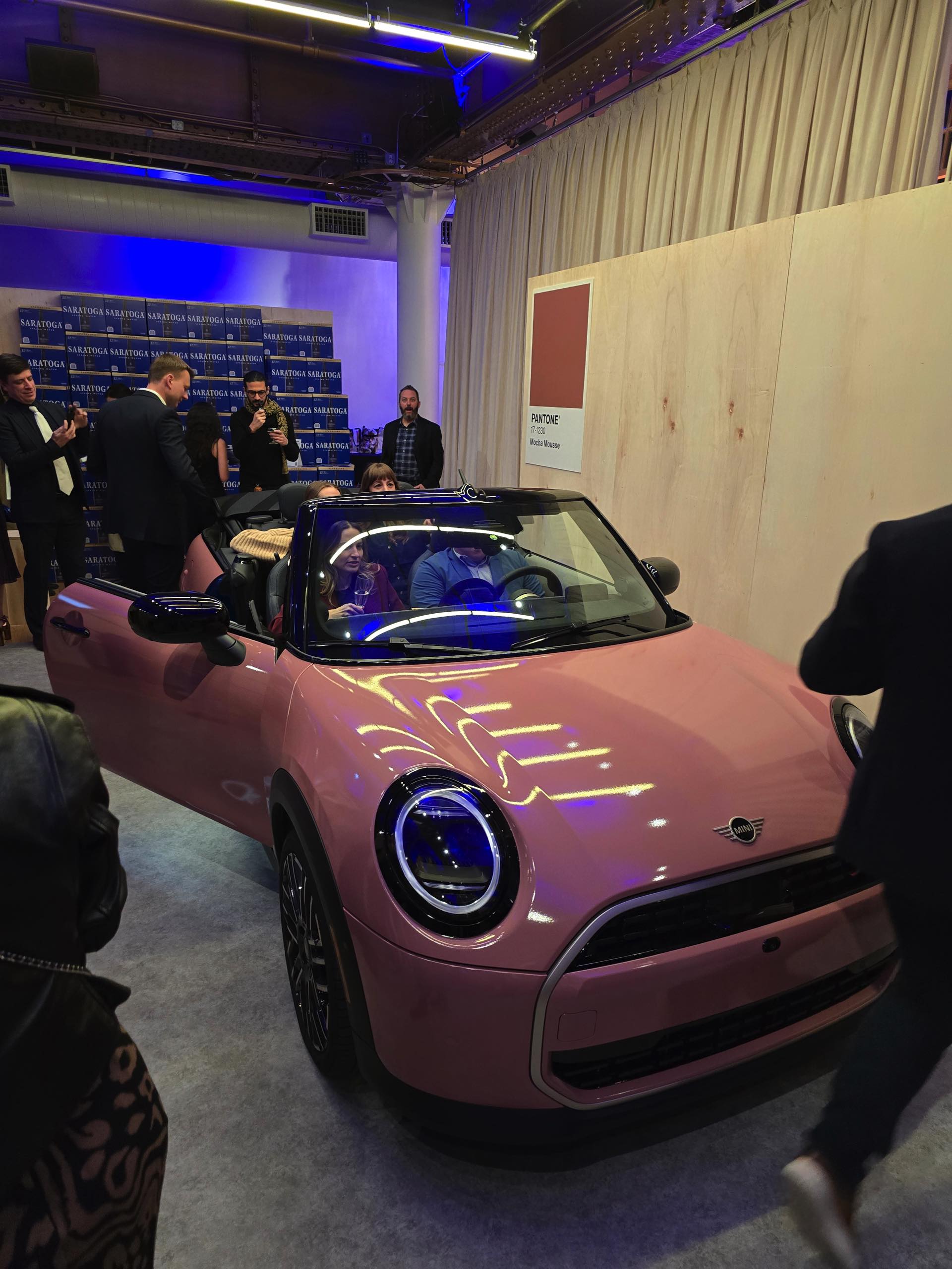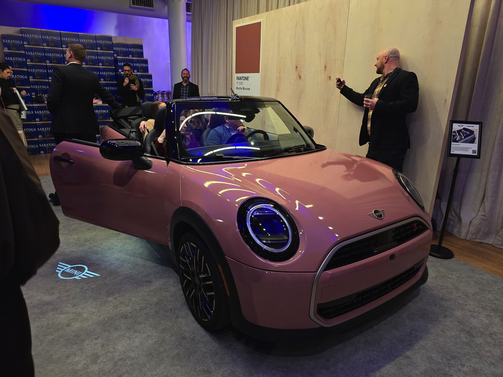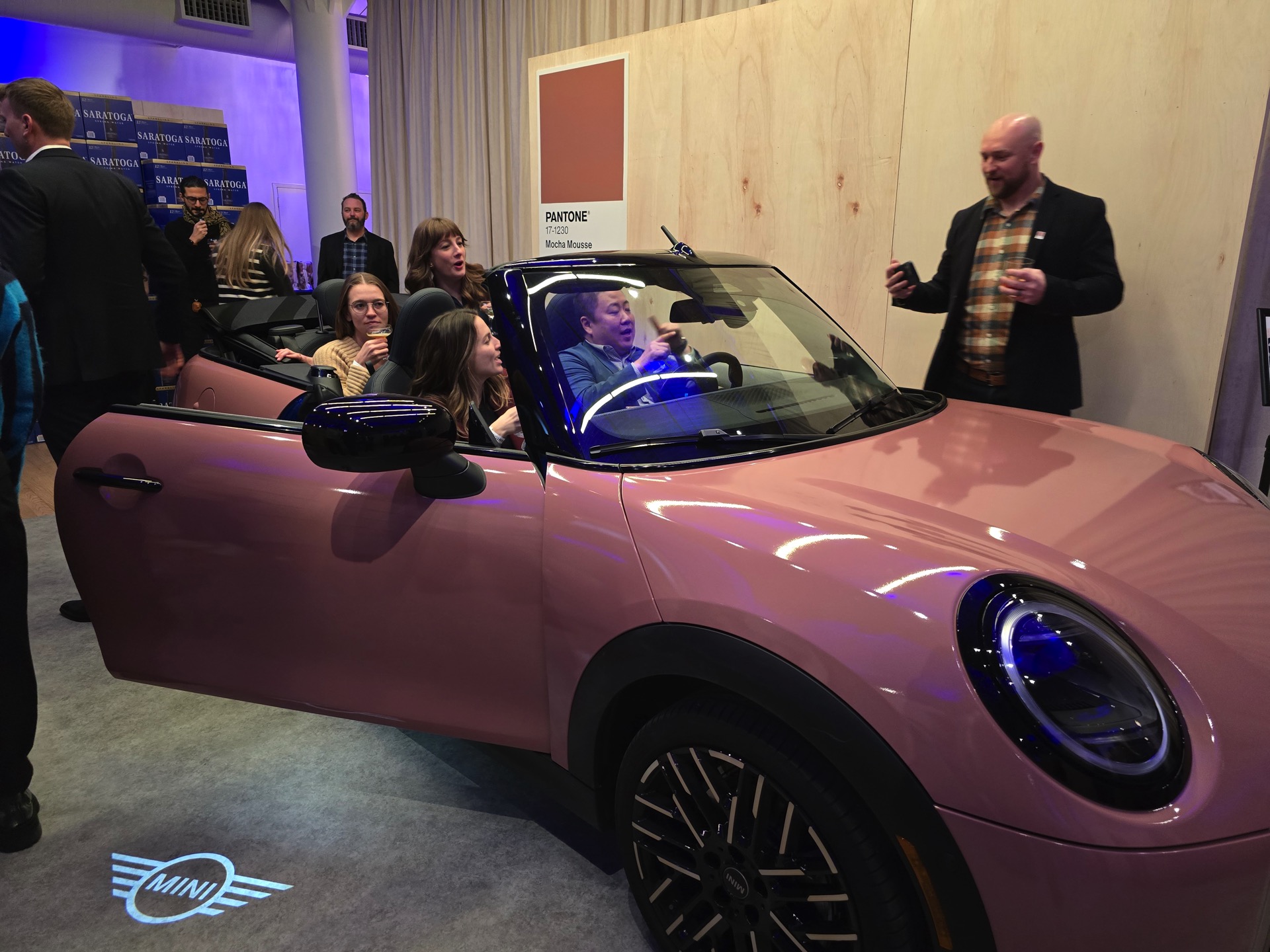 Beim Launch-Event in New York waren neben dem MINI Cabrio noch unzählige andere Objekte in Mocha Mousse gestaltet, aber der offene Kleinwagen war ohne Frage der größte Hingucker. Bei MINI wird Individualität seit Jahrzehnten besonders groß geschrieben, auch leuchtende Farben wie Chili Red, Blazing Blue, Sunny Side Yellow oder British Racing Green sind untrennbar mit dem Look des Briten verbunden. Das neue Cabriolet ist außerdem auch in Midnight Black, Nanuq White, Melting Silver, Indigo Sunset Blue, Icy Sunshine, Ocean Wave Green und Copper Grey erhältlich. "