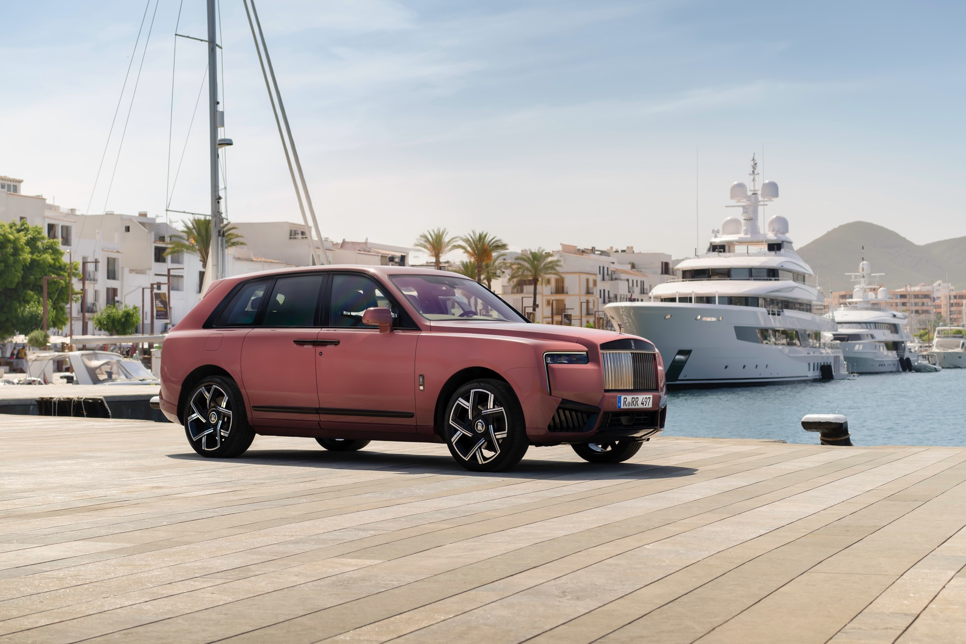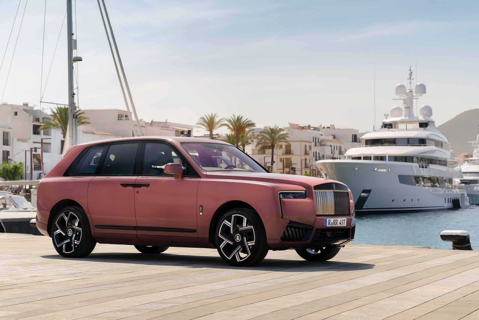 Auf aktuellen Fotos von der Balearen-Insel Ibiza sehen wir das Rolls-Royce Cullinan Black Badge Facelift in einer Sonderlackierung namens Morganite, die nach rosa schimmernden Edelsteinen benannt ist und natürlich auch selbst diesen Farbton aufgreift. Für alle Besitzer entsprechender Schmuckstücke wird es so möglich, das perfekte Farb-Zusammenspiel von Kleidung und Schmuck sogar auf das eigene Auto zu erweitern.