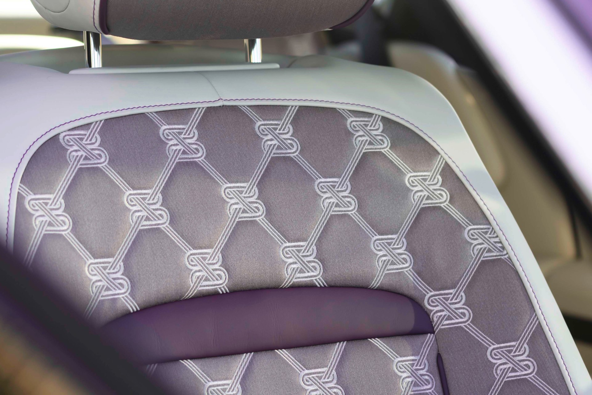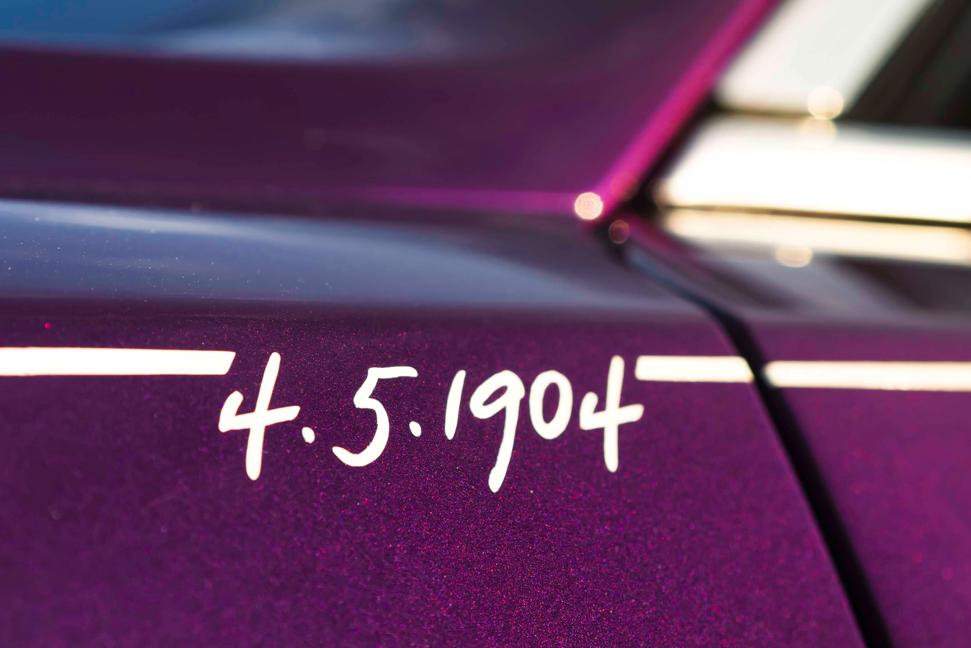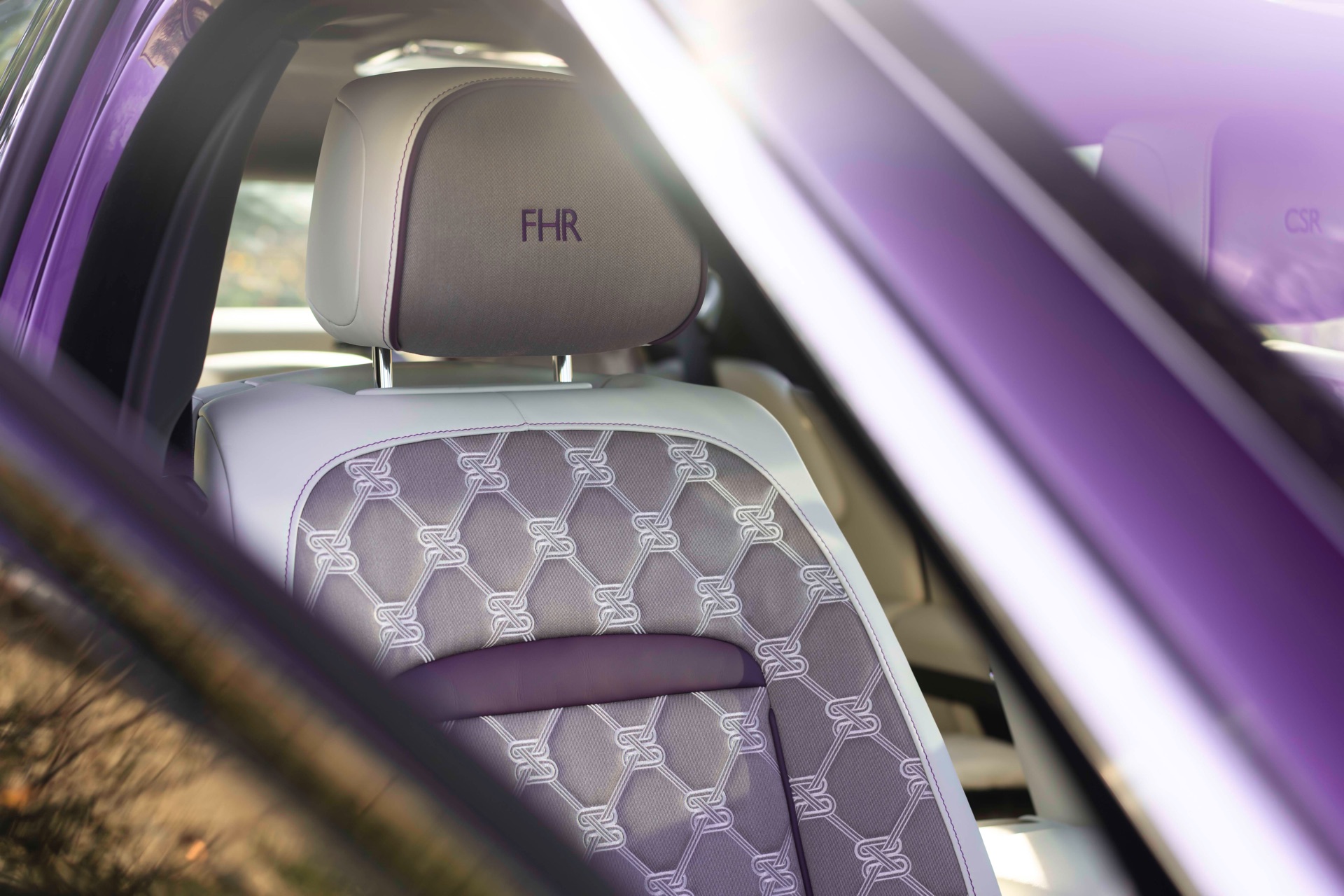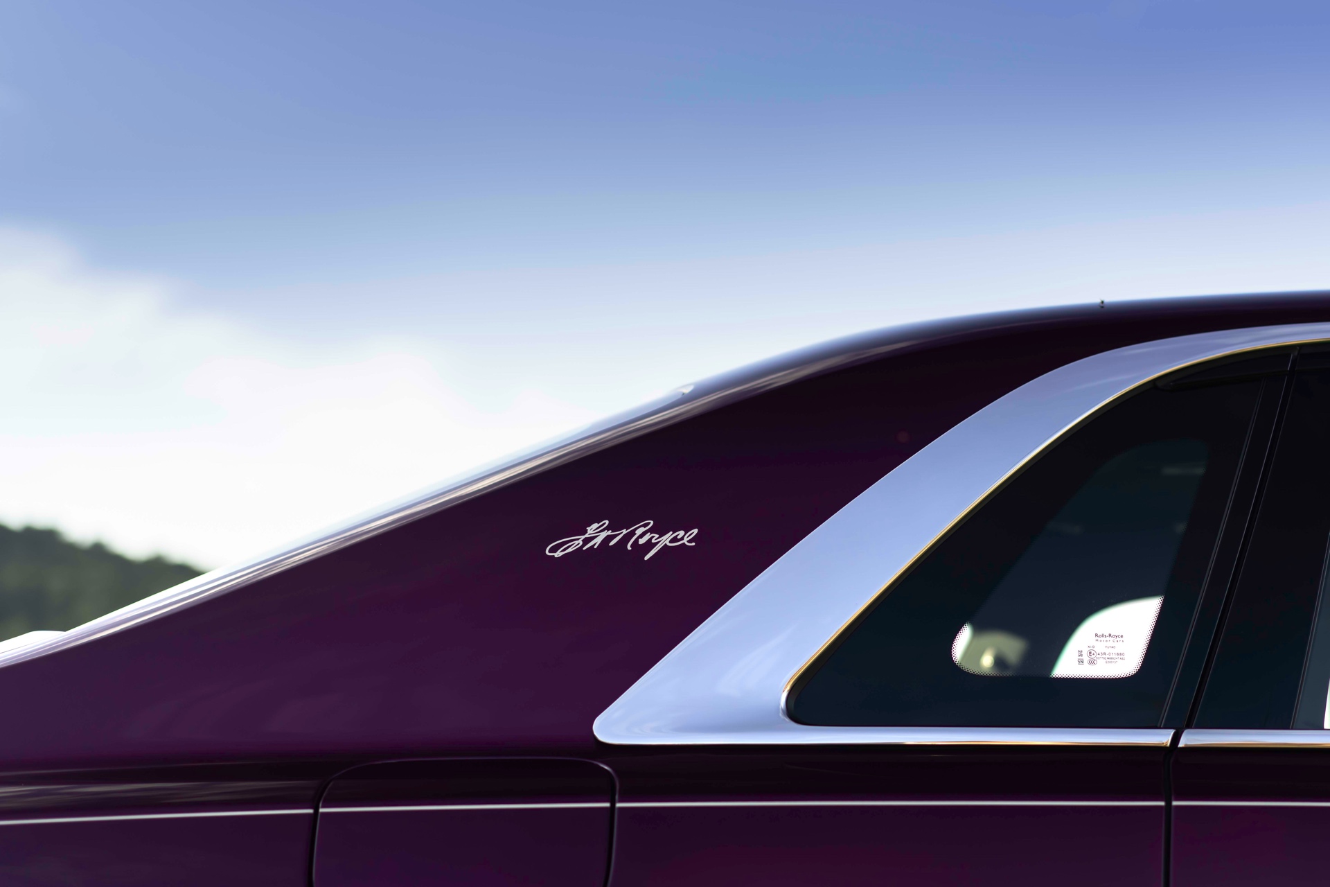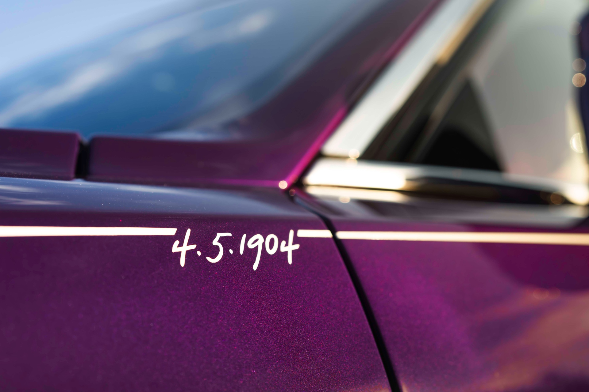 Die wie immer von Hand gezogene Coachline wird im Bereich des vorderen Kotflügels kurz für eine handschriftliche Datums-Angabe unterbrochen: Betont wird hier der 4. Mai 1904, an dem “The Encounter” stattfand. Auf den C-Säulen sind die Unterschriften von Charles Rolls und Henry Royce zu sehen und ehren die beiden Firmengründer ein weiteres Mal. Im Innenraum wird die Außenfarbe natürlich ein weiteres Mal aufgegriffen – und auch die Gründer spielen in Form ihrer Initialen wieder eine prominente Rolle: Die Abkürzungen FHR für Frederick Henry Royce und CSR für Charles Stewart Rolls finden sich als Stickereien in den vorderen Kopfstützen.
