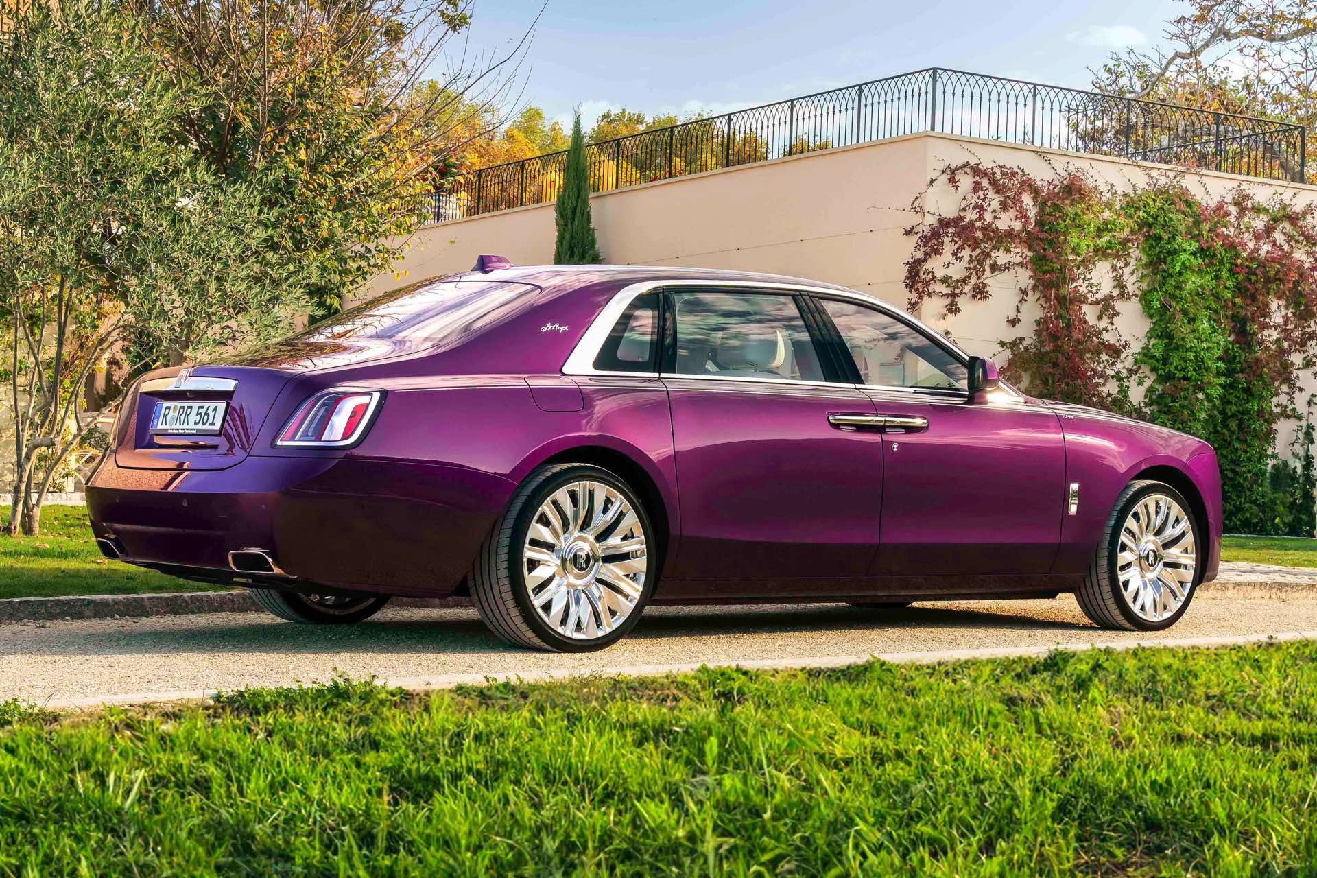 Ans Licht kommt der spezielle Rolls-Royce Ghost nun im Rahmen einer Zusammenstellung besonders interessanter Bespoke-Projekte des beinahe schon vergangenen Jahres 2024. Wir erhalten so einige Eindrücke von einem einzigartigen Rolls-Royce Ghost Series II, wobei natürlich die Version mit langem Radstand (Extended Wheelbase) als Basis diente. Die über 5,70 Meter lange Luxuslimousine trägt eine extrem auffällige Lackierung in Twilight Purple, die wir zuletzt auch auf einem Rolls-Royce Cullinan und zuvor bereits auf diversen BMW-Modellen gesehen haben.