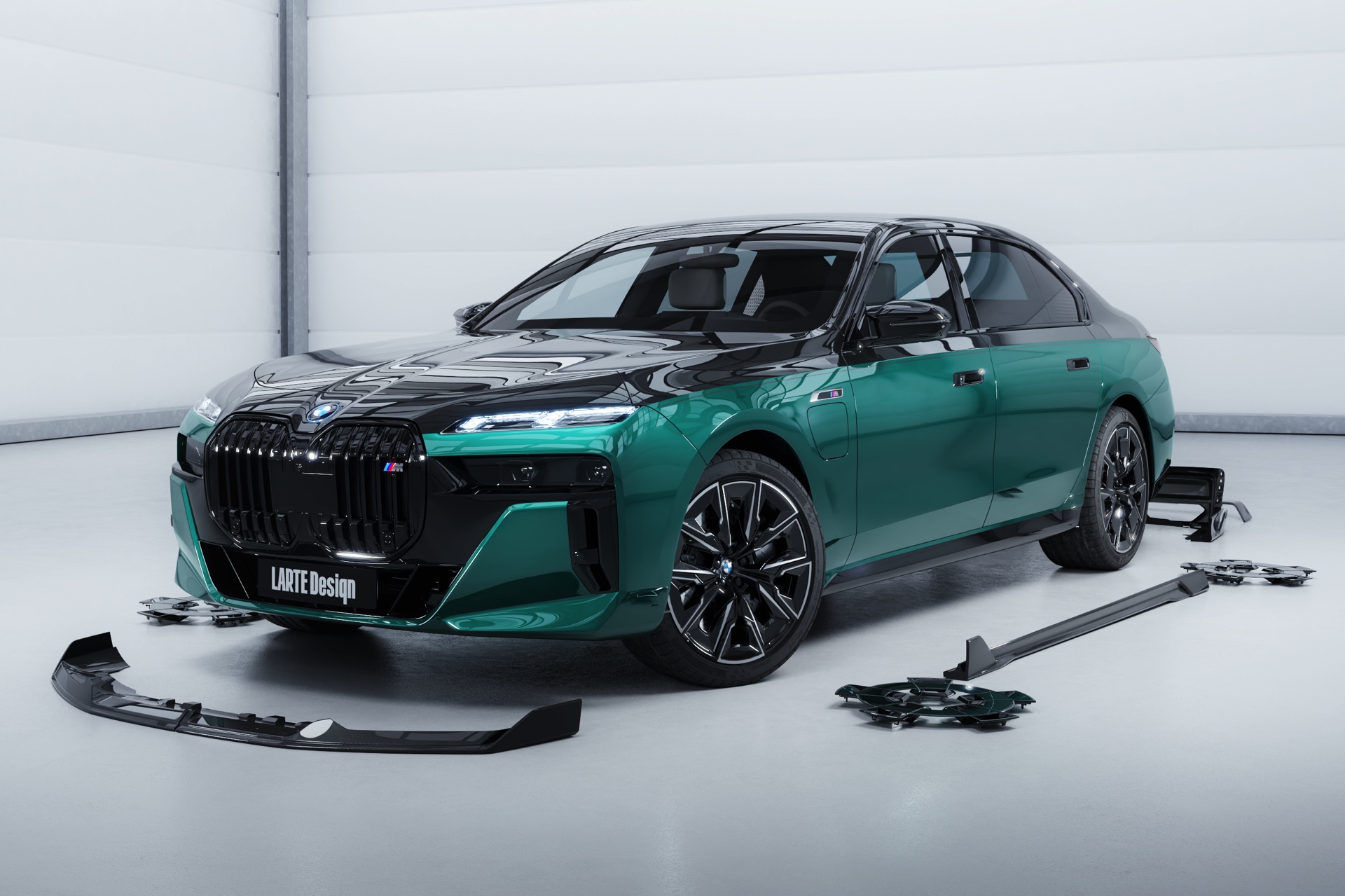 Auch Jahre nach seinem Marktstart haben der aktuelle BMW 7er (G70) und sein elektrischer Bruder i7 nichts von ihrer Exklusivität eingebüßt: Die fast 5,40 Meter lange Luxuslimousine bietet aus jedem Blickwinkel einen einzigartigen Look, bei dem Verwechslungen mit anderen Baureihen praktisch ausgeschlossen sind. Wer sich dennoch nach mehr Individualität sehnt, erhält nun ein sportlich-brachiales Angebot von Larte Design: Die Tuning-Experten aus Ratingen haben auf Basis der M Sportpaket-Schürzen ein ganzes Bodykit aus Aerodynamik-Anbauteilen entwickelt, das den 7er auf das nächste Level hebt.