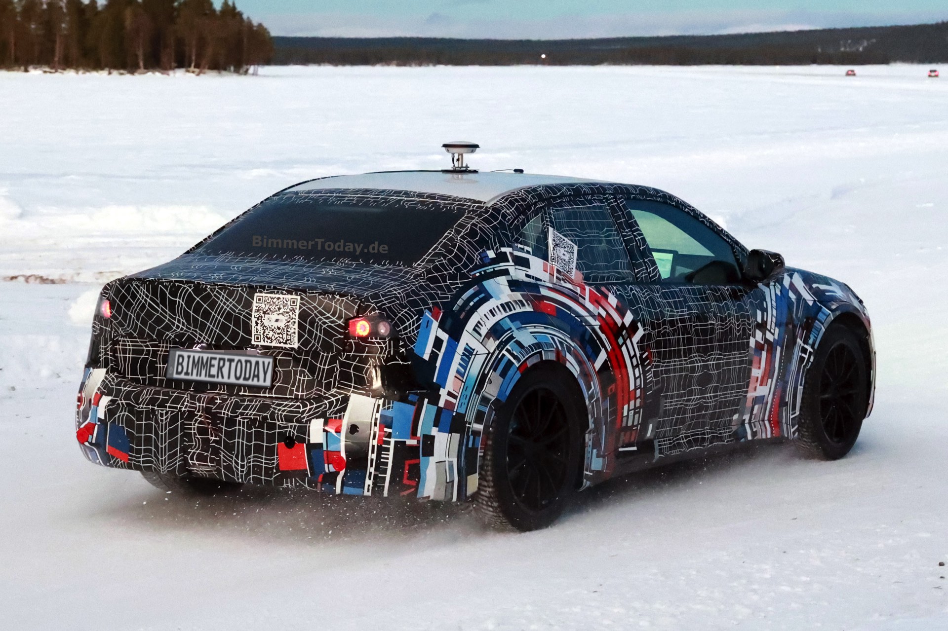 Im tiefen Winter Lapplands wird der erste elektrische BMW M3 (ZA0) weiter in Richtung Serienreife entwickelt. Die Power-Limousine auf Basis der Neuen Klasse (i3 NA0) muss im hohen Norden nicht nur die Winter-Tauglichkeit sämtlicher Antriebs-Komponenten unter Beweis stellen, mindestens ebenso wichtig ist die Abstimmung von Regelsystemen und Kraftverteilung. Die zugefrorenen Seen in der Nähe des BMW Testzentrums Arjeplog bieten hierfür ideale Voraussetzungen, denn sie erlauben reproduzierbare Tests auf Untergründen mit extrem niedrigem Reibwert.