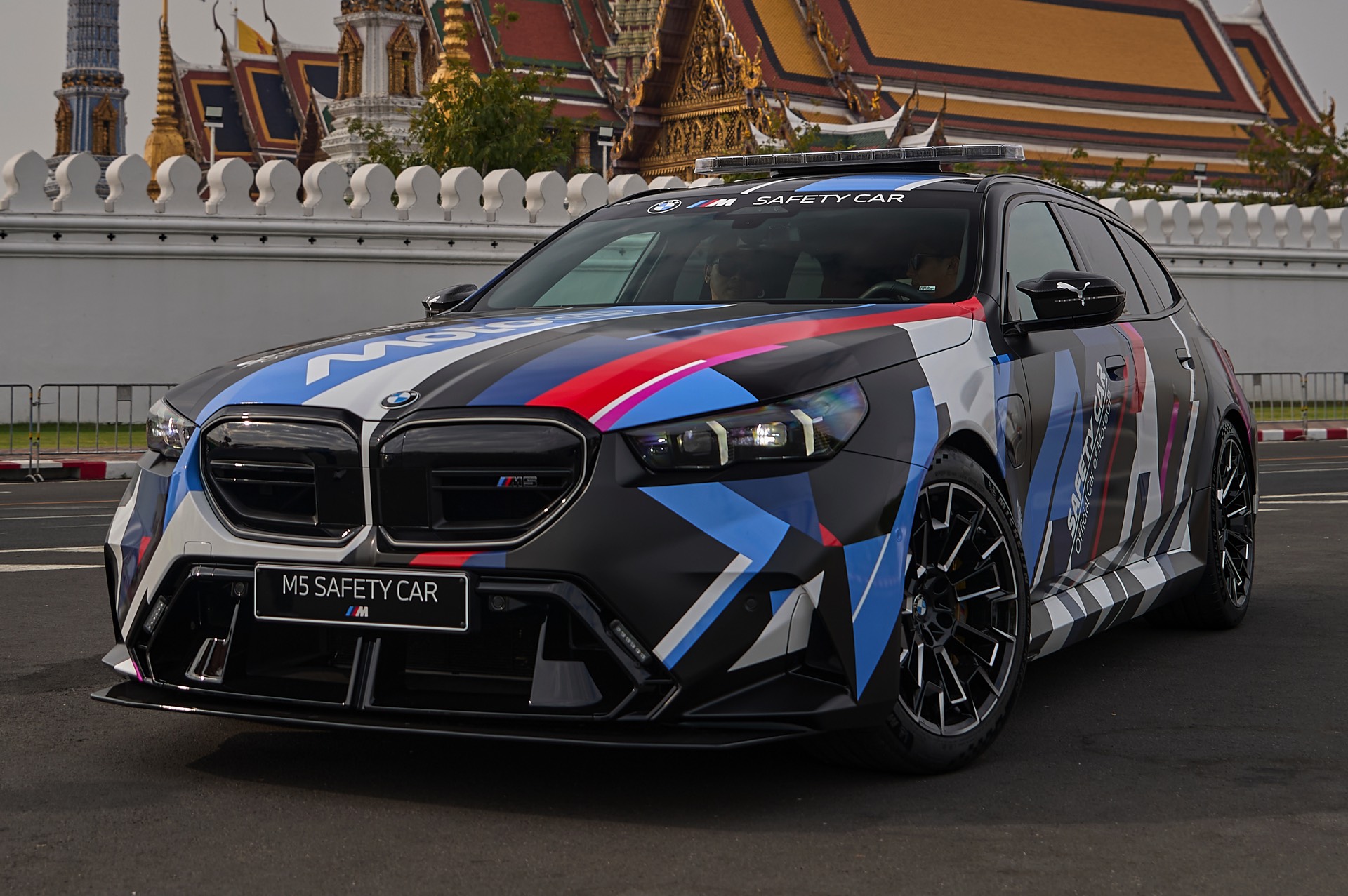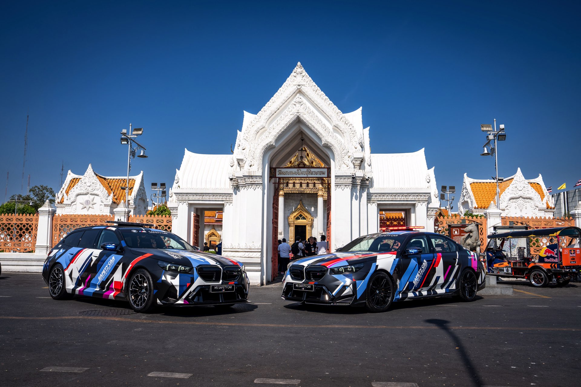 Die neue Saison der MotoGP 2025 steht vor den Türen und lieferte den Fans ein spektakuläres Season Launch-Event in Bangkok. Neben den extremen Superbikes der Königsklasse des Motorrad-Rennsports durften dabei natürlich auch die Safety Cars nicht fehlen – und die sorgten nicht nur mit ihren Lichtern auf dem Dach für Aufsehen: Für viele Fans war es der erste reale Kontakt mit dem neuen BMW M5 Touring (G99), der mit seiner Kombination aus Kraft und Platz ein ideales Paket für die Rolle als Safety Car der MotoGP darstellt.