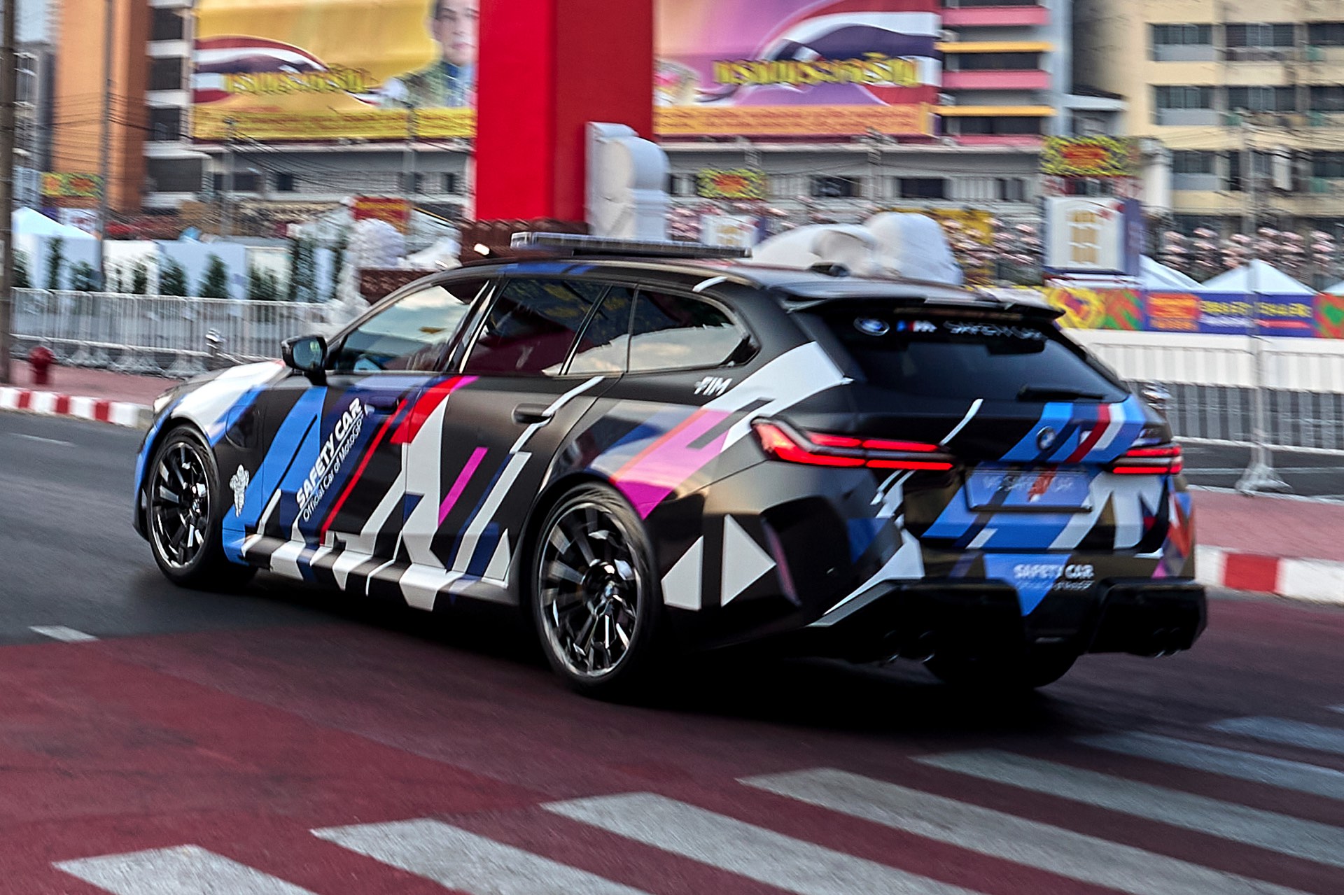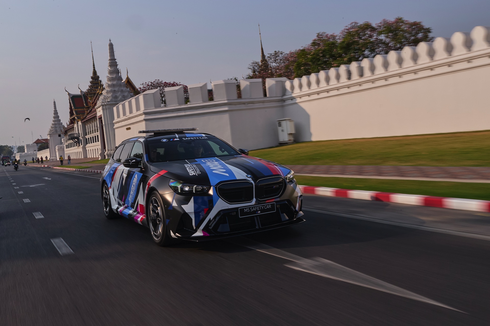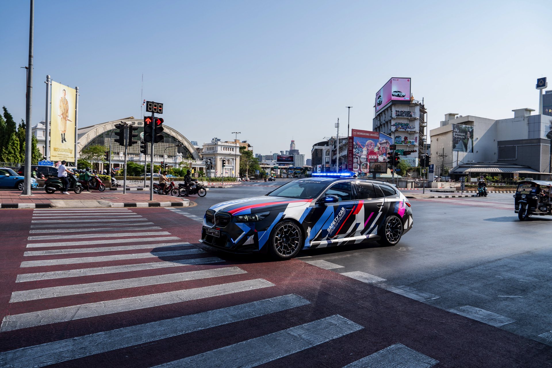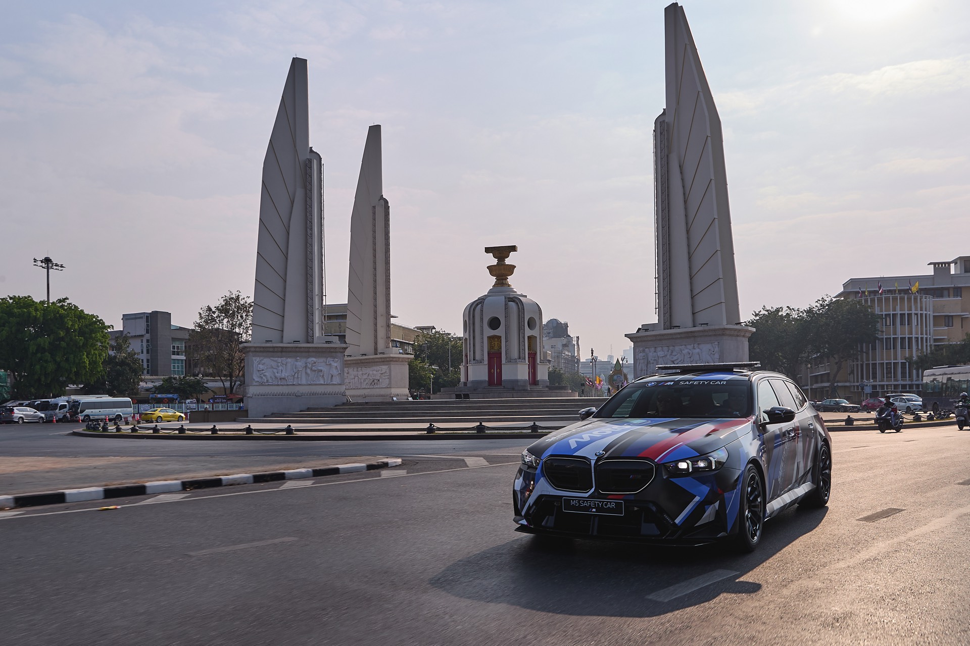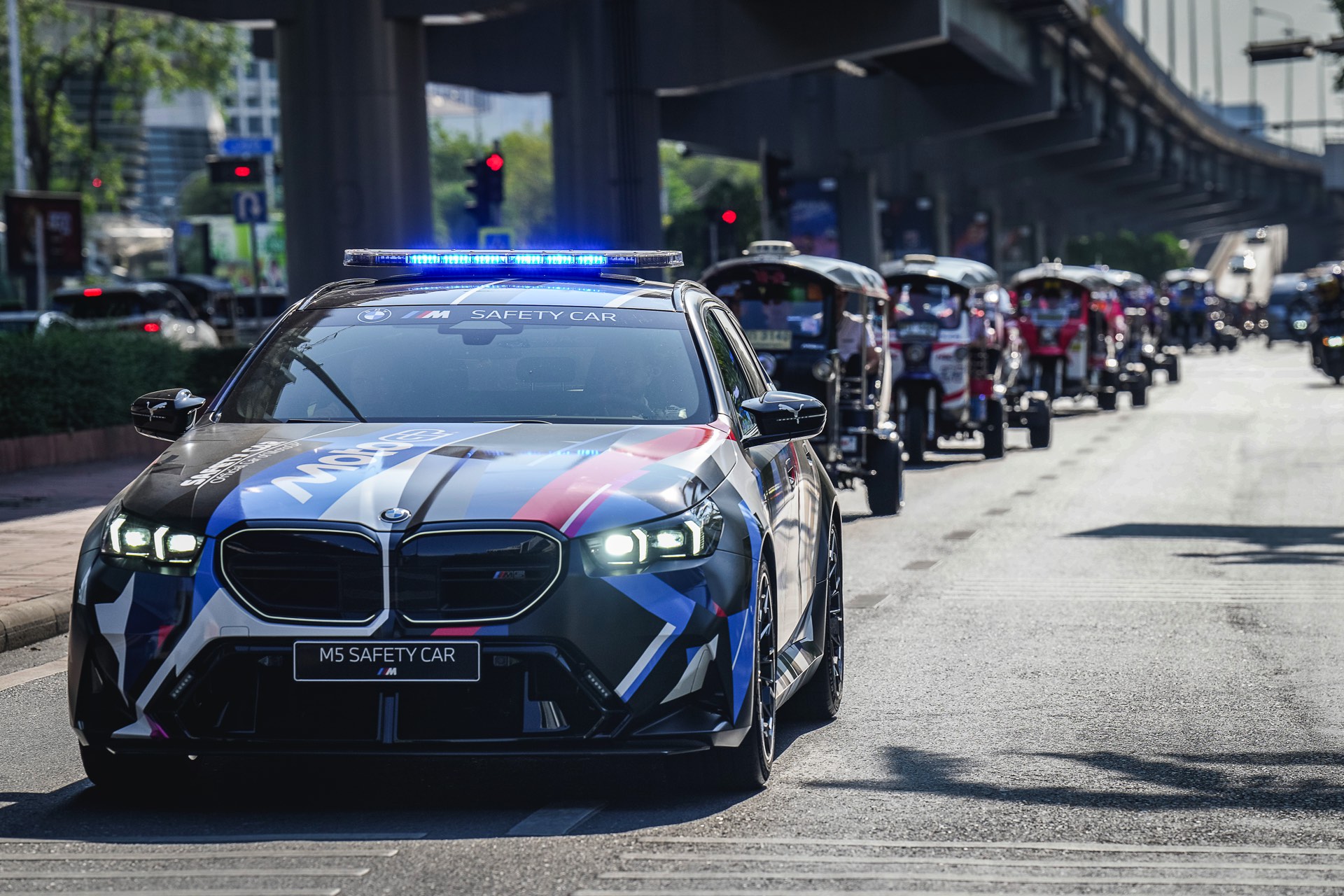 Wenn nicht der volle Raum von bis zu 1.630 Litern Kofferraumvolumen des Touring benötigt wird, gibt es mit der BMW M5 Limousine (G90) eine noch etwas schnellere Alternative für die Safety Car-Fahrer. Die beiden Garchinger fuhren an der Spitze des MotoGP-Korsos und führten die Piloten sicher und geordnet durch die thailändische Hauptstadt. Im vollen Renntempo präsentiert sich das Feld in etwas mehr als zwei Wochen beim Grand Prix von Thailand auf dem Chang International Circuit, der rund fünf Stunden östlich von Bangkok gelegen ist.