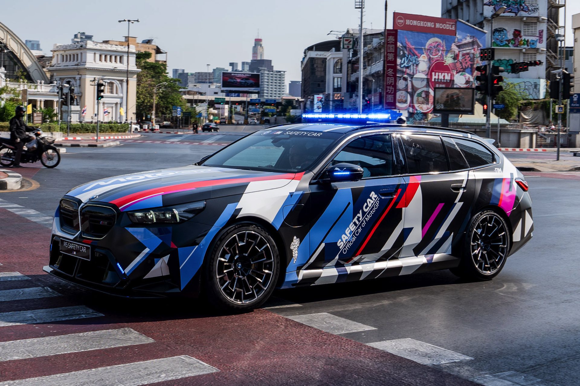 Axel Mittler (Marketing Manager bei der BMW M GmbH): “Der MotoGP™ Season Launch in Bangkok war ein fantastisches Event und wir freuen uns sehr, dass wir auf dieser großartigen Bühne unser neues BMW M5 Touring MotoGP™ Safety Car präsentieren konnten. Mit diesem neuen Safety Car setzen wir unser Streben fort, immer die neuesten Technologien in den Dienst der Sicherheit in der MotoGP™ zu stellen. Wie das BMW M5 MotoGP™ Safety Car verfügt auch die Touring-Variante über einen M HYBRID Antrieb, bei dem ein hochdrehendes V8-Triebwerk von einer E-Maschine mit extrem spontaner Kraftentfaltung unterstützt wird. Ob als Limousine oder Touring – unsere BMW M5 MotoGP™ Safety Cars überzeugen mit Dynamik und Agilität und sind damit perfekt geeignet für ihren Einsatz auf der Rennstrecke.”