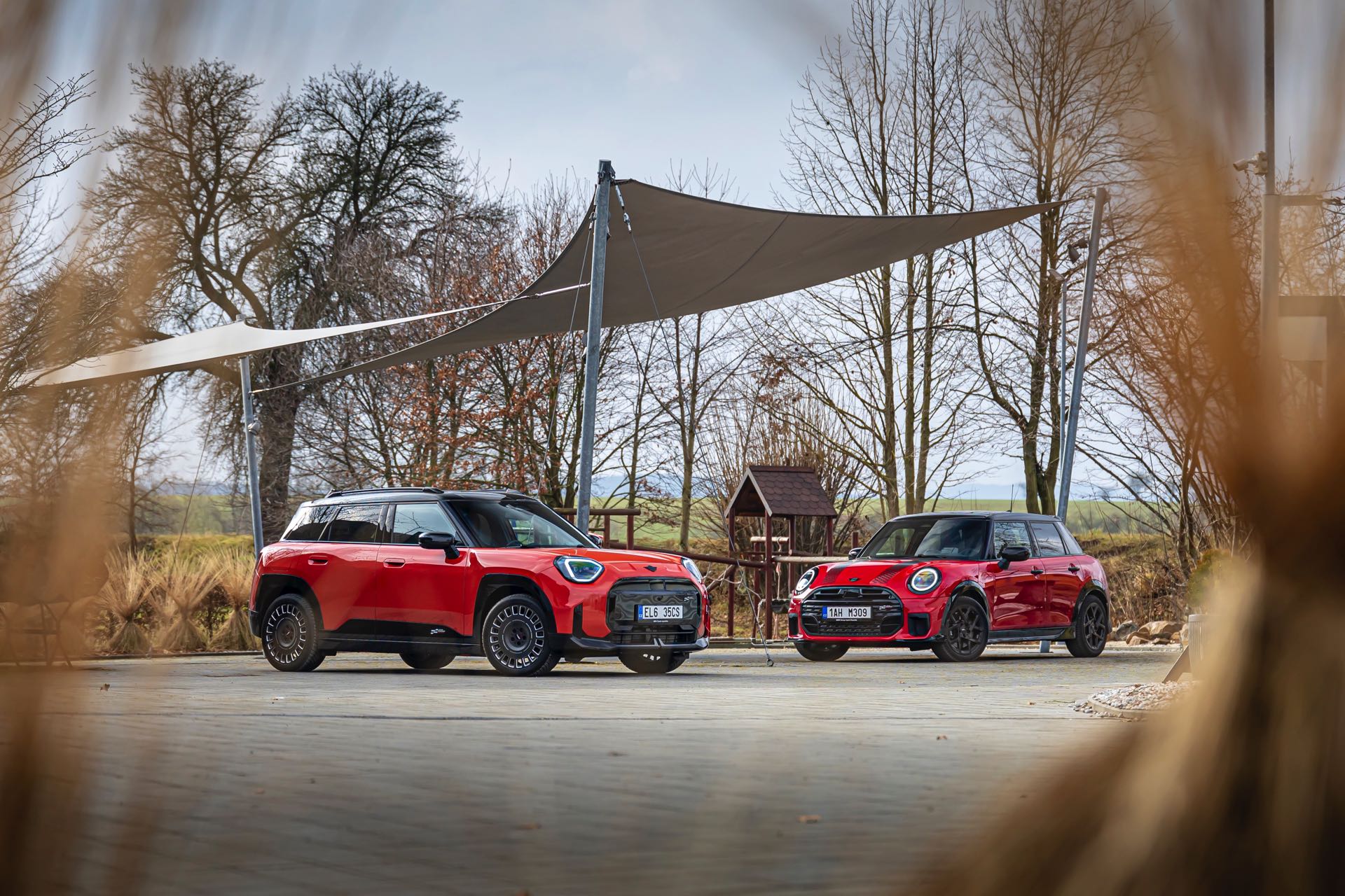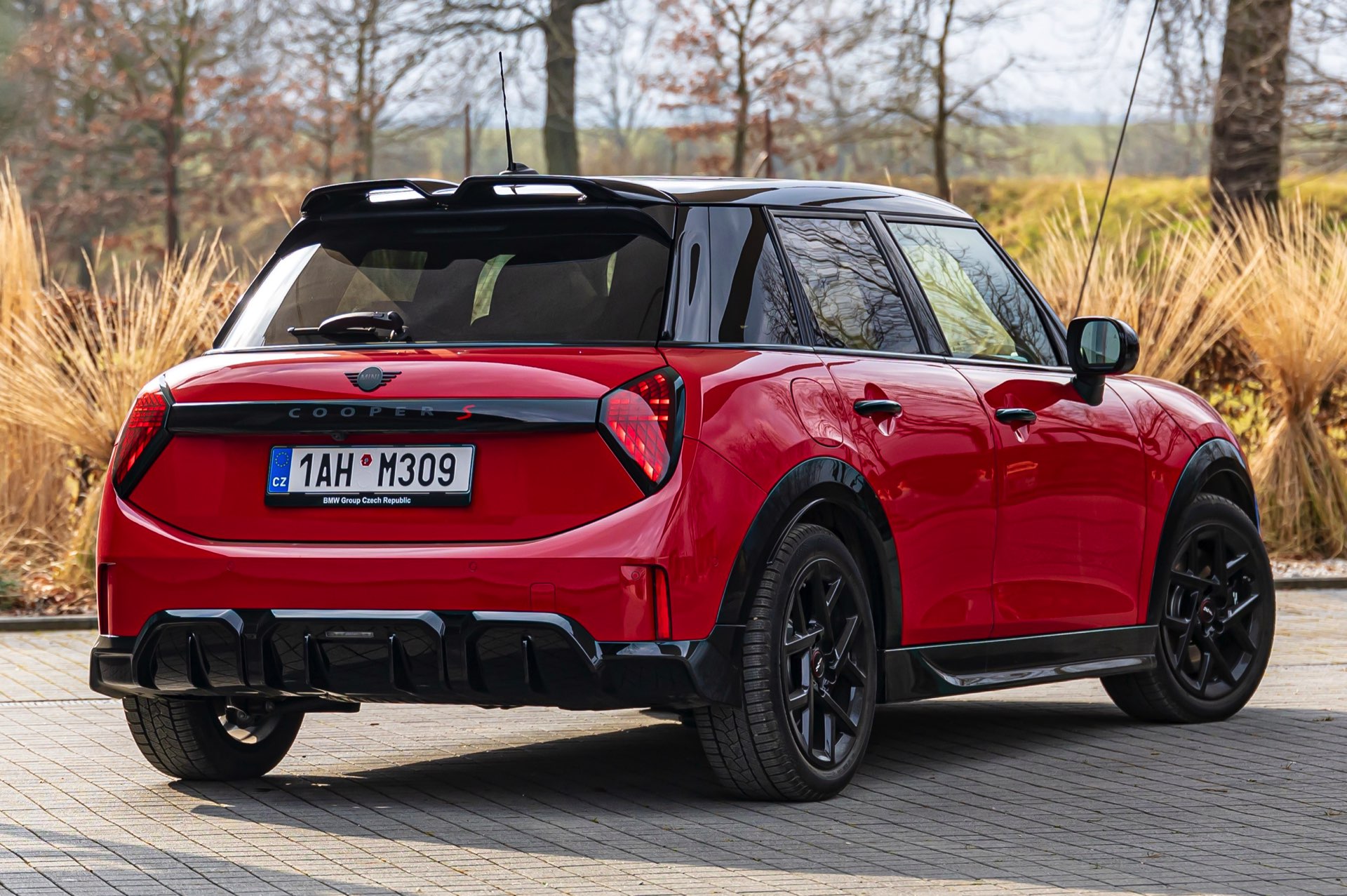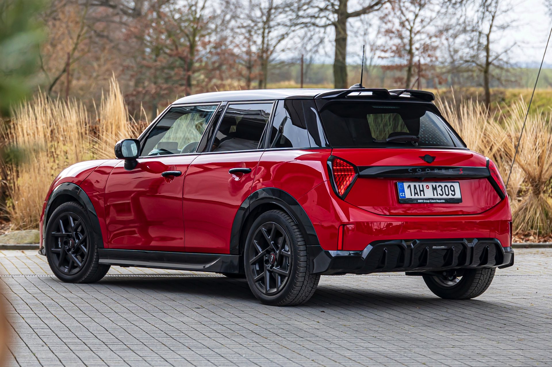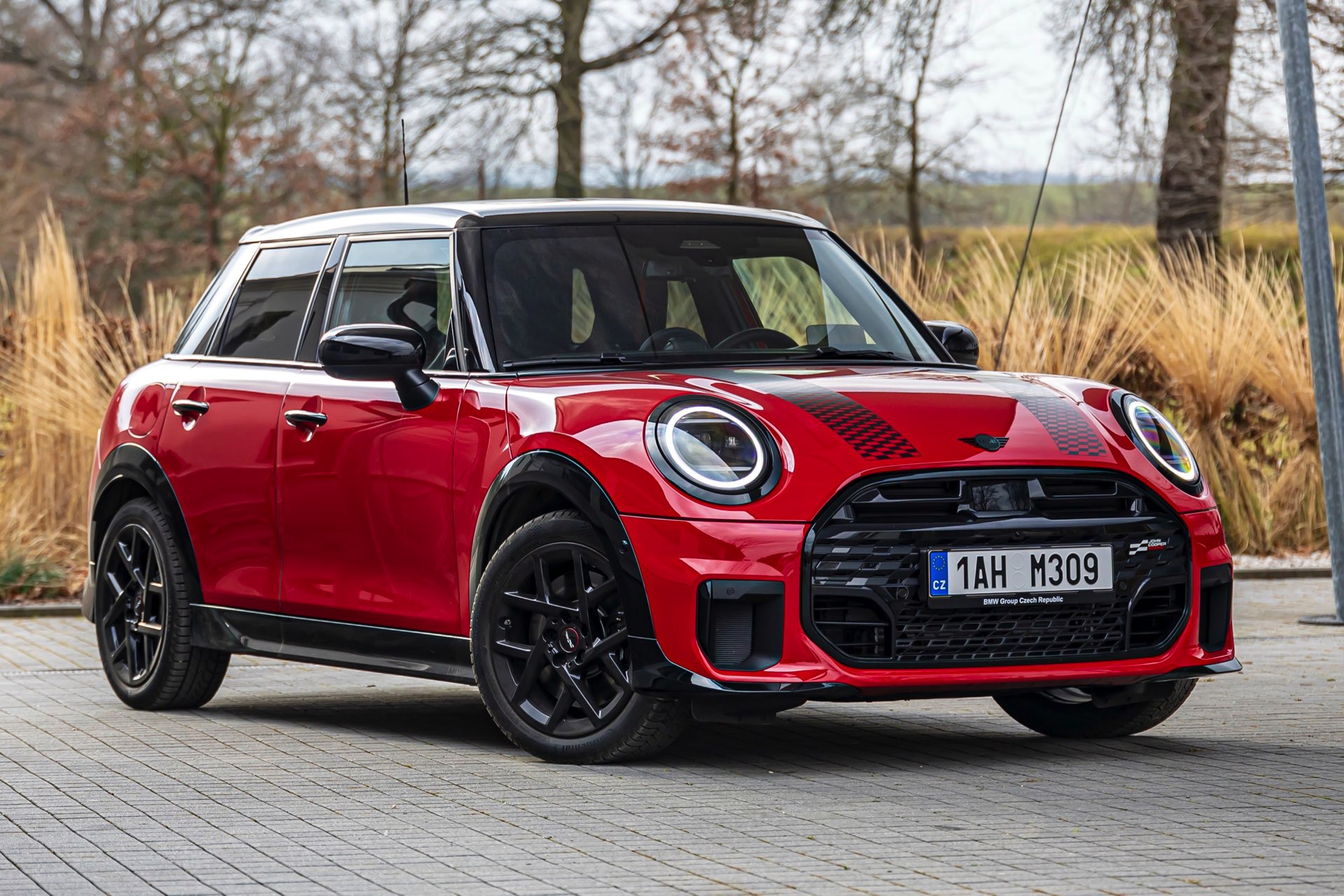 Dass es neben vielen Gemeinsamkeiten auch beim Design einige Unterschiede gibt, zeigt ein aktuelles Foto-Set aus der Tschechischen Republik. Auf den Fotos sehen wir sowohl den MINI Aceman als auch den MINI 5-Türer mit John Cooper Works-Paket und roter Lackierung, sodass sich beide Modelle gut miteinander vergleichen lassen. Der 4,3 Zentimeter kürzere und zudem 5 Zentimeter flachere Fünftürer (Kennzeichen 1AH M309) ist anhand seiner kreisrunden Front-Scheinwerfer und der annähernd dreieckigen Rückleuchten auch für Laien gut vom etwas größeren und mit insgesamt kantigeren Formen kommenden Aceman (Kennzeichen EL6 35CS) zu unterscheiden.
