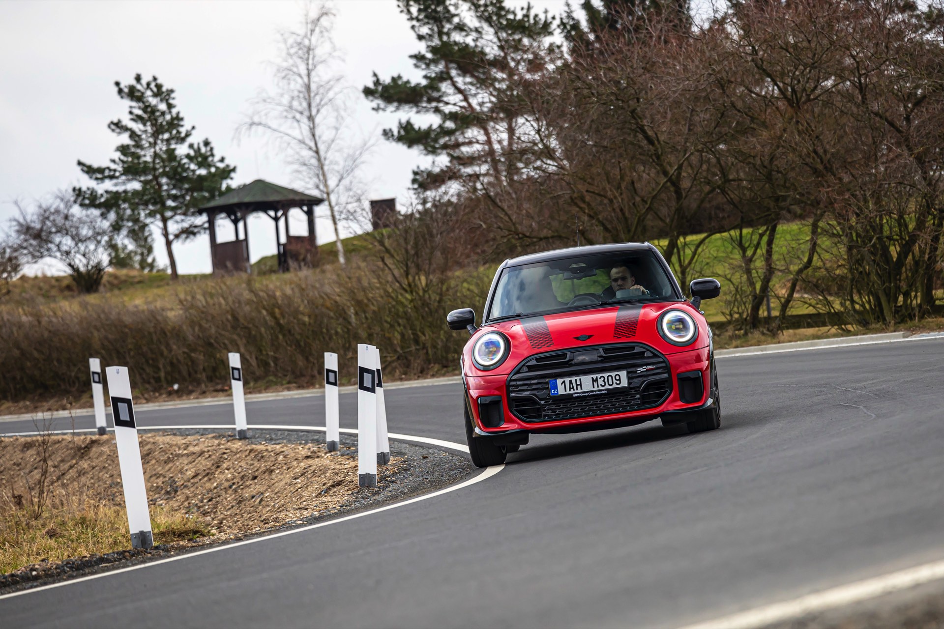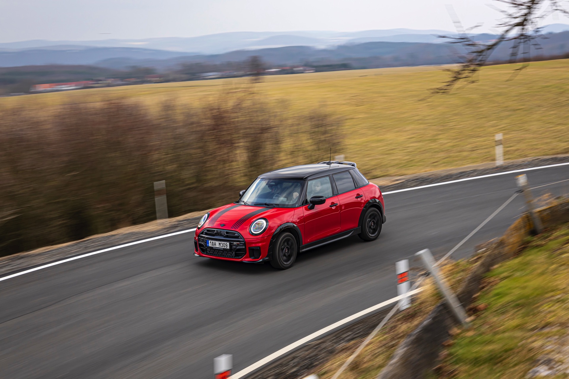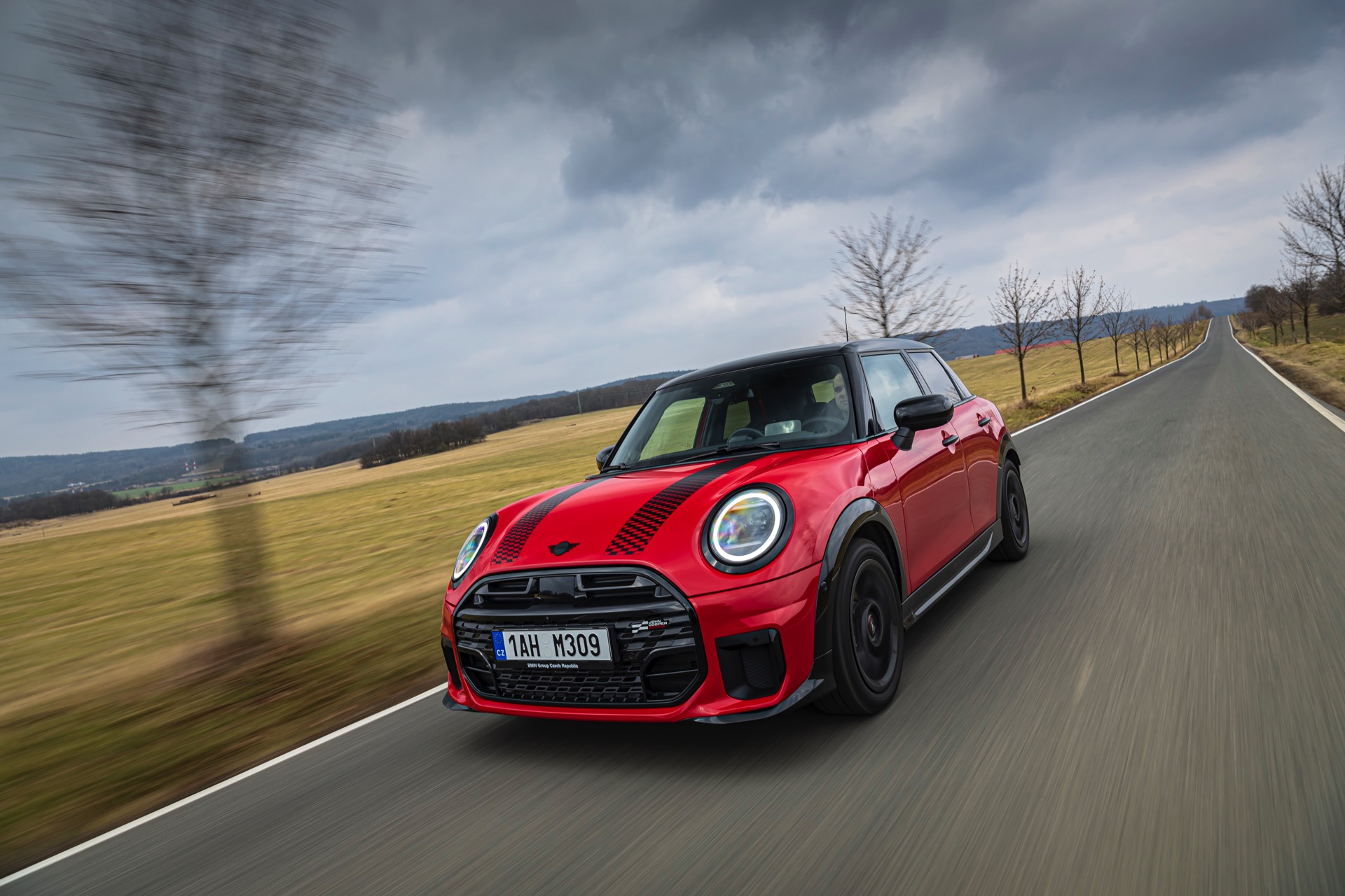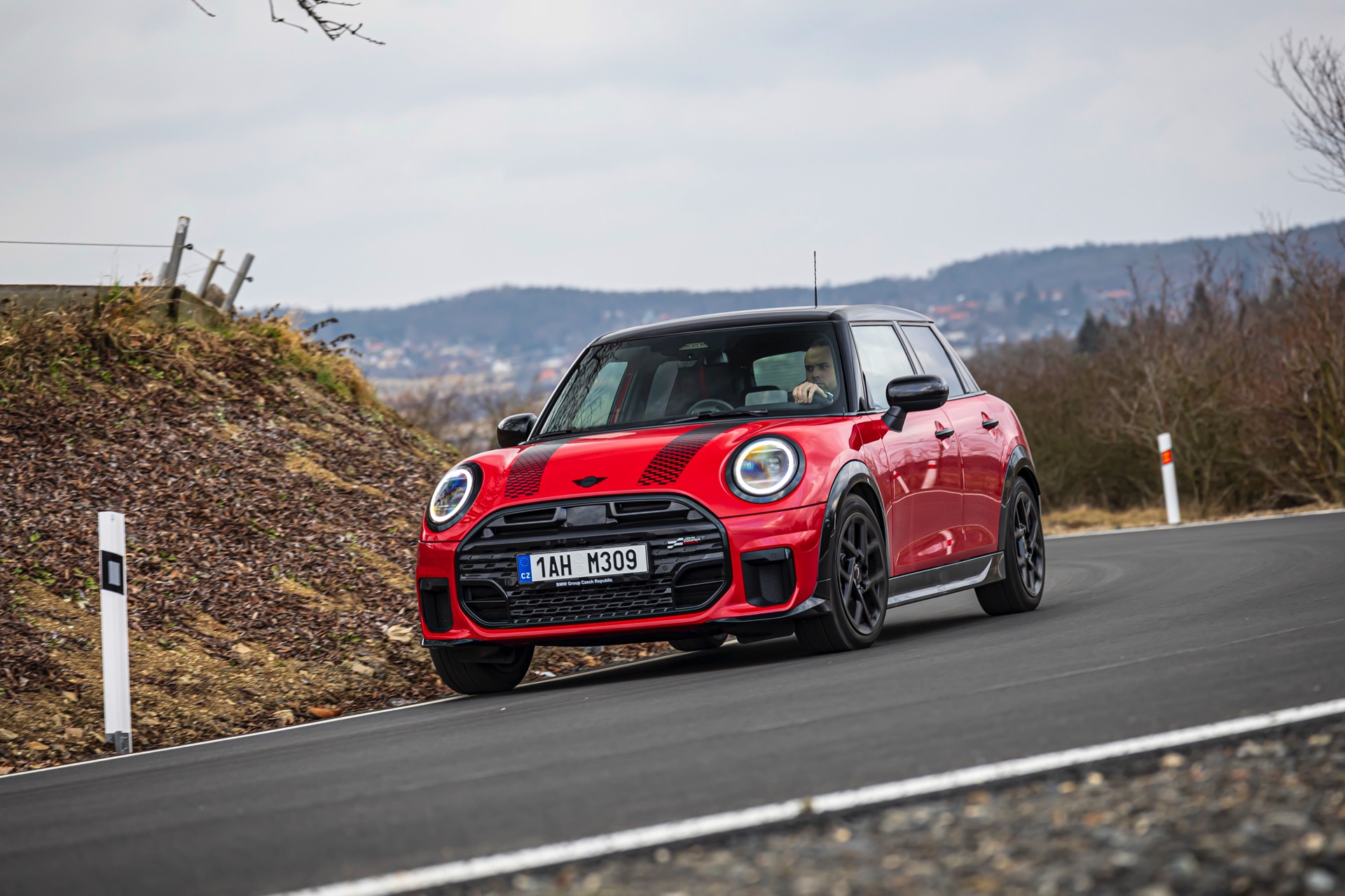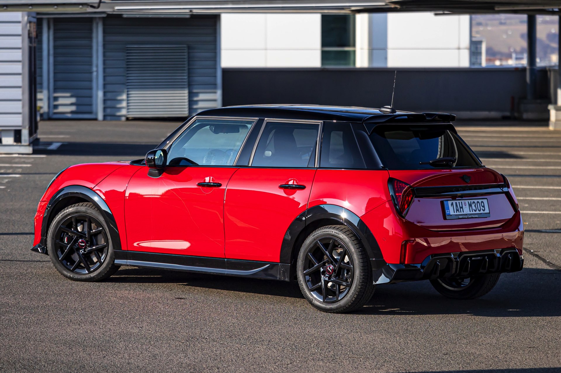 Dass es neben vielen Gemeinsamkeiten auch beim Design einige Unterschiede gibt, zeigt ein aktuelles Foto-Set aus der Tschechischen Republik. Auf den Fotos sehen wir sowohl den MINI Aceman als auch den MINI 5-Türer mit John Cooper Works-Paket und roter Lackierung, sodass sich beide Modelle gut miteinander vergleichen lassen. Der 4,3 Zentimeter kürzere und zudem 5 Zentimeter flachere Fünftürer (Kennzeichen 1AH M309) ist anhand seiner kreisrunden Front-Scheinwerfer und der annähernd dreieckigen Rückleuchten auch für Laien gut vom etwas größeren und mit insgesamt kantigeren Formen kommenden Aceman (Kennzeichen EL6 35CS) zu unterscheiden.