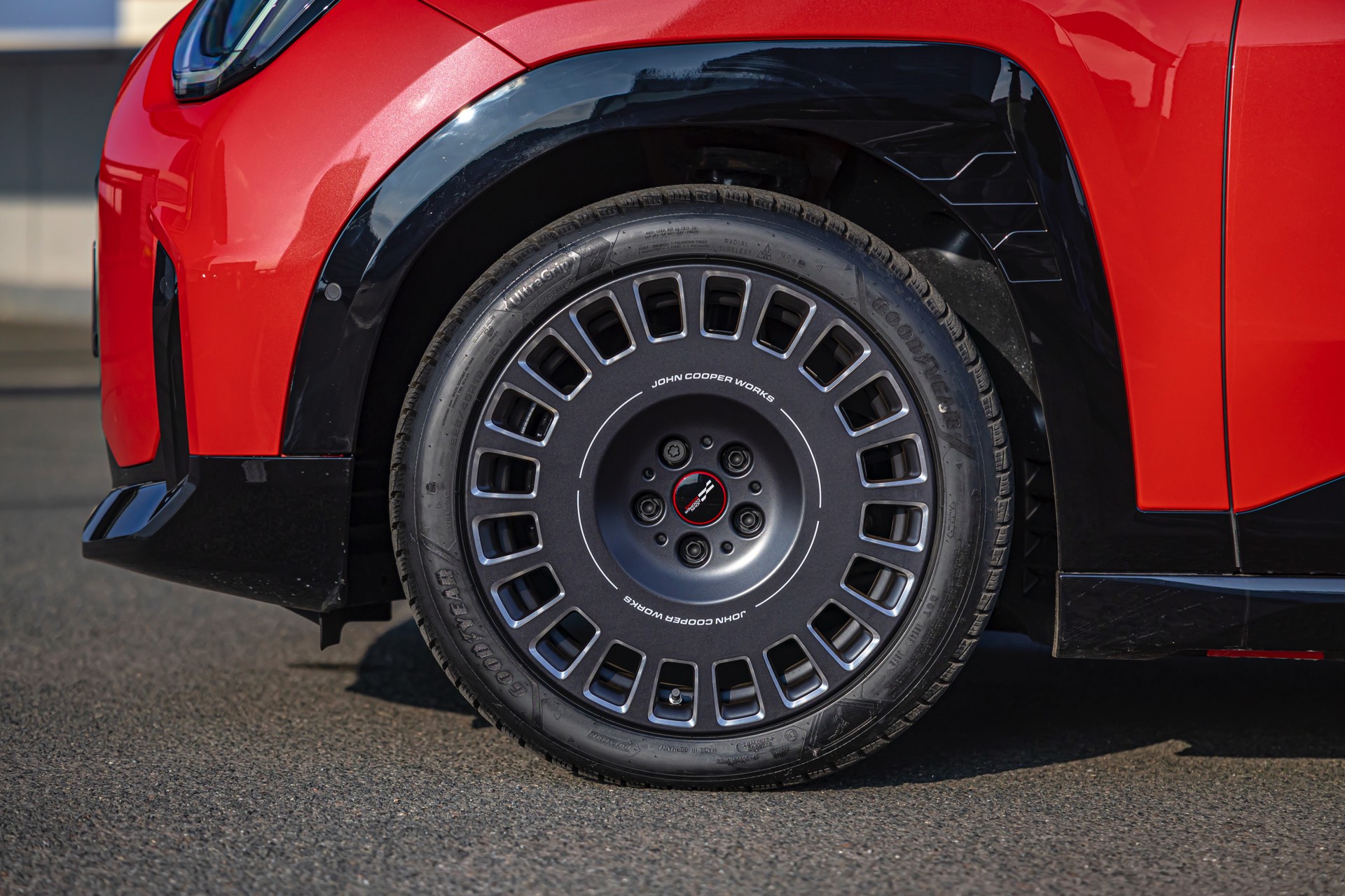 Der kleinere MINI Cooper S Fünftürer steht auf 17 Zoll großen Felgen vom Typ John Cooper Works Sprint Spoke black, der größere Aceman S darf mit den 18 Zoll großen JCW Rallye Spoke 992 auch die etwas größeren Räder tragen.
