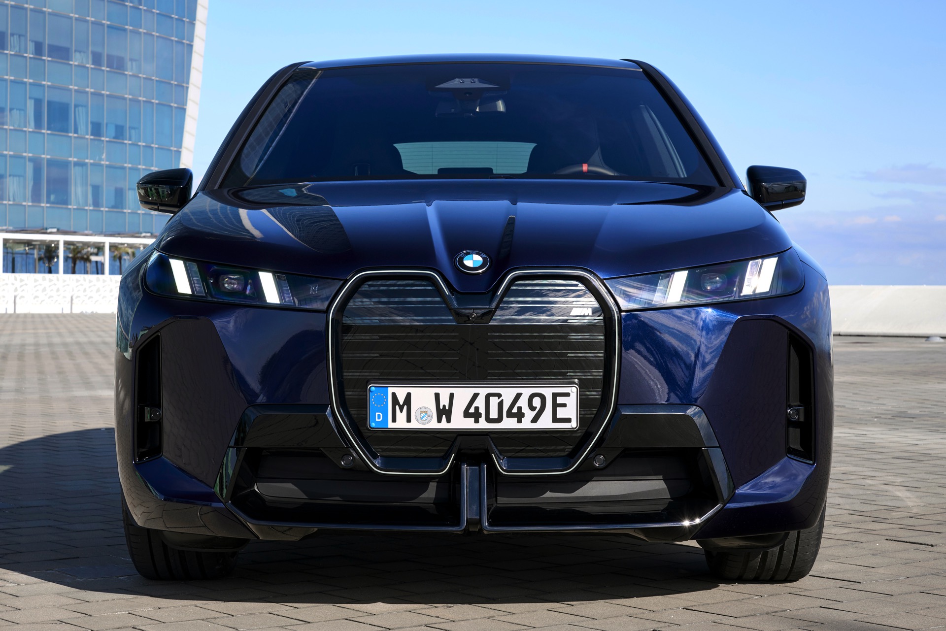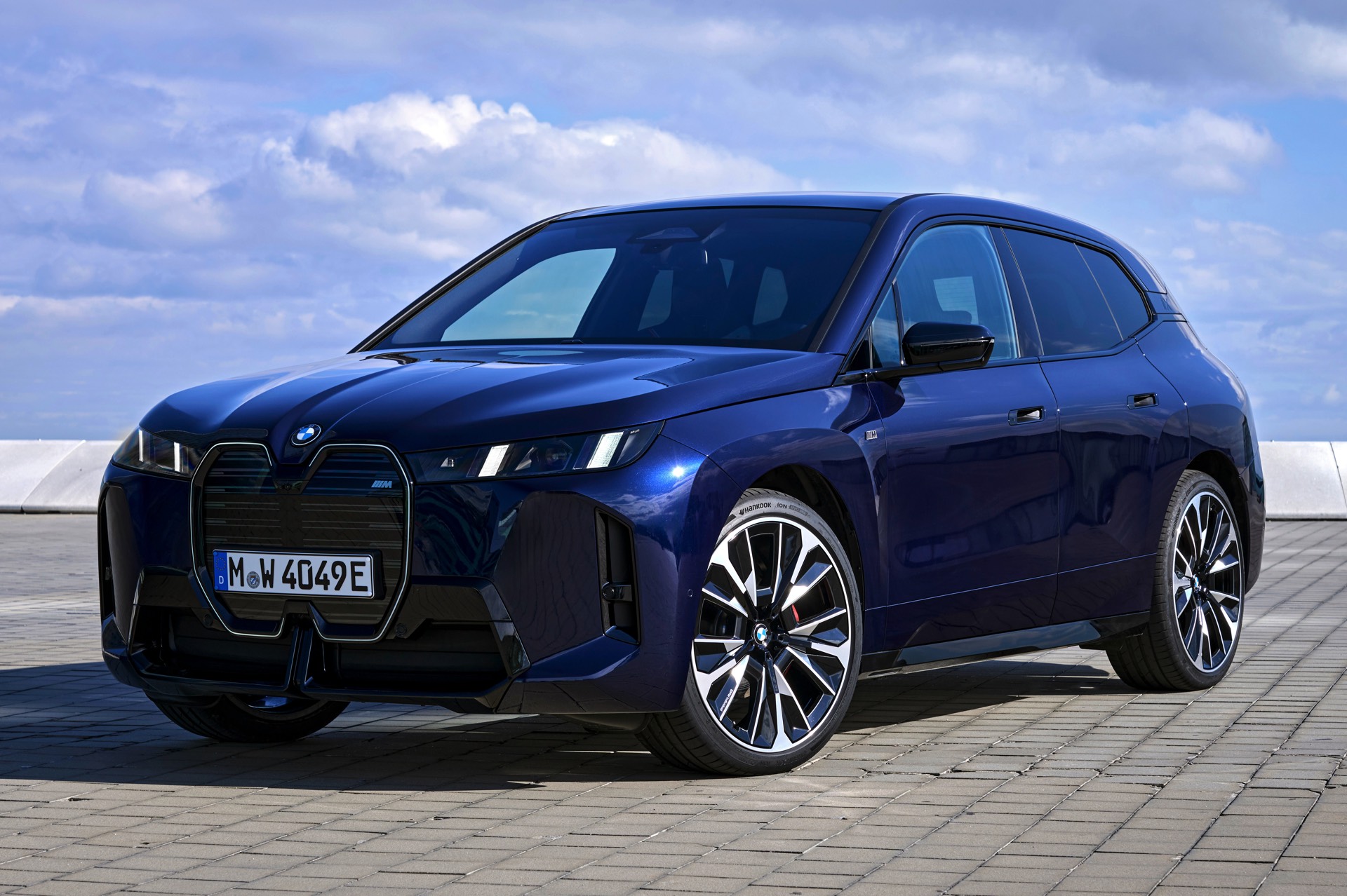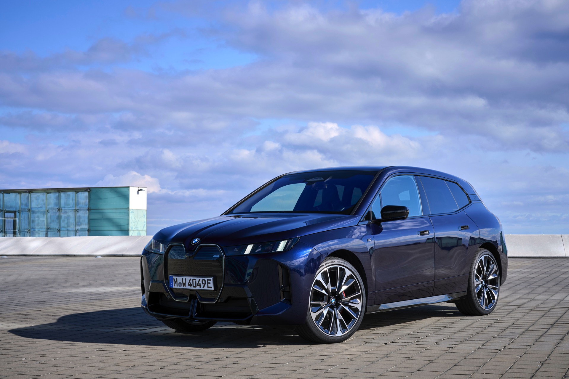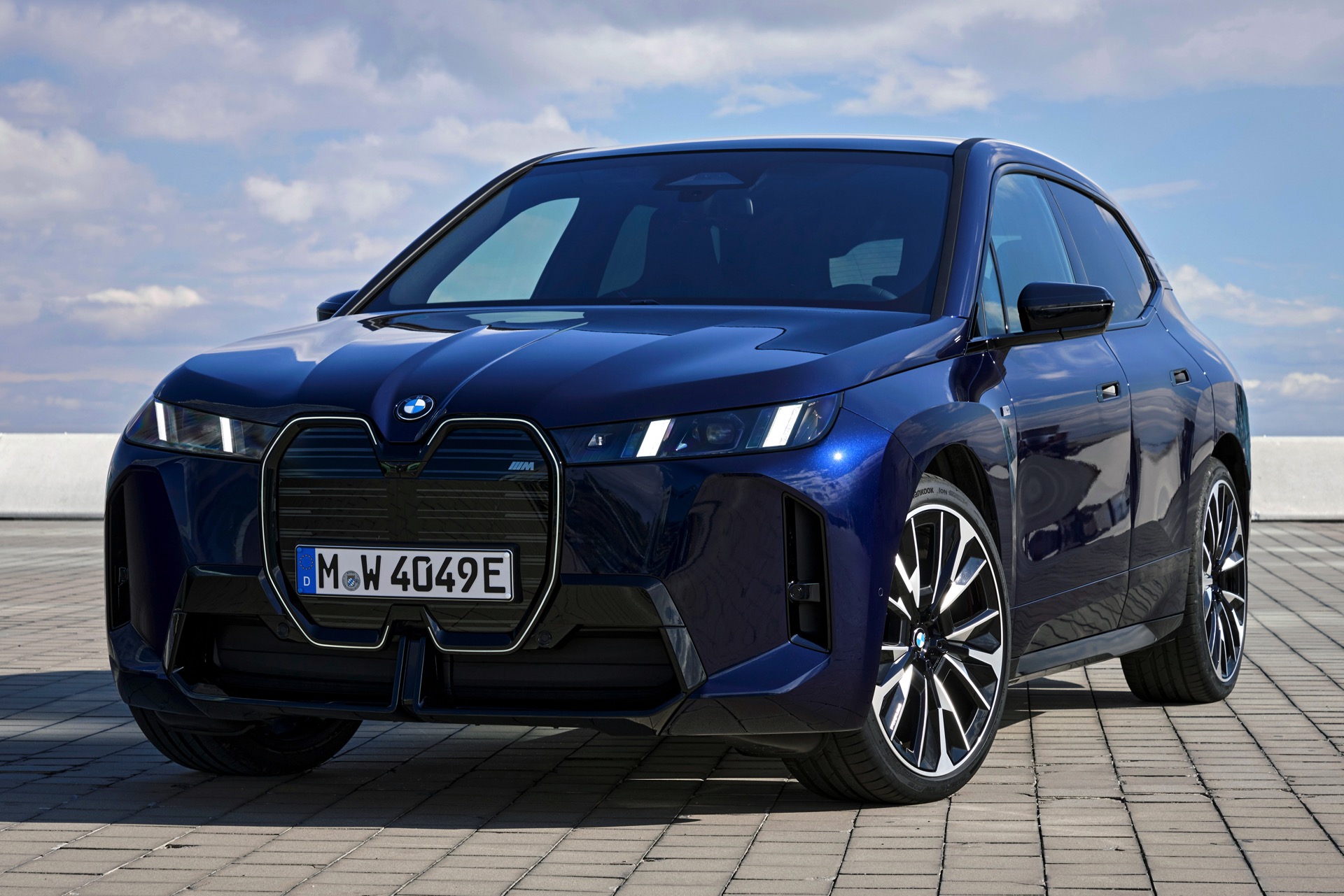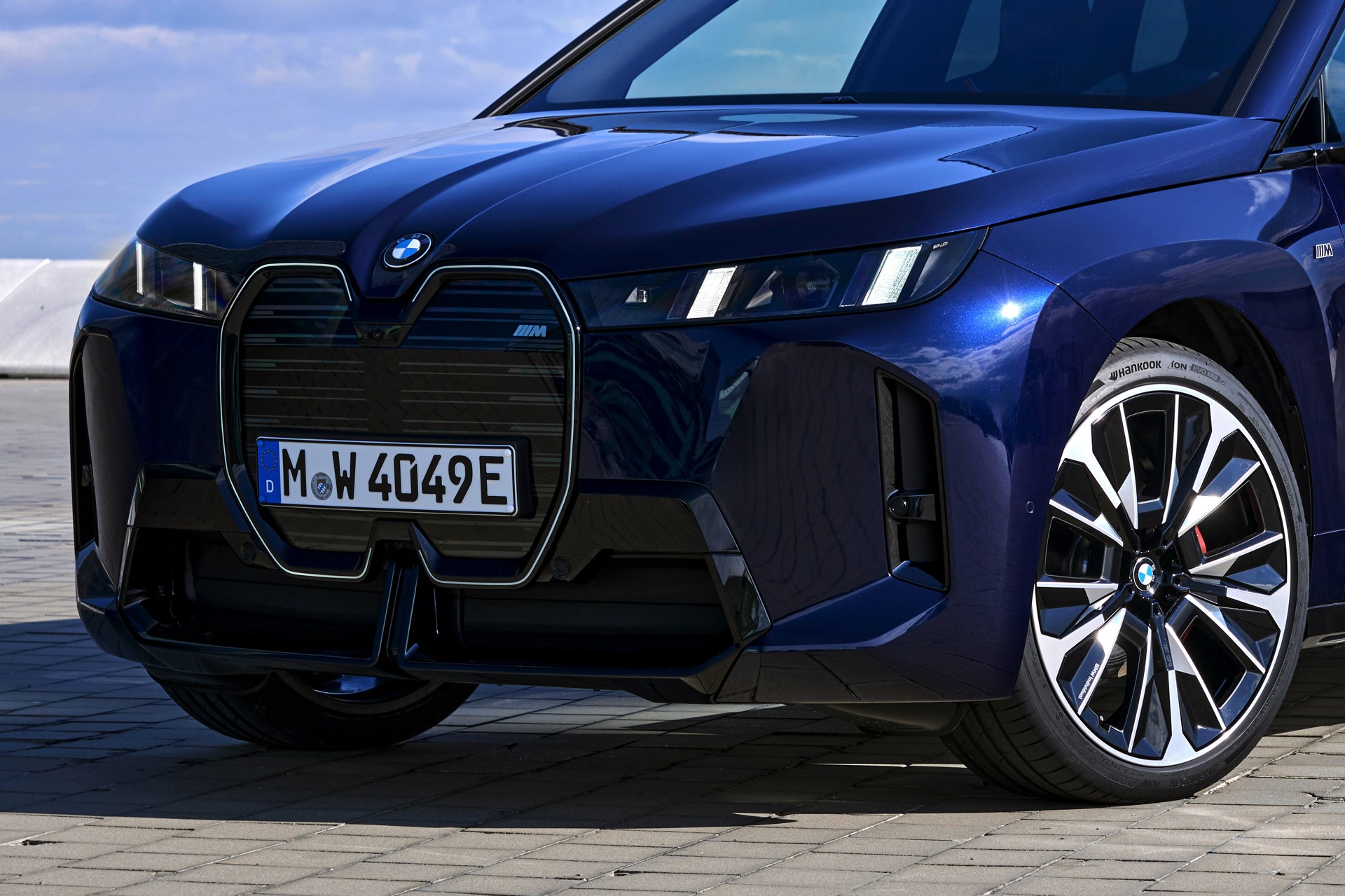 Ein aktuelles Foto-Set zeigt uns das Topmodell mit Lackierung in Tansanitblau Metallic und mit den 23 Zoll großen BMW Indidvidual Aerodynamikrädern 1028. Das dunkle Blau sorgt für einen eleganteren Auftritt als das düstere Frozen Deep Grey, in dem wir den iX M70 bisher zu sehen bekamen. An der Kraft des Elektro-SUV kommen dennoch keine Zweifel auf: Die M-Niere mit ihren horizontalen Streben betont die Breite der Front und das neue Tagfahrlicht-Design mit seinen schräg gestellten Elementen bringt eine ganz andere Wirkung als die horizontalen LEDs vor dem Facelift. Die in Form einer feinen Linie beleuchtete Einfassung der Iconic Glow-Nieren ist auf den neuen Fotos zwar ebenfalls gut zu sehen, kommt bei Dunkelheit und Nacht aber naturgemäß noch viel stärker zur Geltung.