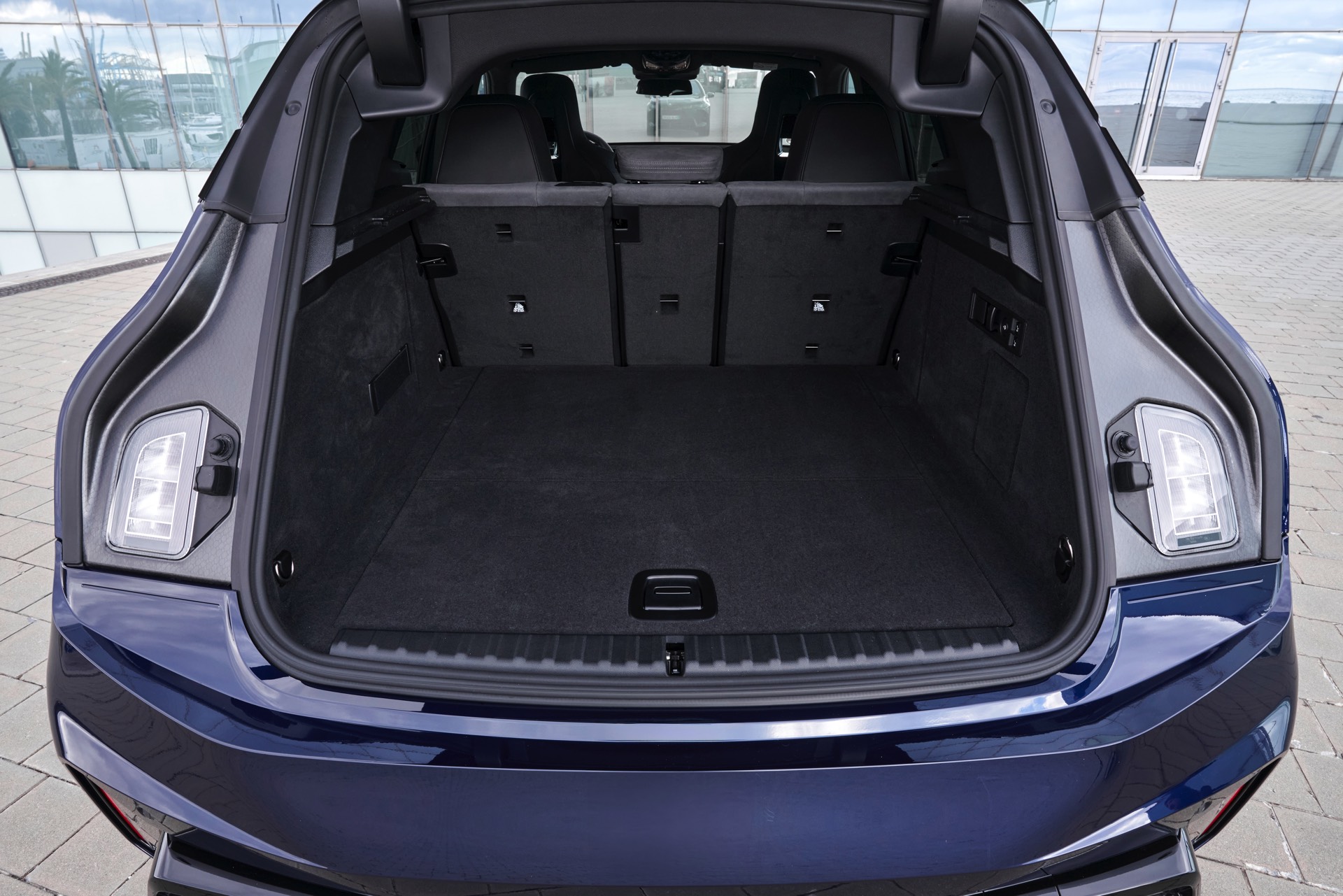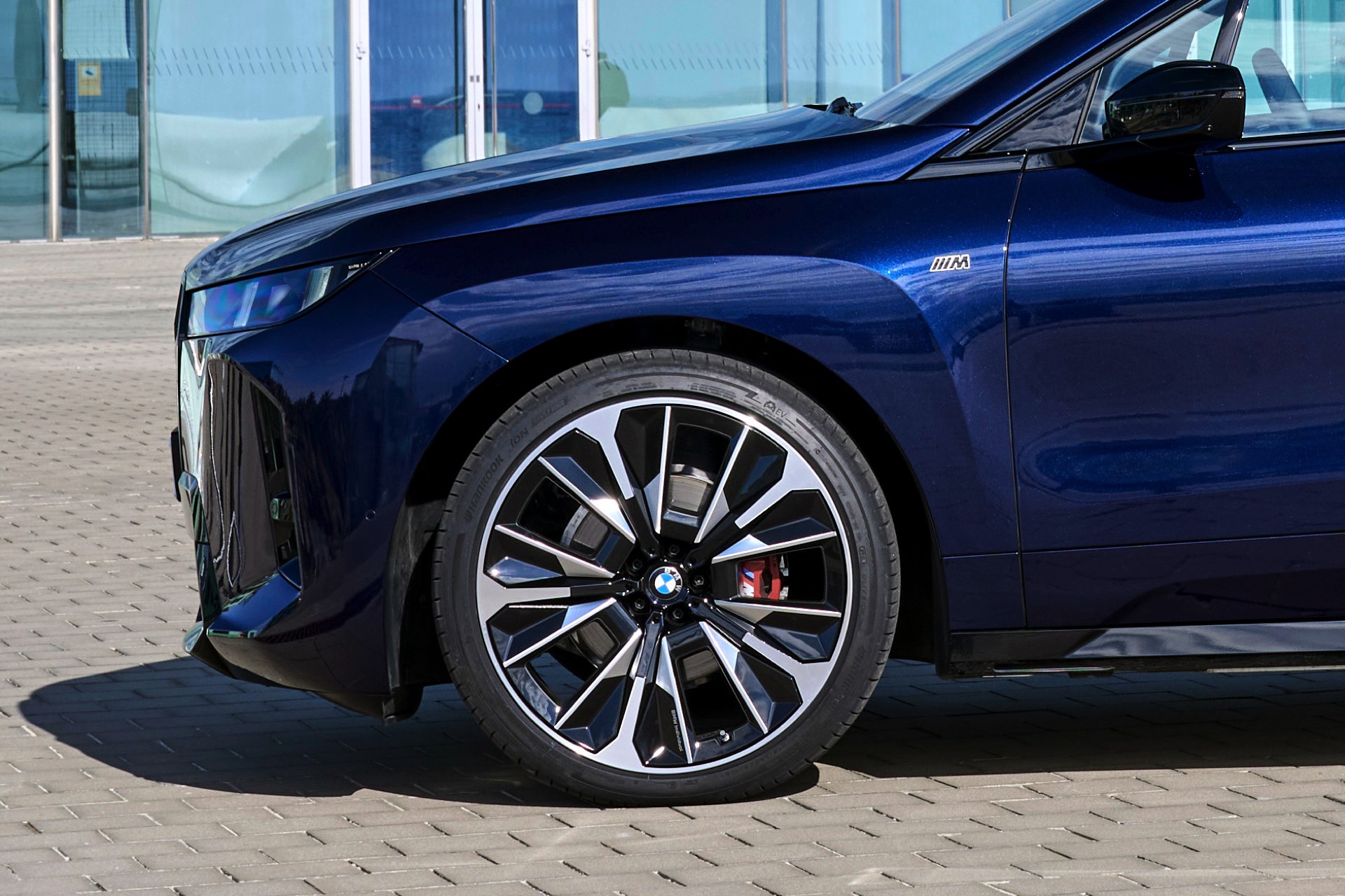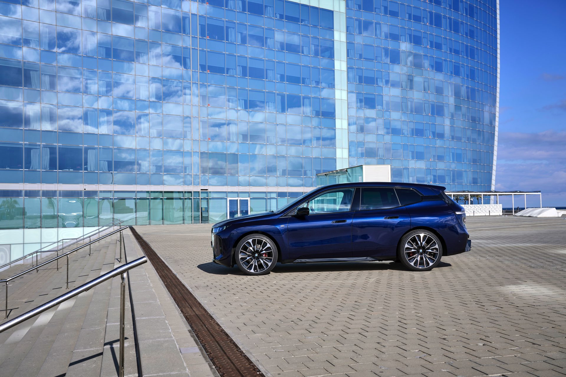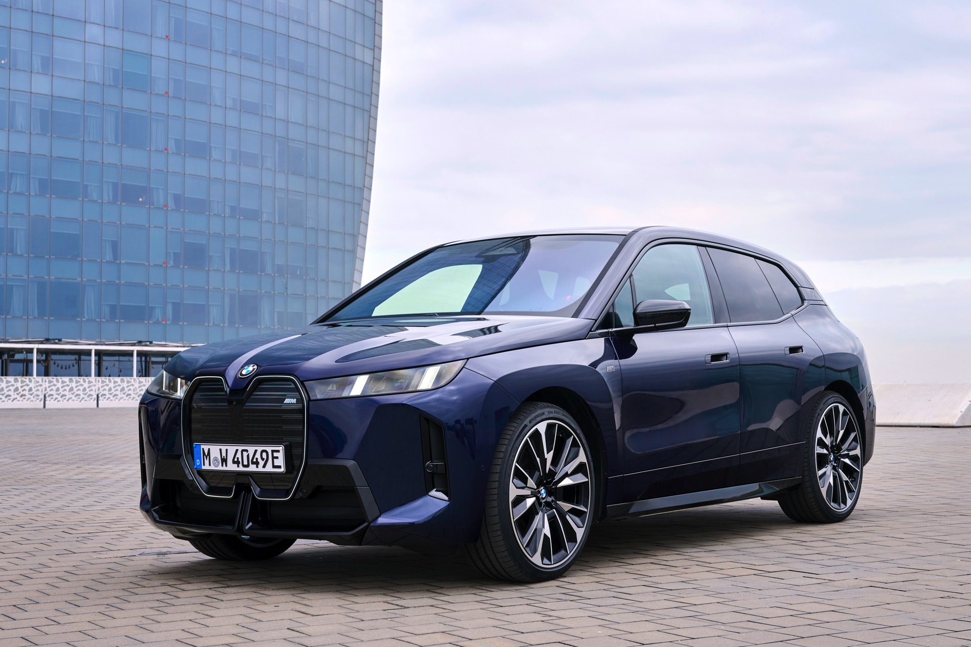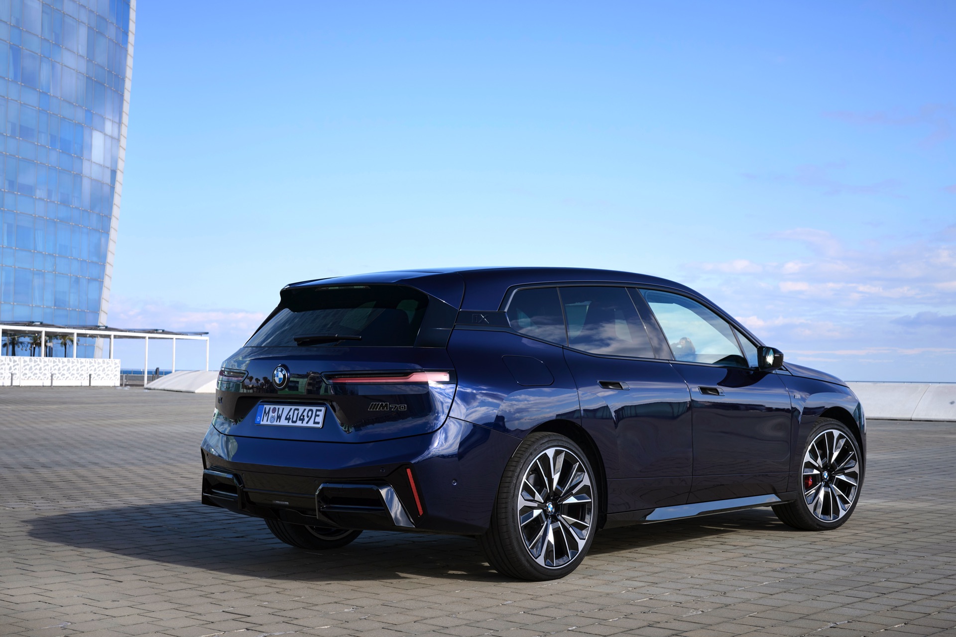 Ein aktuelles Foto-Set zeigt uns das Topmodell mit Lackierung in Tansanitblau Metallic und mit den 23 Zoll großen BMW Indidvidual Aerodynamikrädern 1028. Das dunkle Blau sorgt für einen eleganteren Auftritt als das düstere Frozen Deep Grey, in dem wir den iX M70 bisher zu sehen bekamen. An der Kraft des Elektro-SUV kommen dennoch keine Zweifel auf: Die M-Niere mit ihren horizontalen Streben betont die Breite der Front und das neue Tagfahrlicht-Design mit seinen schräg gestellten Elementen bringt eine ganz andere Wirkung als die horizontalen LEDs vor dem Facelift. Die in Form einer feinen Linie beleuchtete Einfassung der Iconic Glow-Nieren ist auf den neuen Fotos zwar ebenfalls gut zu sehen, kommt bei Dunkelheit und Nacht aber naturgemäß noch viel stärker zur Geltung.